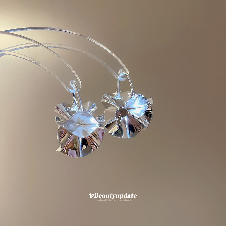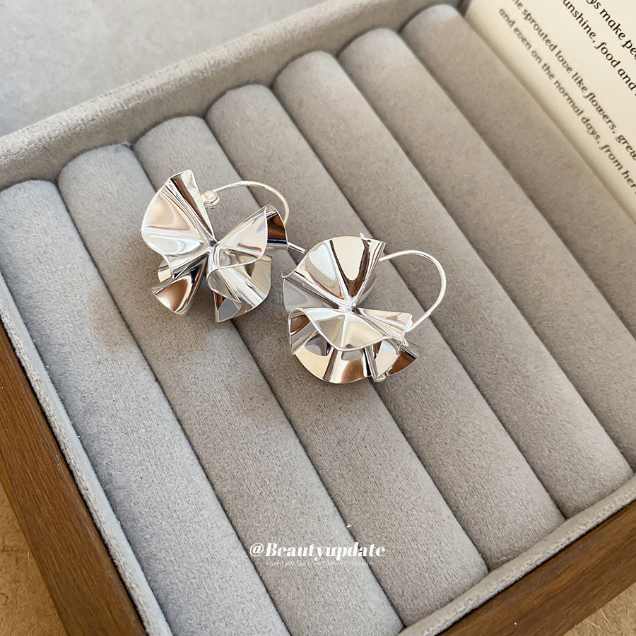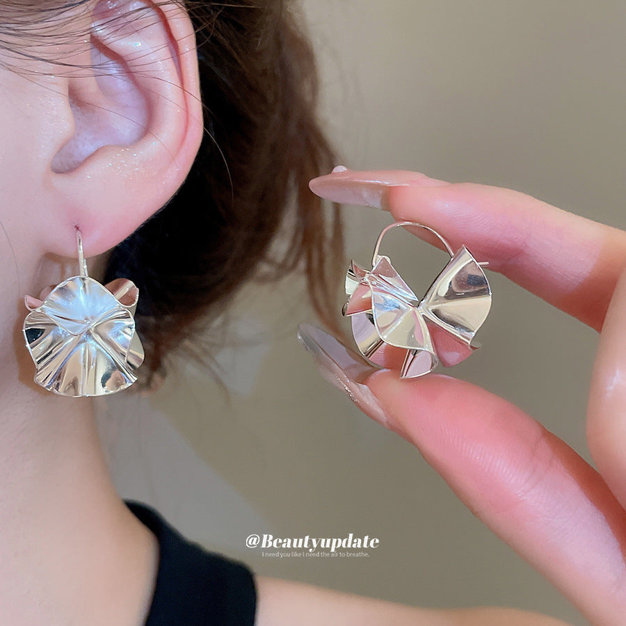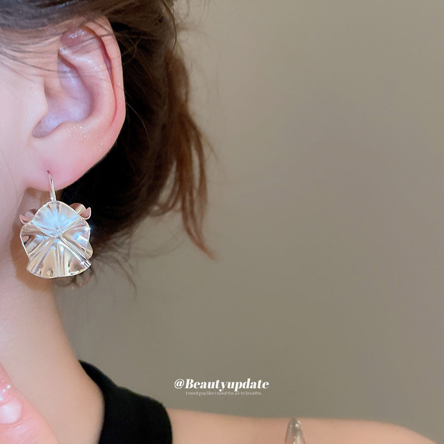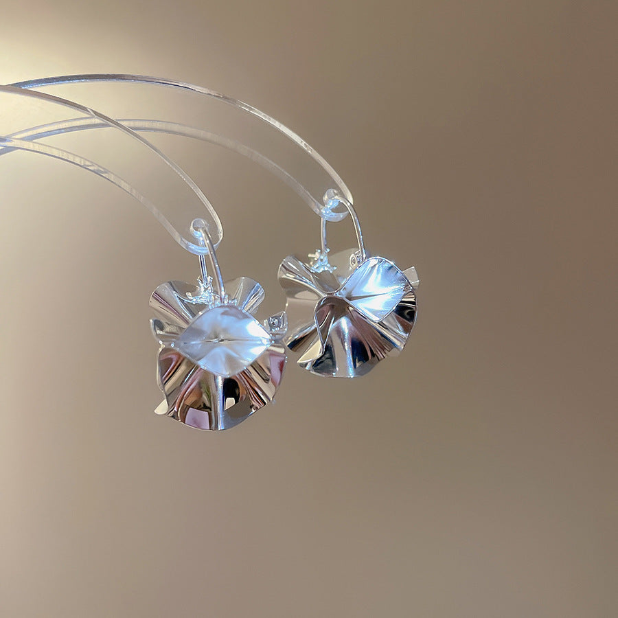 A廠【HE27599】褶皺亮面花朵籃子耳環歐美跨境冷淡風氣質耳環時尚耳環設計感小眾 25.07-2