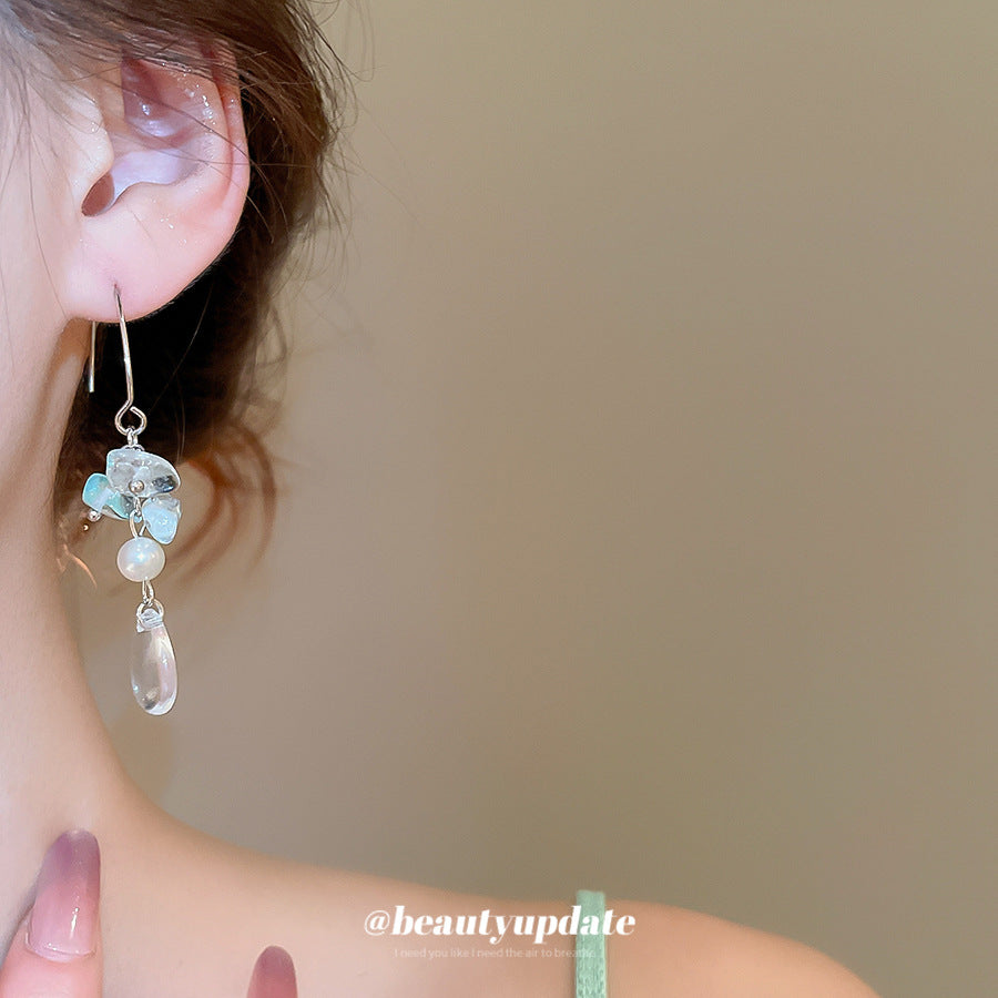 A廠【HE27629】不規則樹脂珍珠水滴C形耳鉤小清新小眾設計感耳環輕奢高級感耳飾 25.07-2