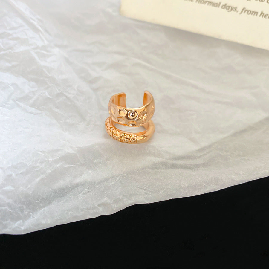 A廠【HE27659】歐美金屬感褶皺雙層耳夾時尚簡約百搭無耳洞耳骨夾耳飾設計感小眾 25.07-2