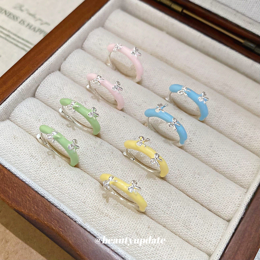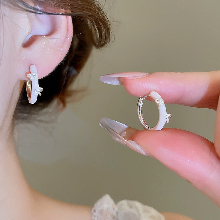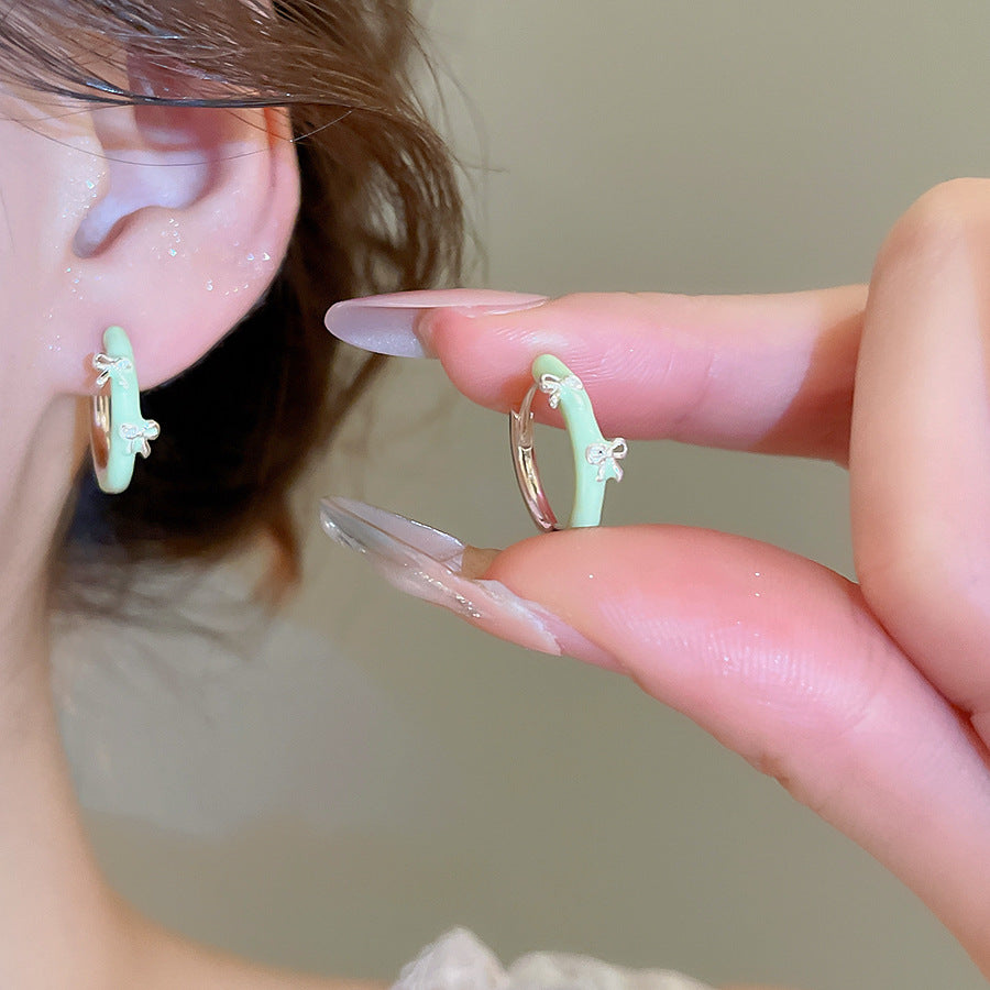 A廠【HE27673】蝴蝶結幾何圓形滴油耳環小清新甜美氣質耳環時尚小眾設計感耳飾女 25.07-2