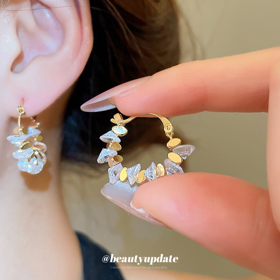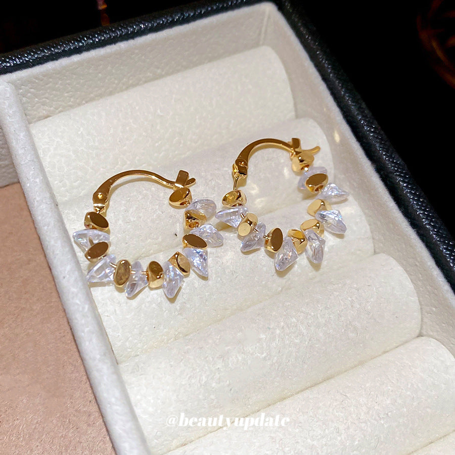 A廠【HE27752】18k真金電鍍水晶幾何圓形耳環歐美跨國百搭耳環耳環設計感小眾女 25.07-3