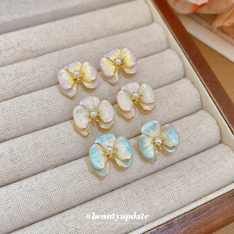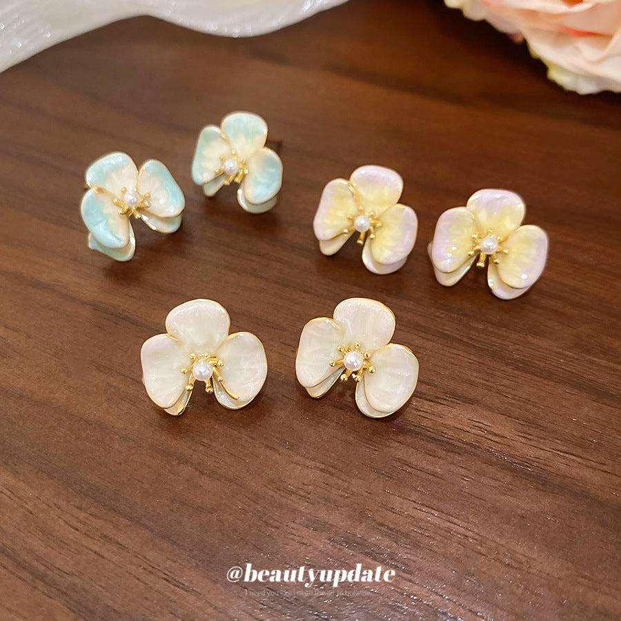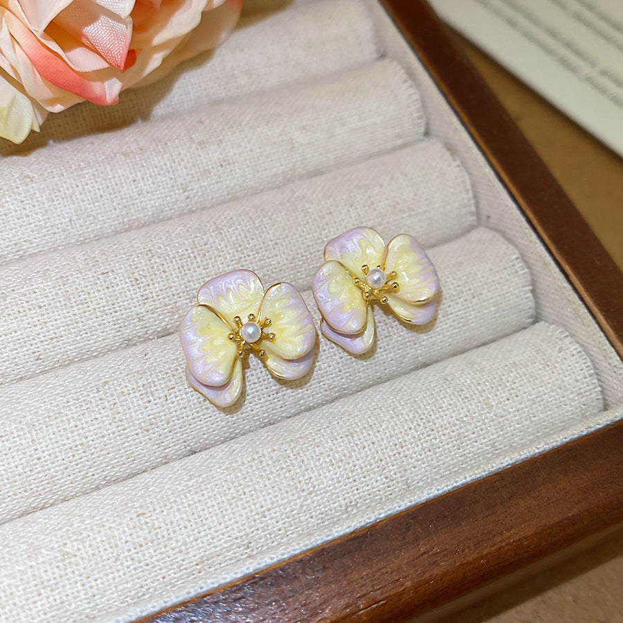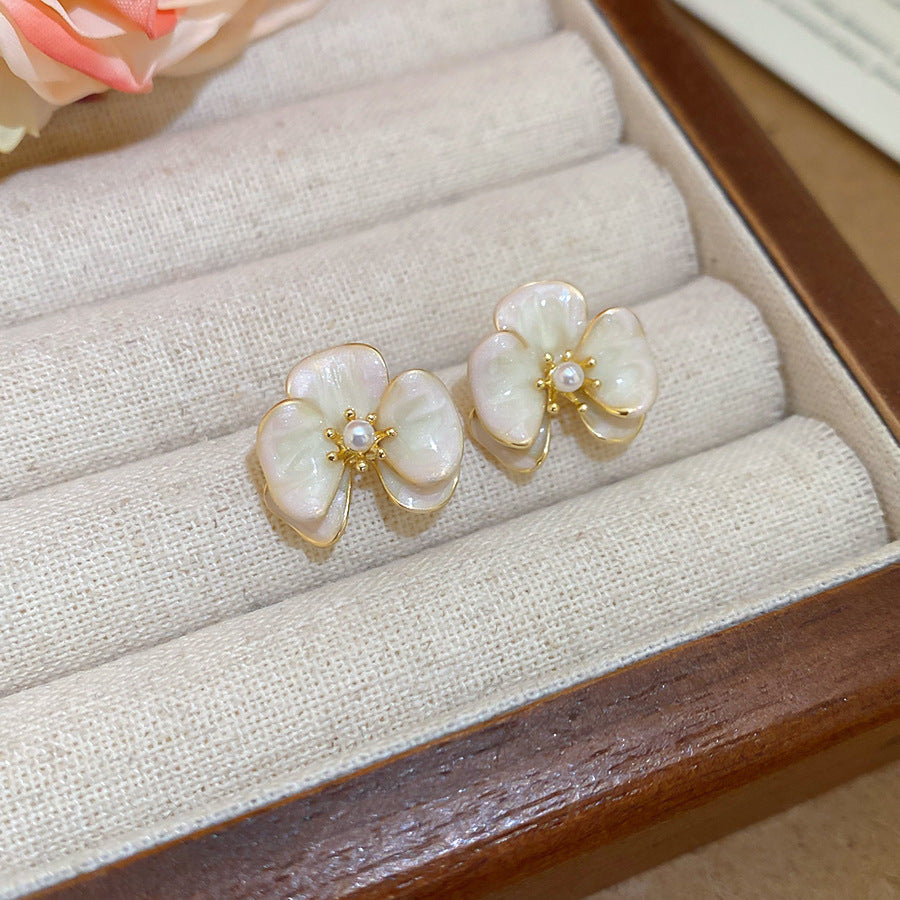 A廠【HE27788】18k真金電鍍925銀針滴油珍珠花朵耳環清新甜美耳環小眾設計感耳飾女 25.07-3