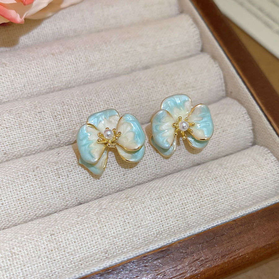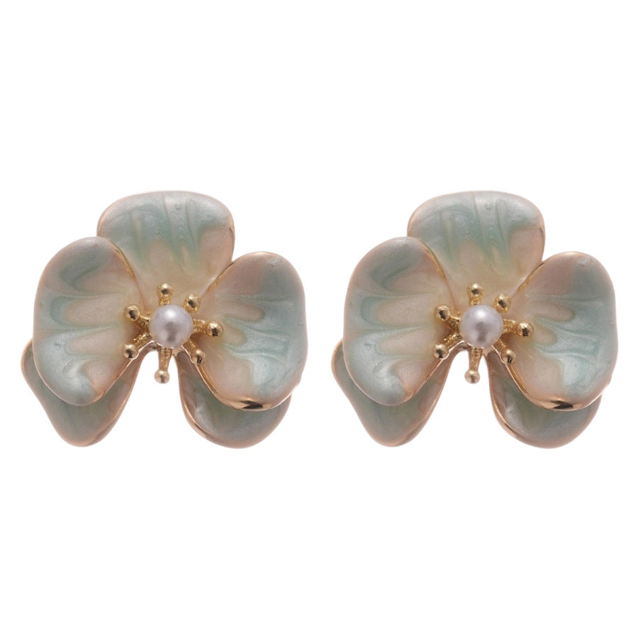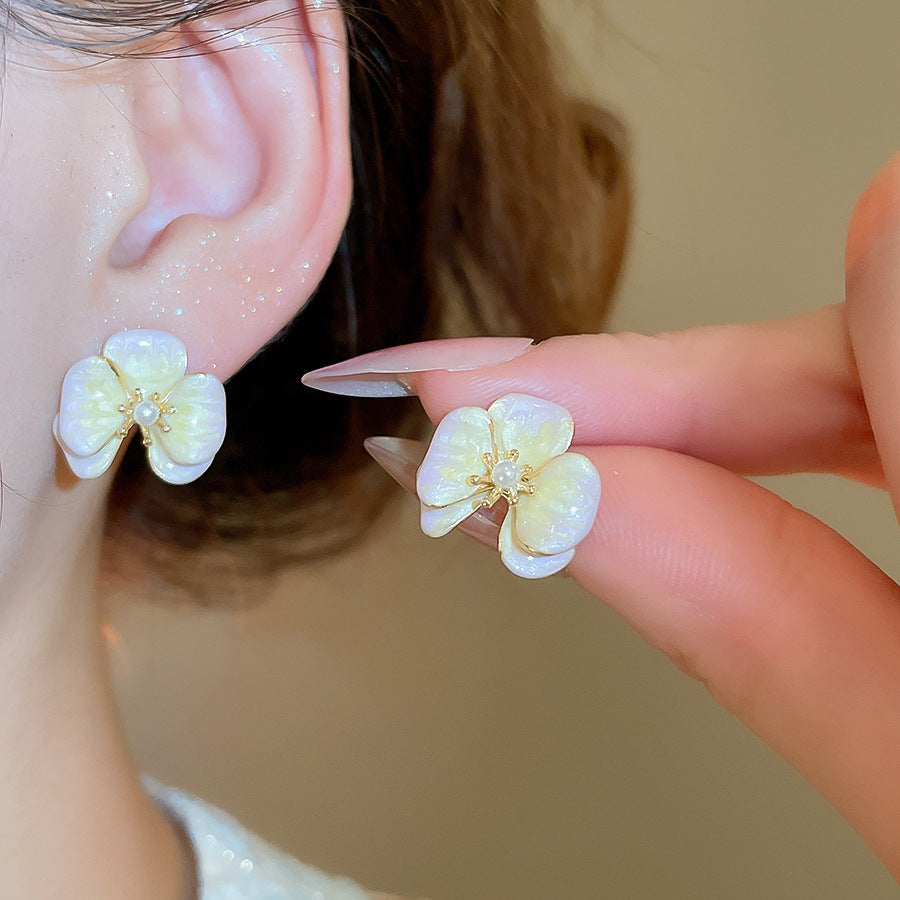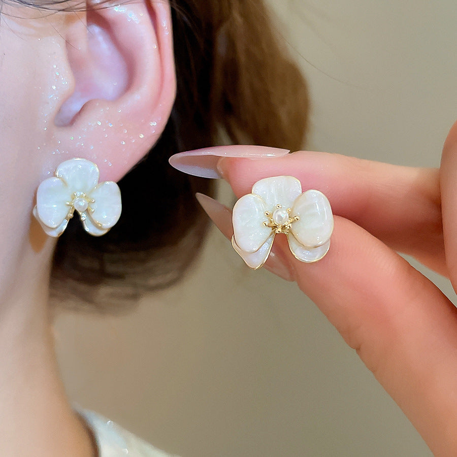 A廠【HE27788】18k真金電鍍925銀針滴油珍珠花朵耳環清新甜美耳環小眾設計感耳飾女 25.07-3