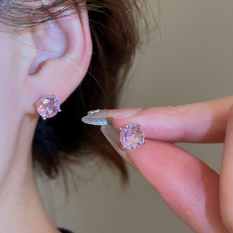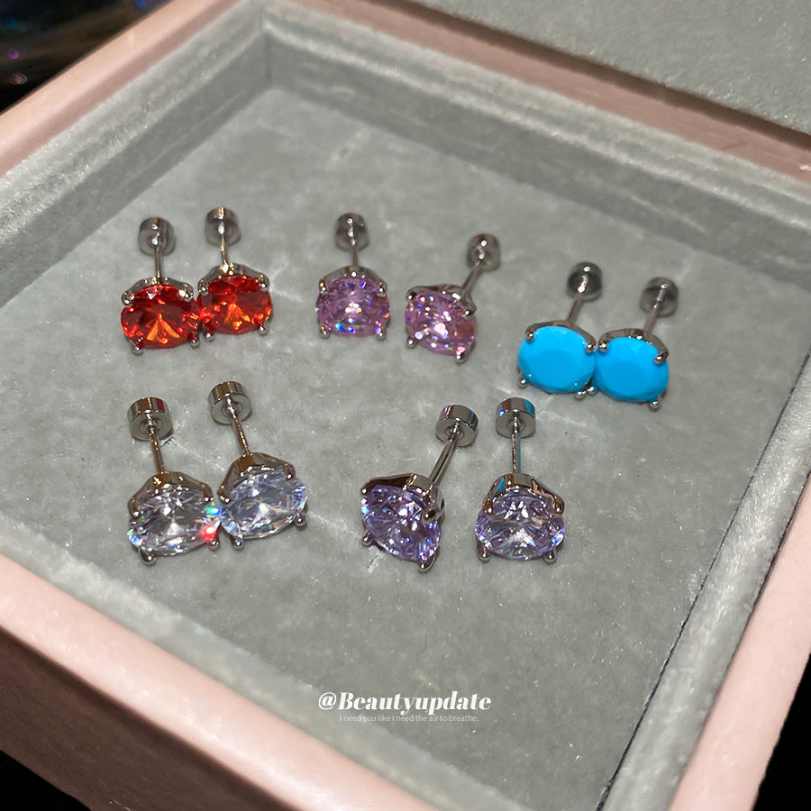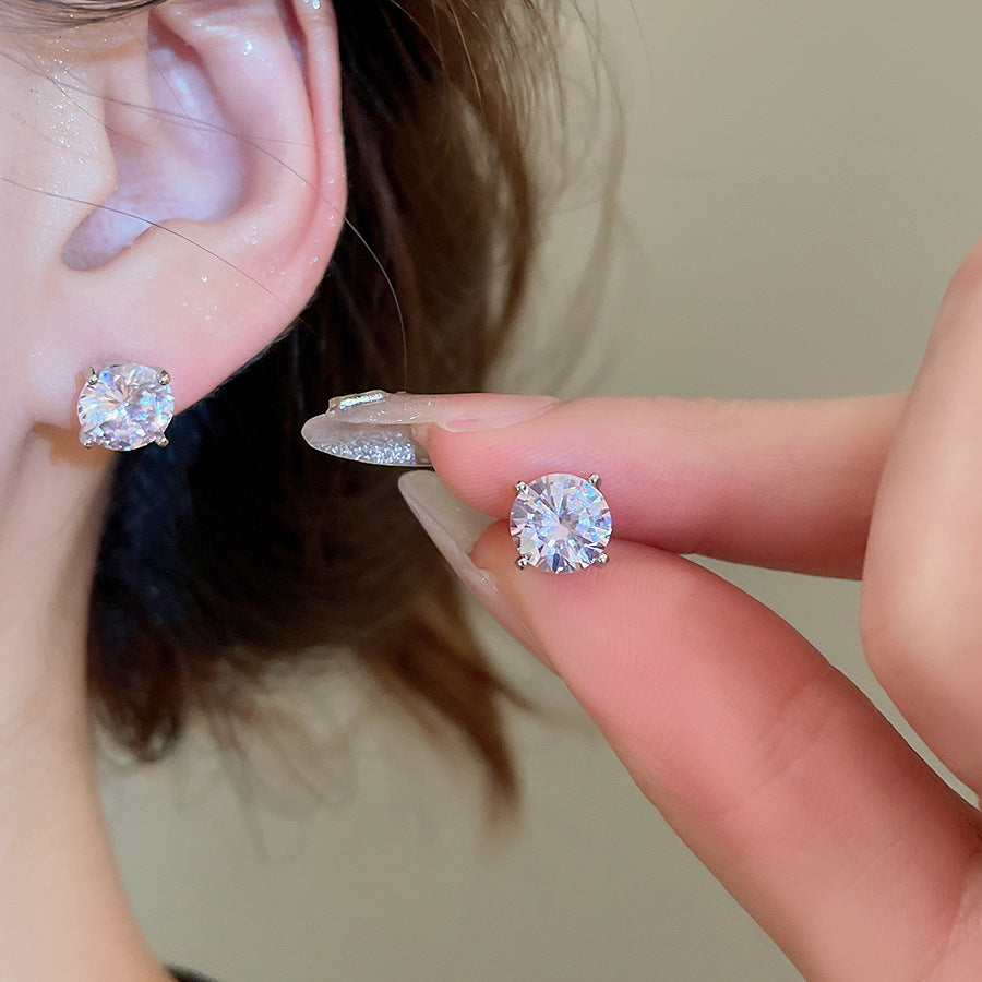 A廠【HE27879】超閃鋯石幾何圓形螺紋耳環時尚簡約百搭氣質耳環輕奢高級感耳飾女 25.07-4