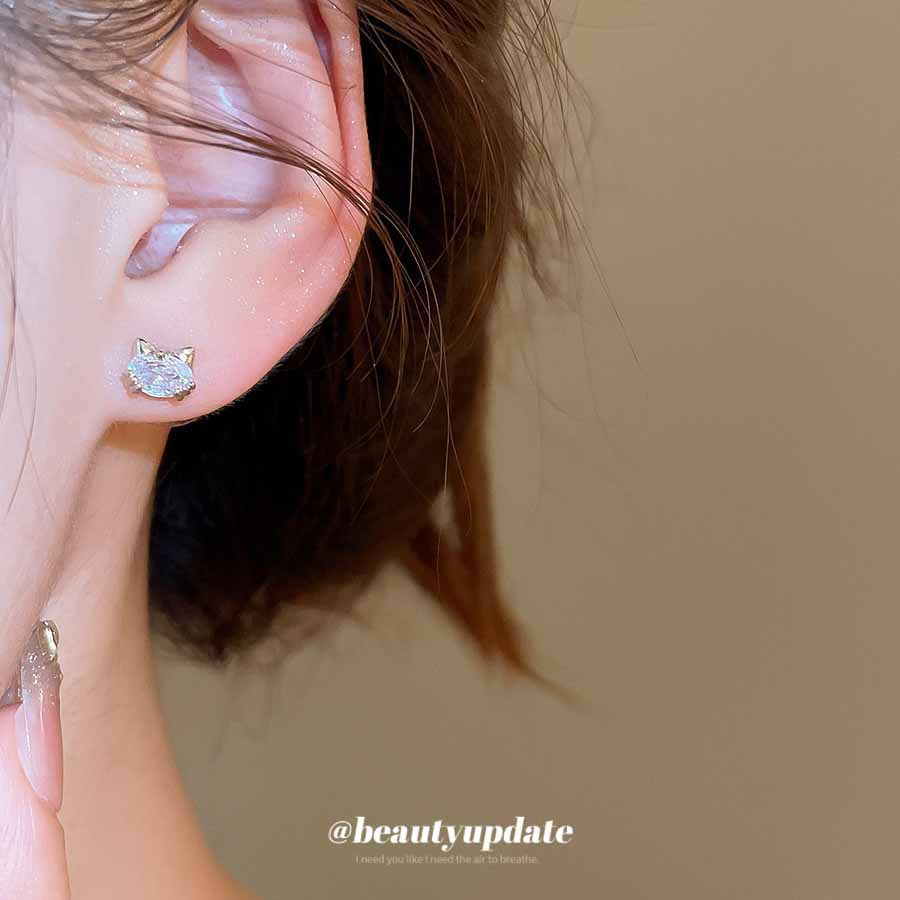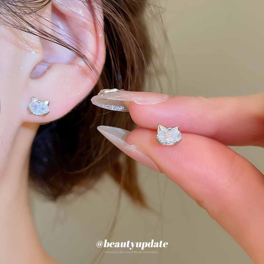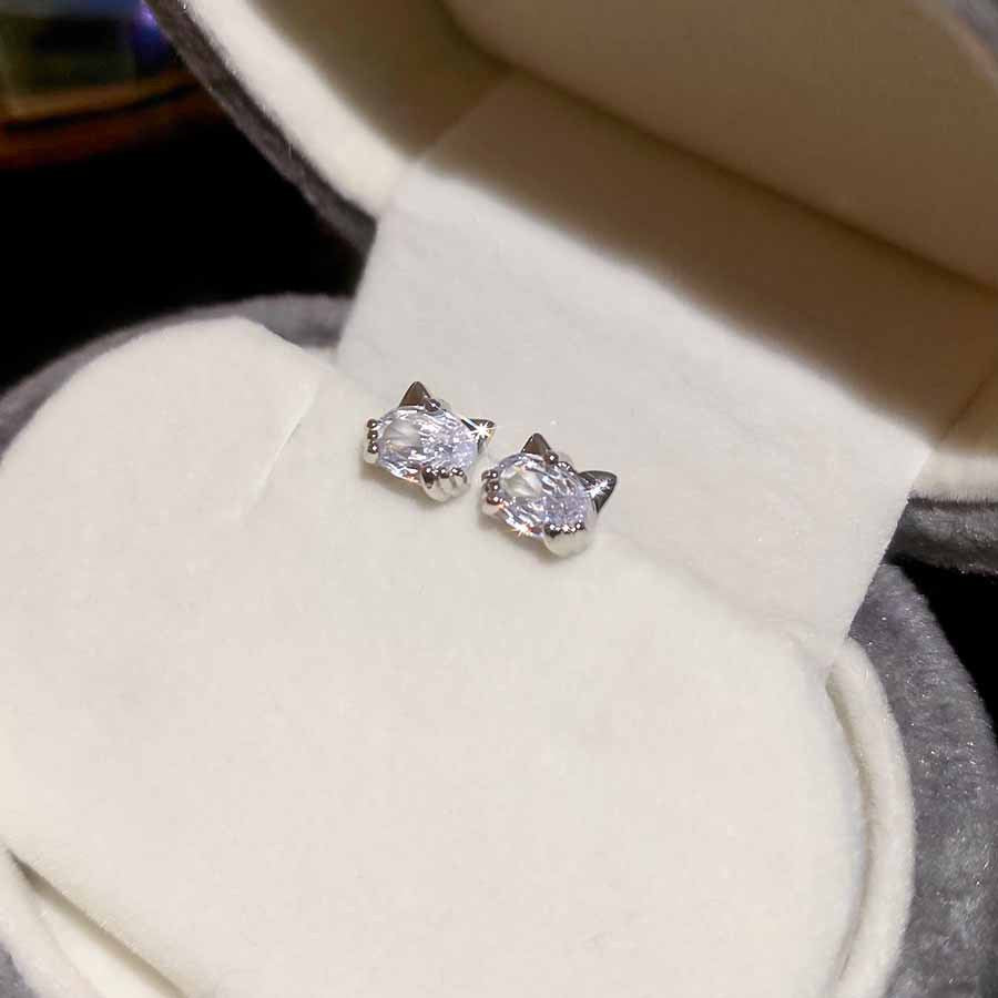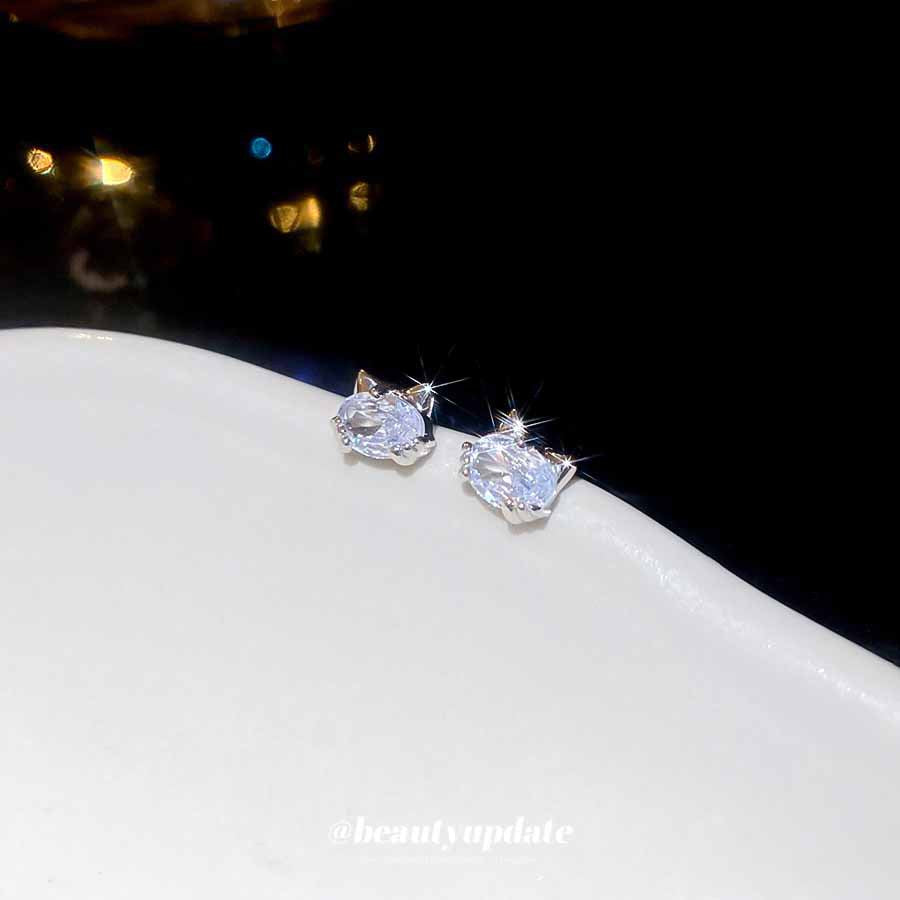 A廠【HE27903】925銀針鋯石橢圓形小貓耳環可愛小巧百搭氣質耳環精緻輕奢高級感耳飾 25.07-4