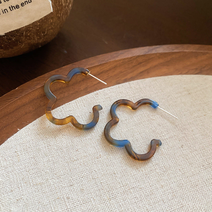A廠【HE28051】925銀針樹脂暈染花朵耳環復古民族風獨特氣質耳環個性耳環設計感小眾 25.08-1