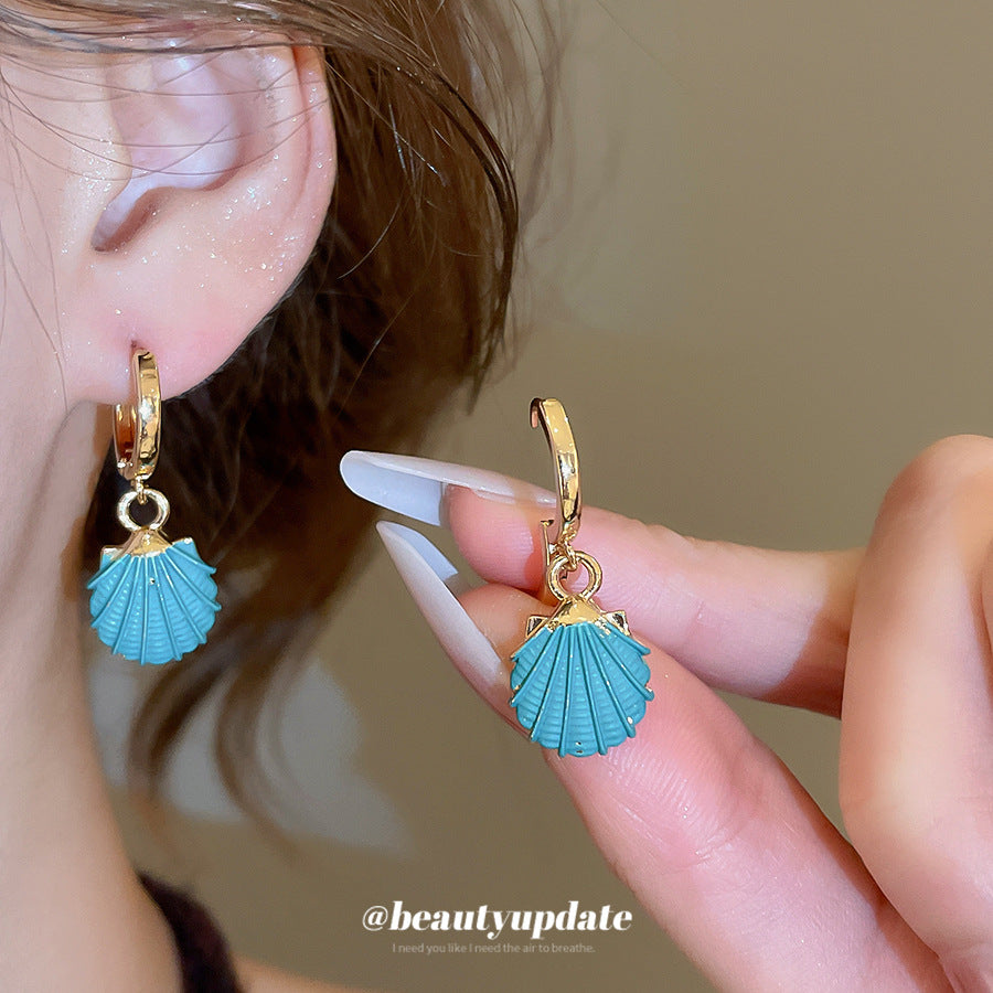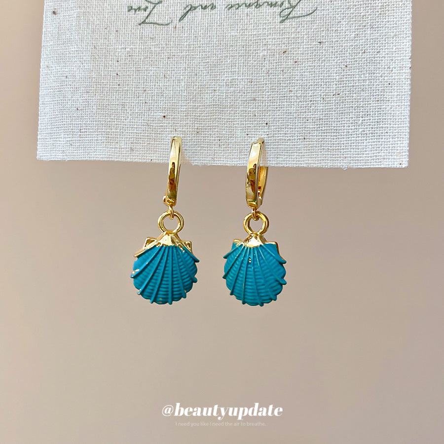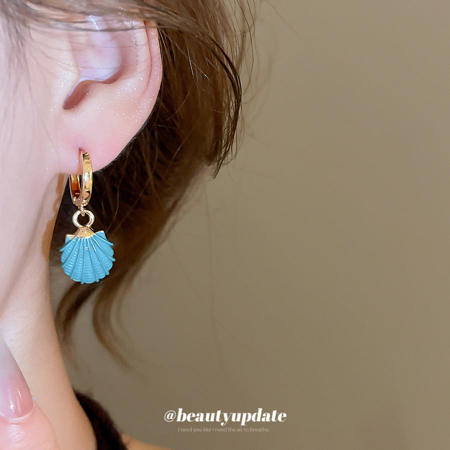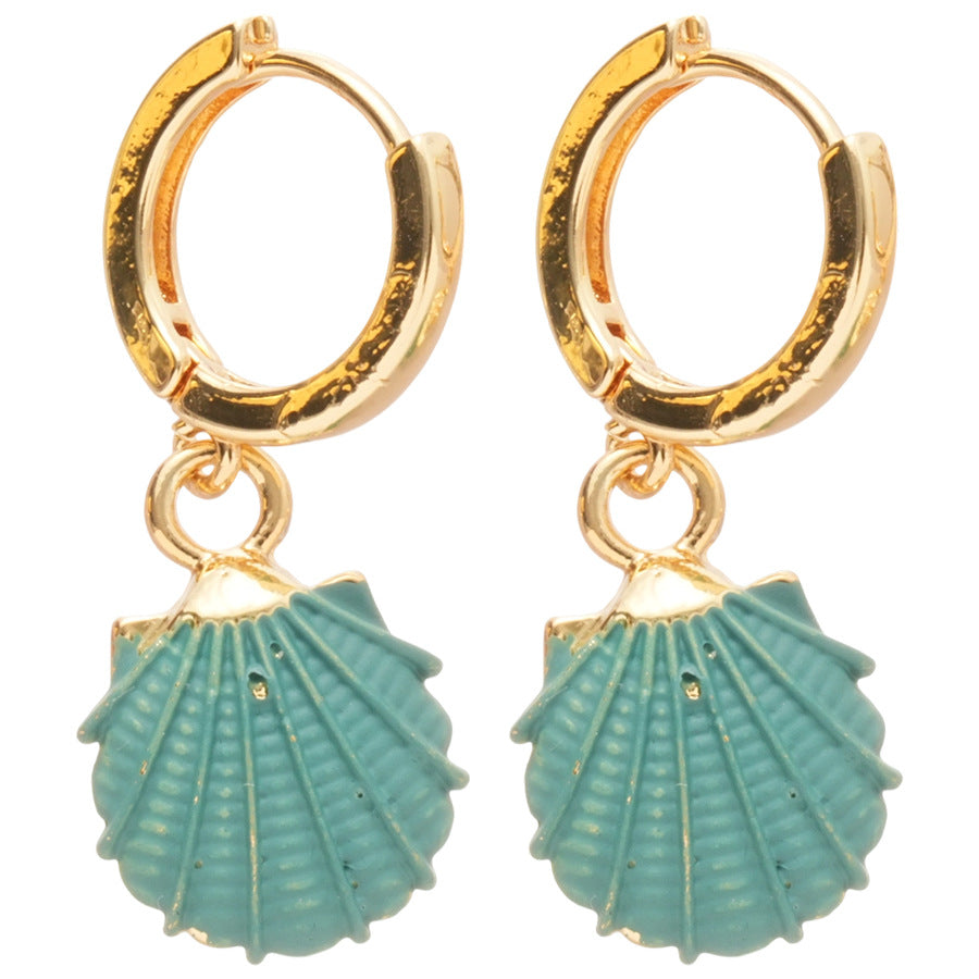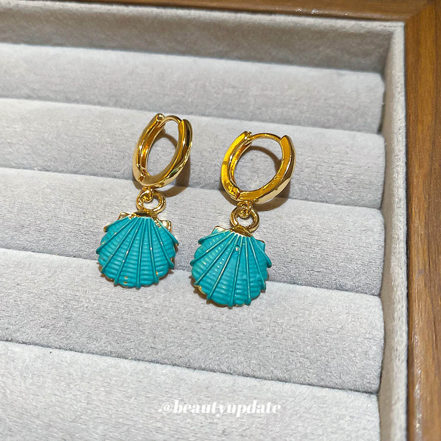 A廠【HE28181】噴漆貝殼紋路吊墜耳扣海邊度假風耳環時尚個性小眾設計感耳飾 25.08-3