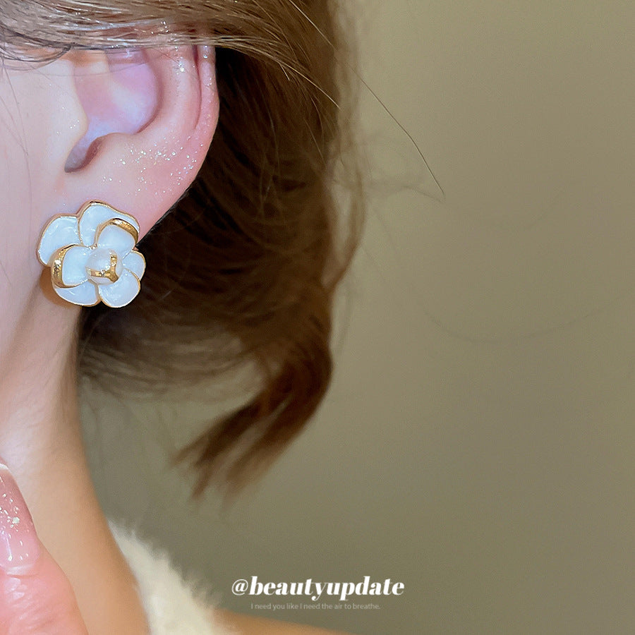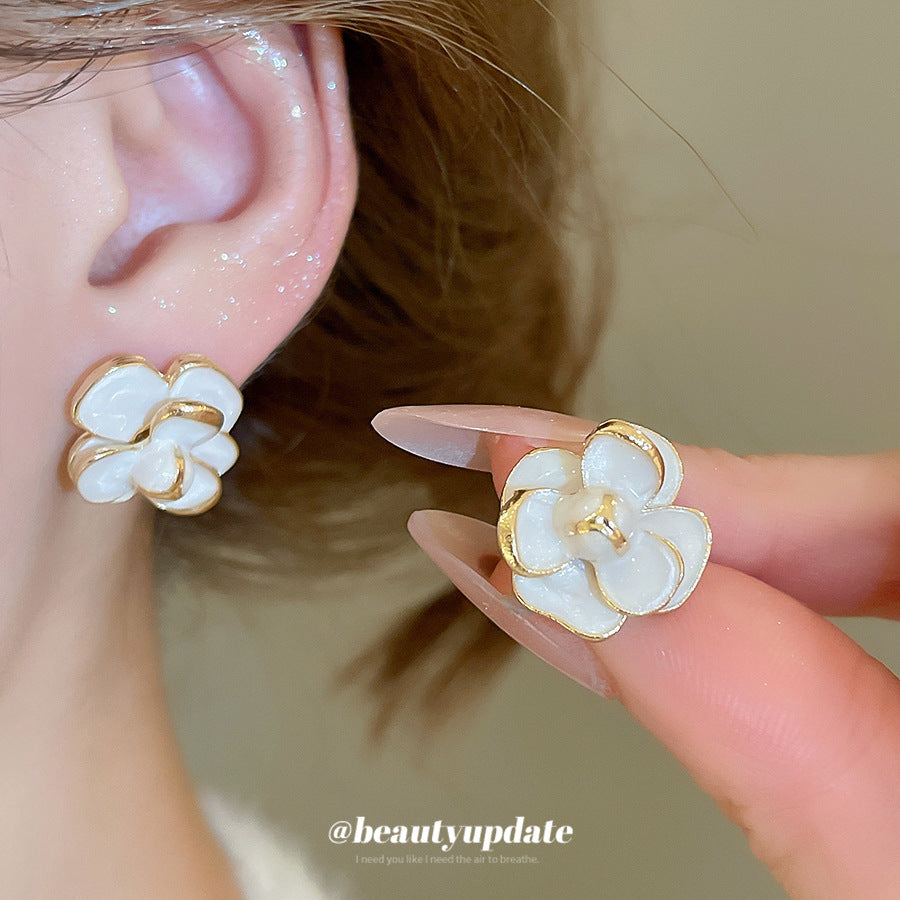 A廠【HE28228】925銀針滴油花朵耳環法式宮廷風氣質耳環時尚個性小眾設計感耳環 25.08-3
