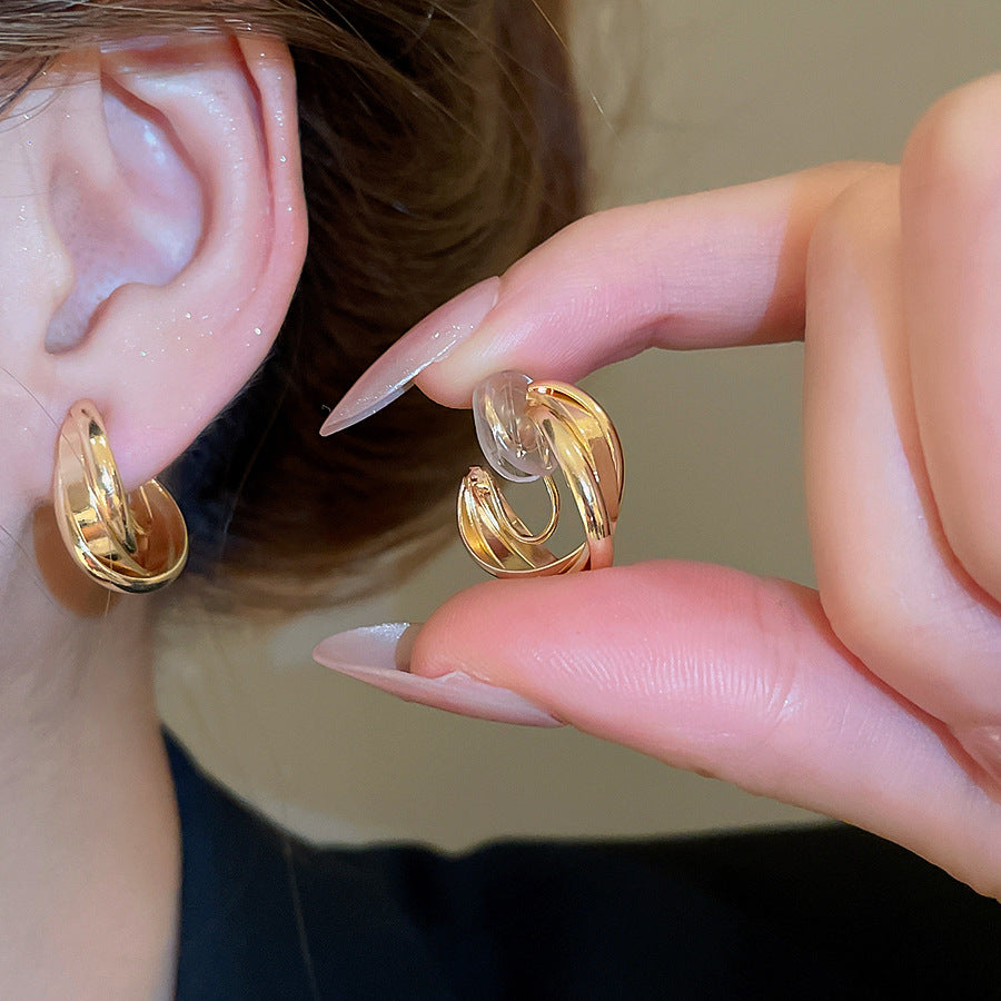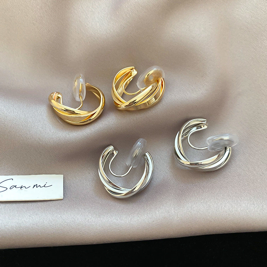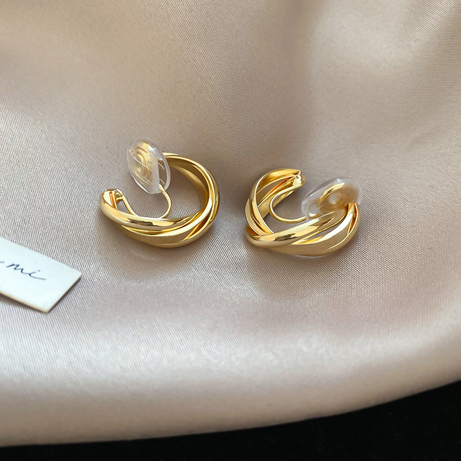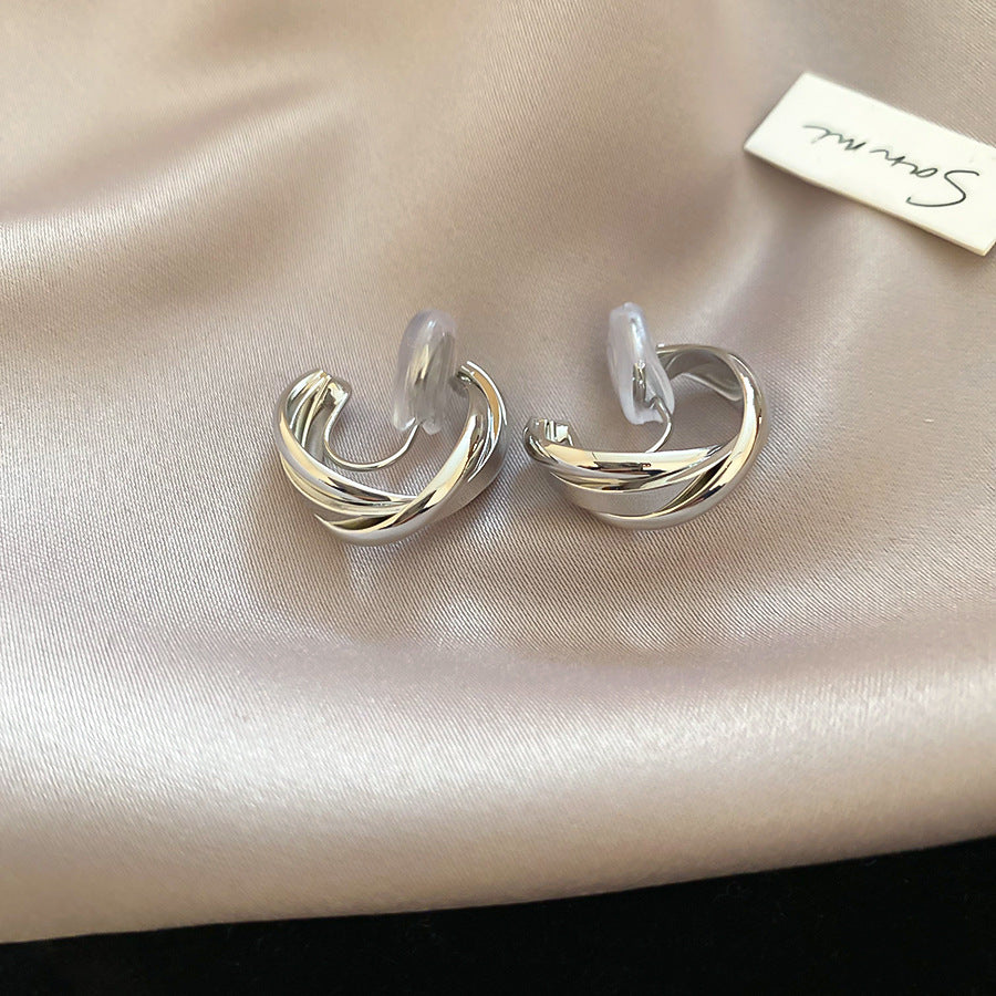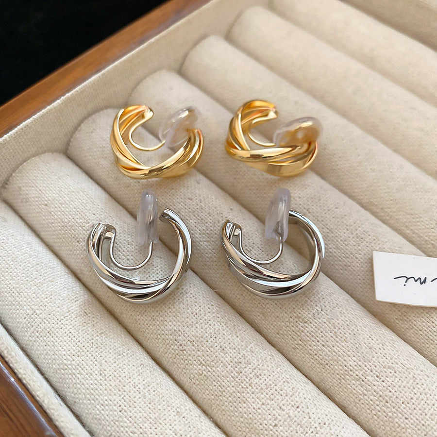 A廠【HE28291】交叉蚊香盤金屬無耳洞耳夾通勤百搭簡約耳環輕奢高級感小眾耳飾女 25.08-5