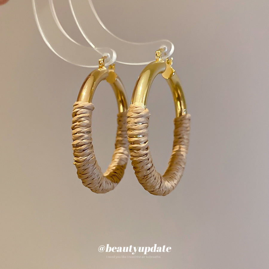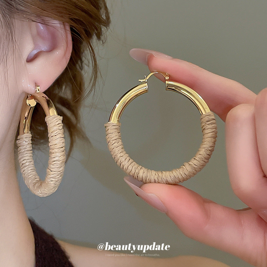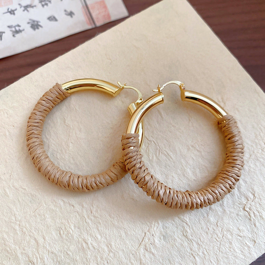 A廠【HE28343】拉菲草編織幾何圓形吊墜耳環復古民族風耳環時尚小眾設計感耳環女 25.09-1