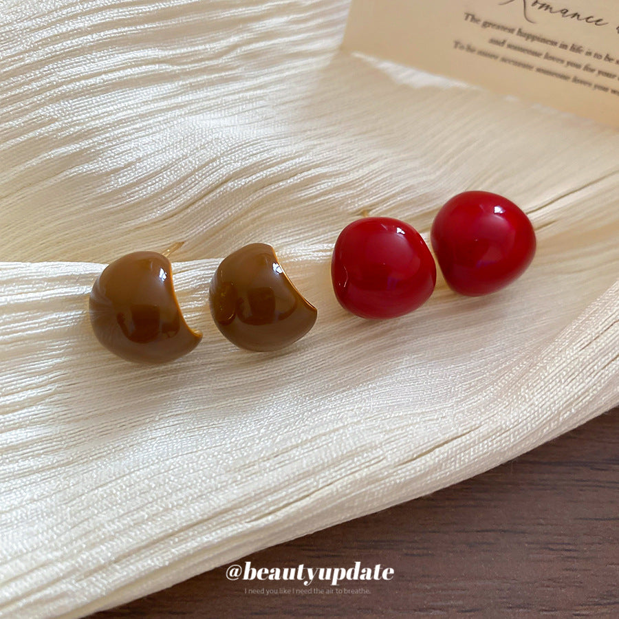A廠【HE28371】925銀針滴油幾何圓豆豆耳環小清新甜美氣質耳環秋冬新款設計感耳飾 25.09-1