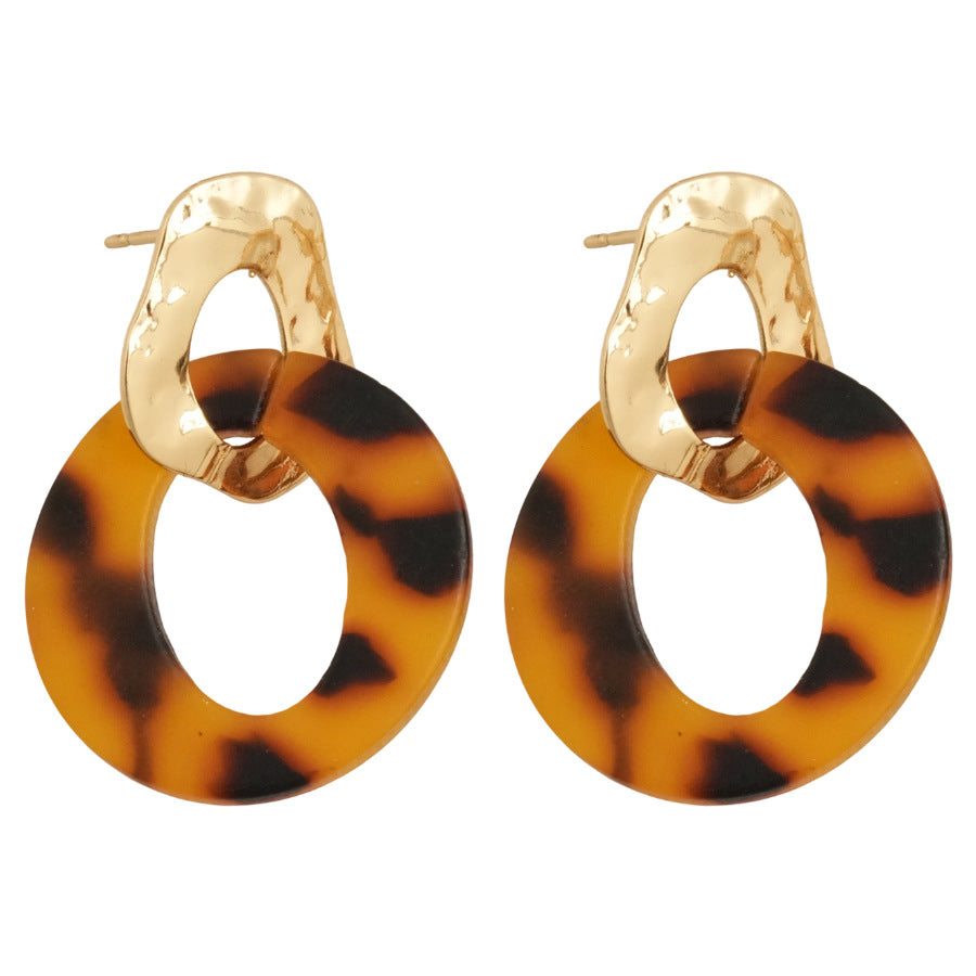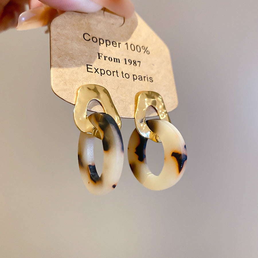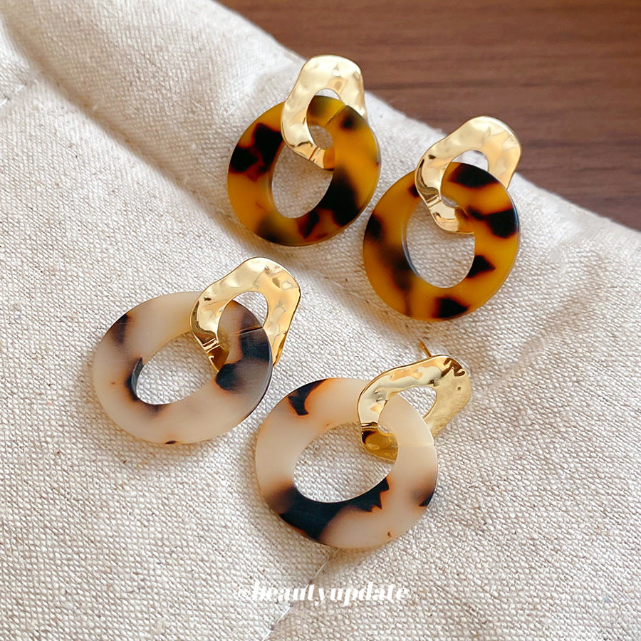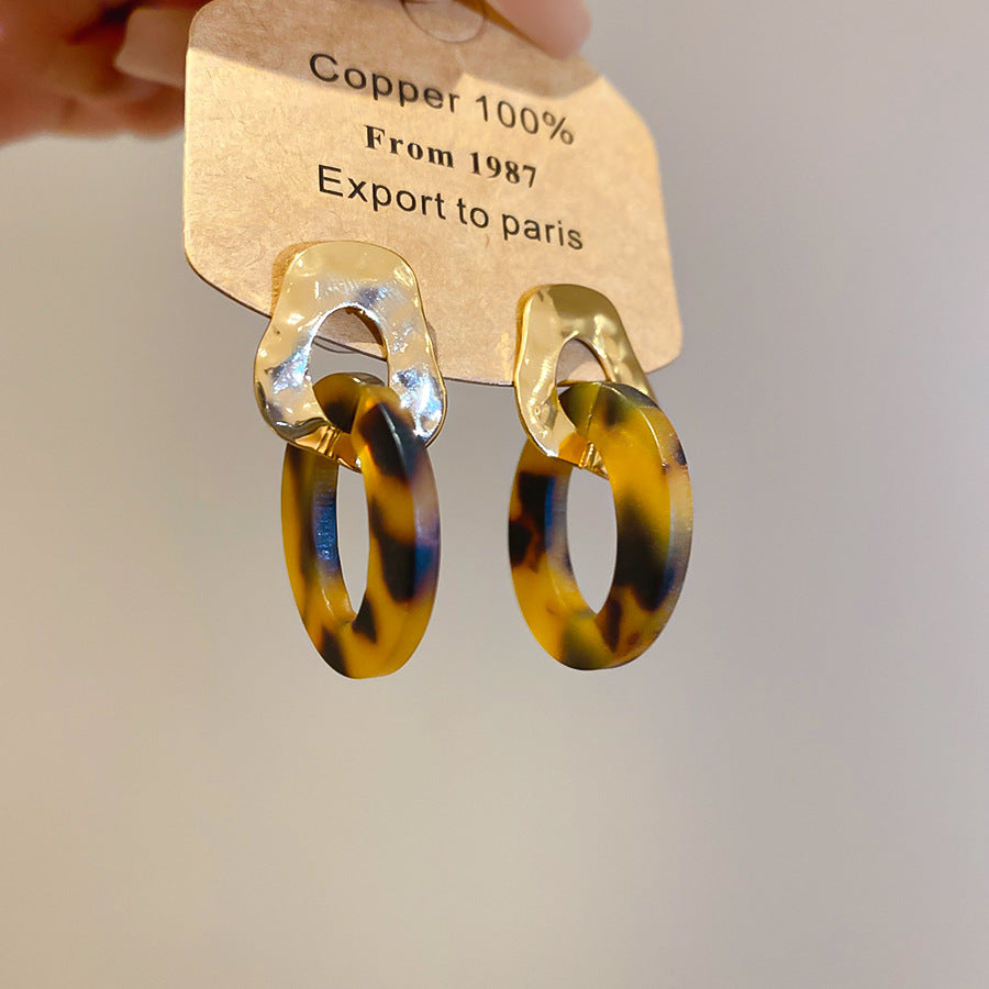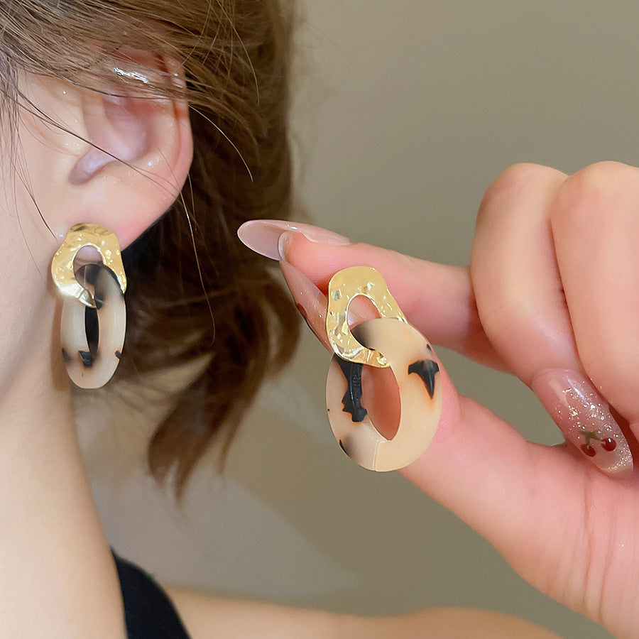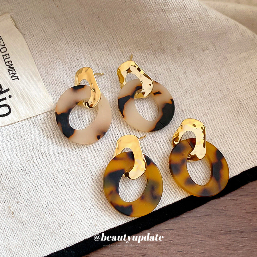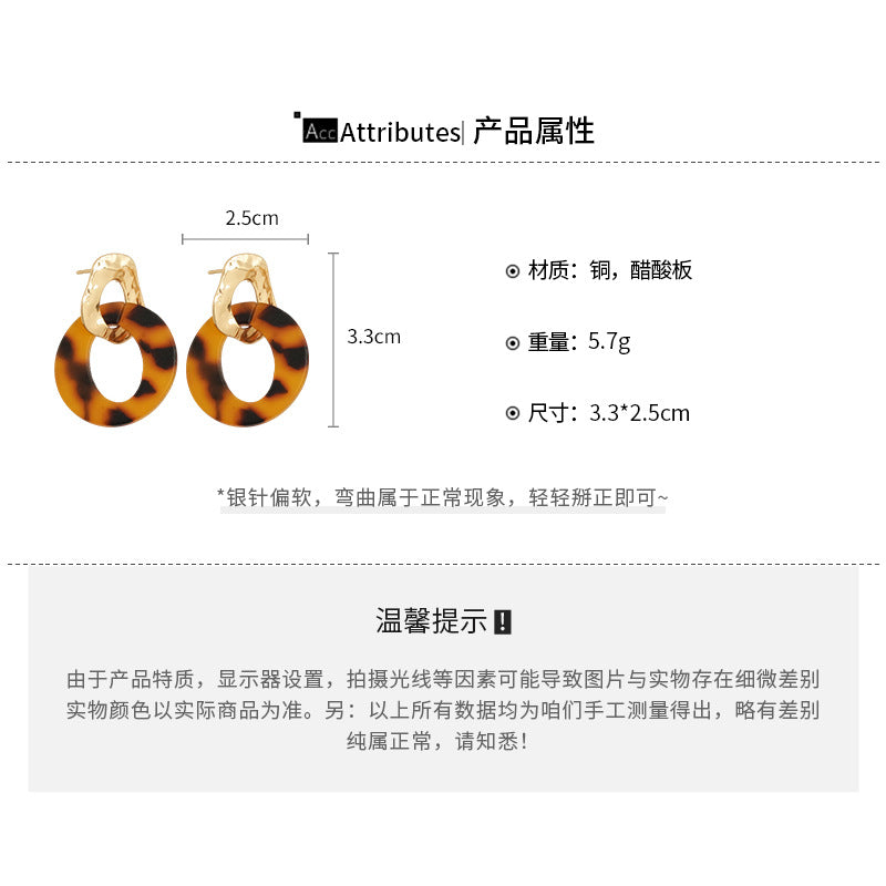 A廠【HE28385】925銀針醋酸板豹紋幾何圓形吊墜耳環歐美百搭氣質耳環小眾設計感耳飾 25.09-1