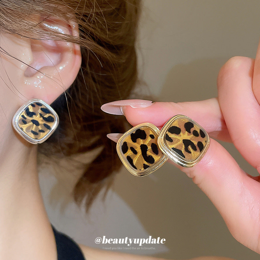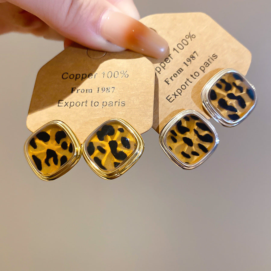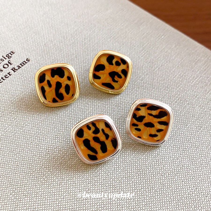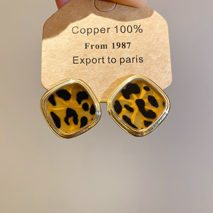 A廠【HE28387】925銀針復古壓克力方形豹紋耳環時尚簡約秋冬新款耳環小眾設計感耳飾 25.09-1