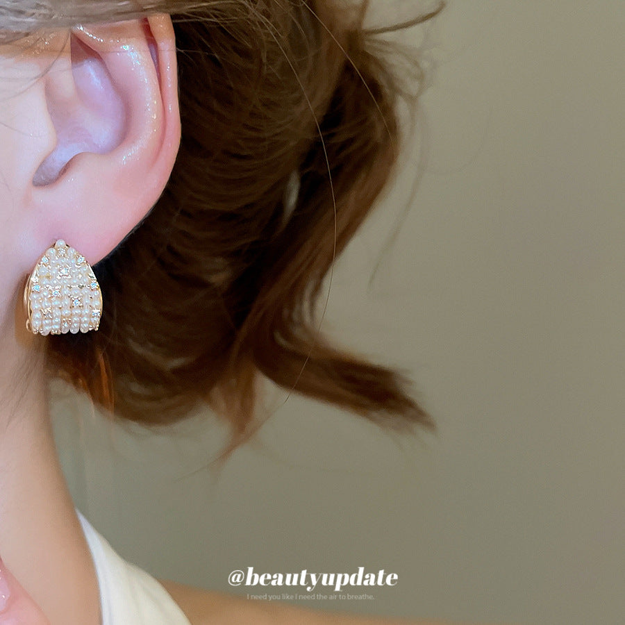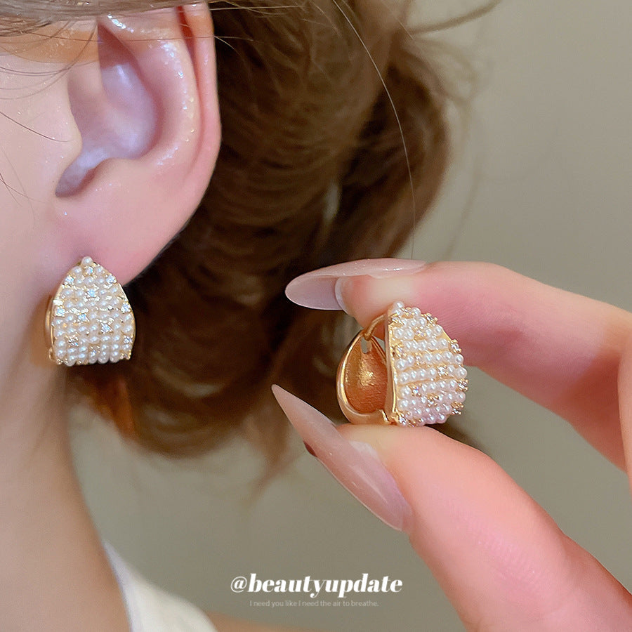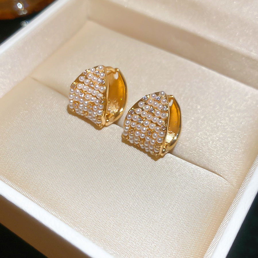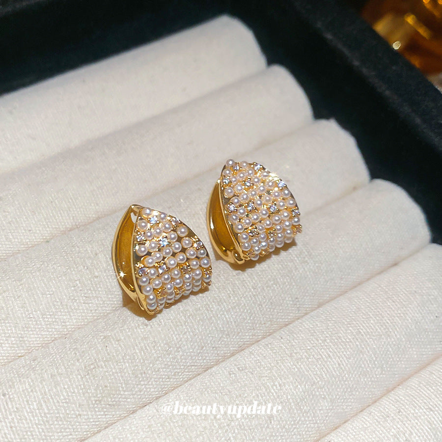 A廠【HE28409】925銀針超閃鋯石珍珠耳扣法式宮廷風優雅氣質耳環耳墜輕奢高級感耳飾 25.09-1