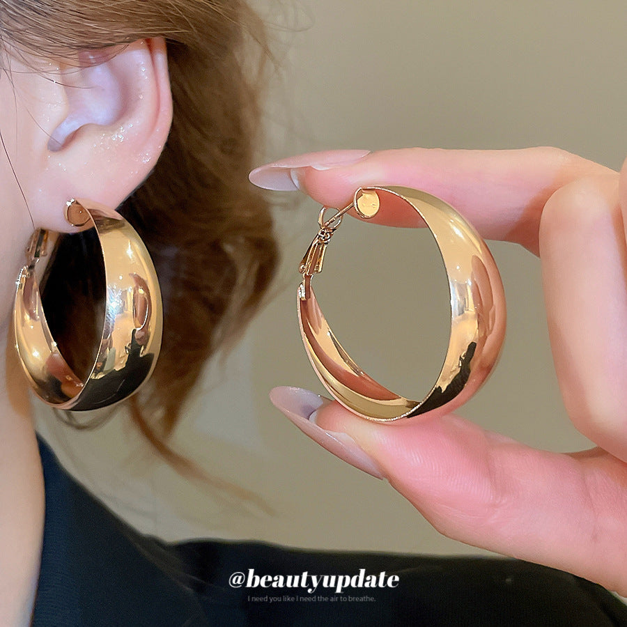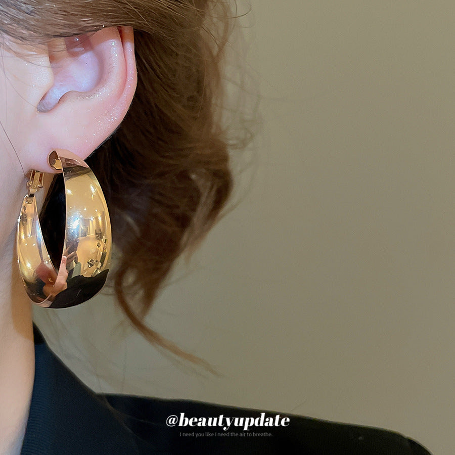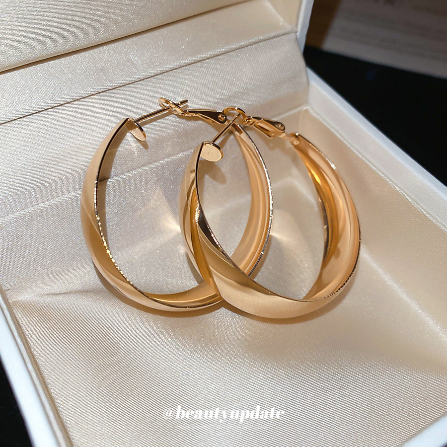 A廠【HE28452】925銀針金屬亮面圓圈大耳圈時尚歐美百搭簡約耳環耳環小眾高級感耳飾 25.09-1