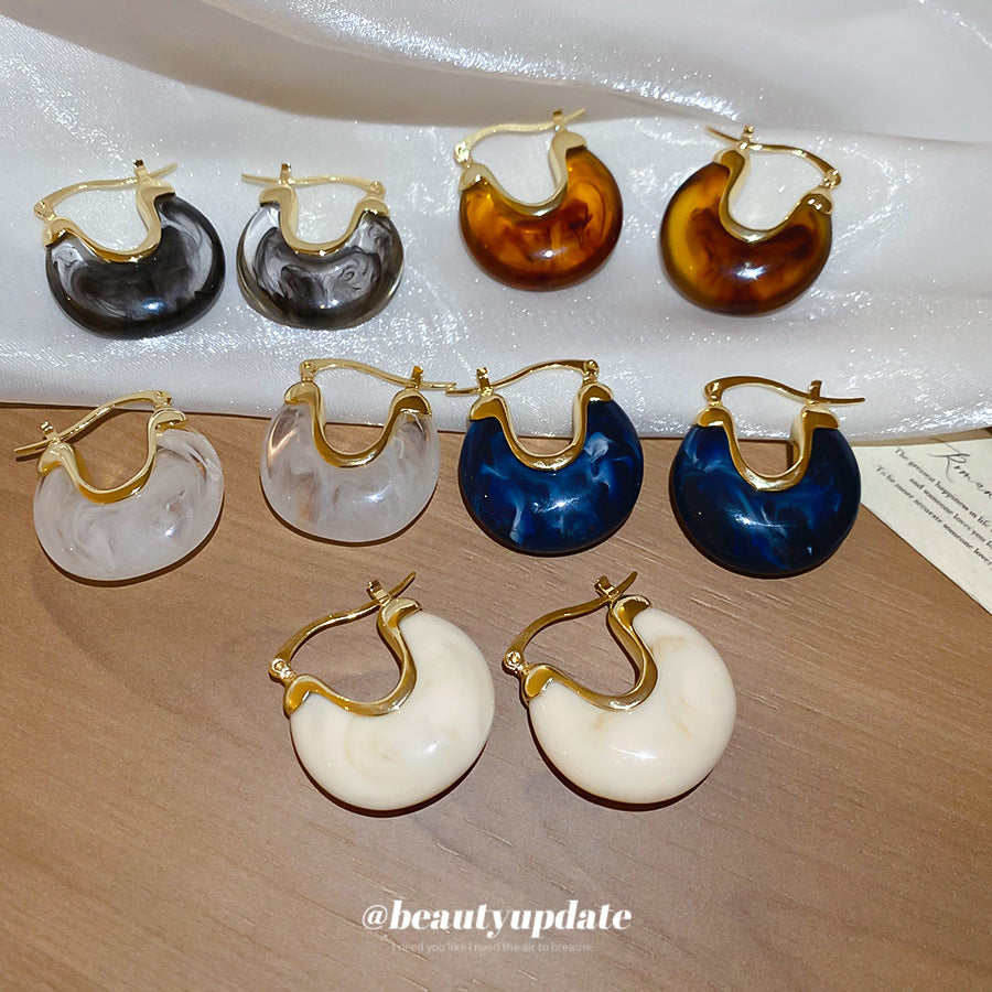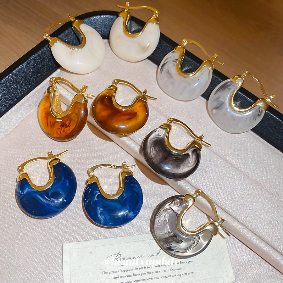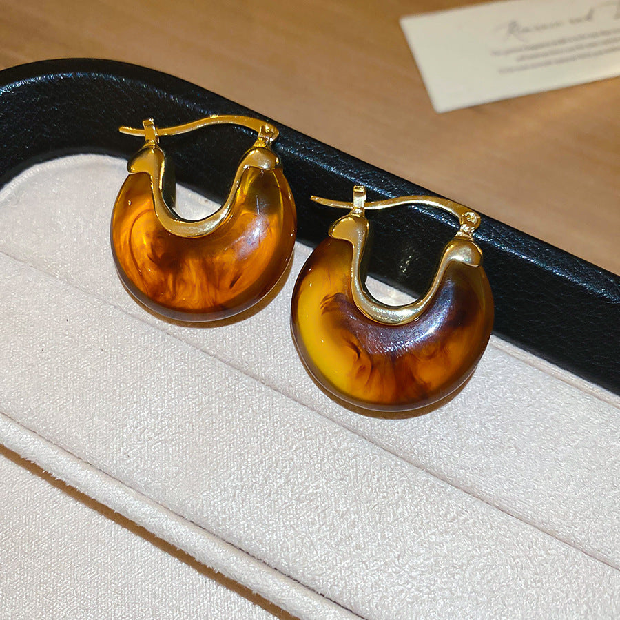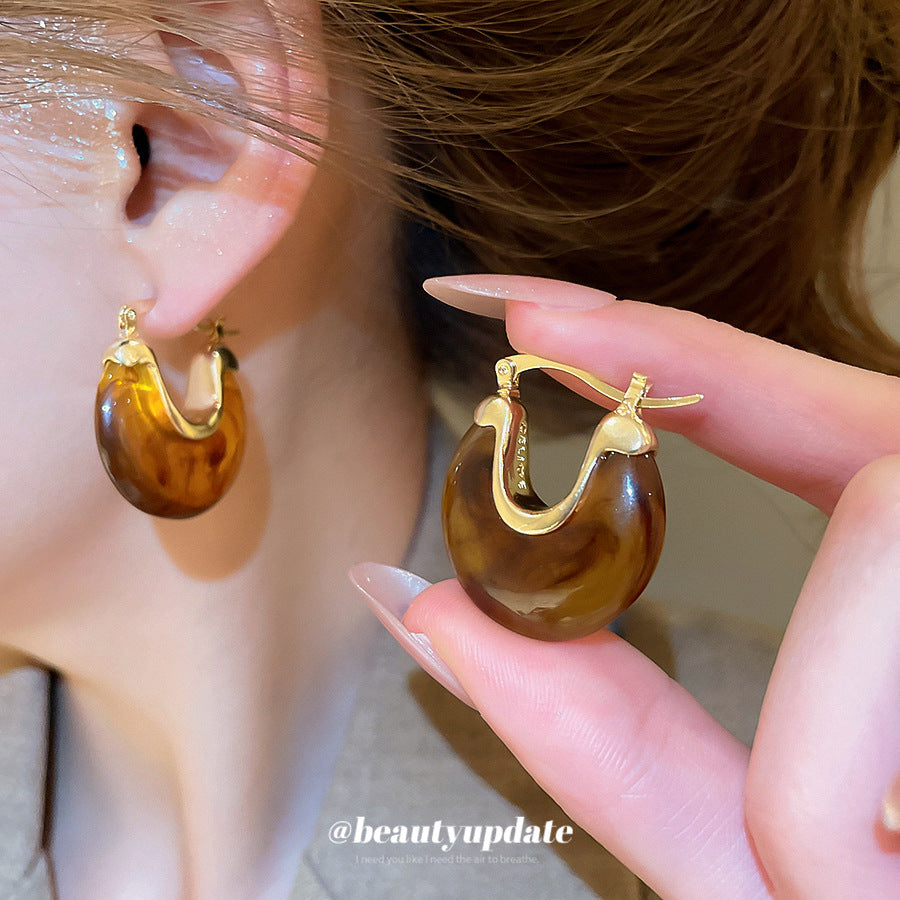 A廠【HE28464】法式復古樹脂幾何U型耳環時尚耳環氣質耳環秋冬新款設計感耳飾女 25.09-1