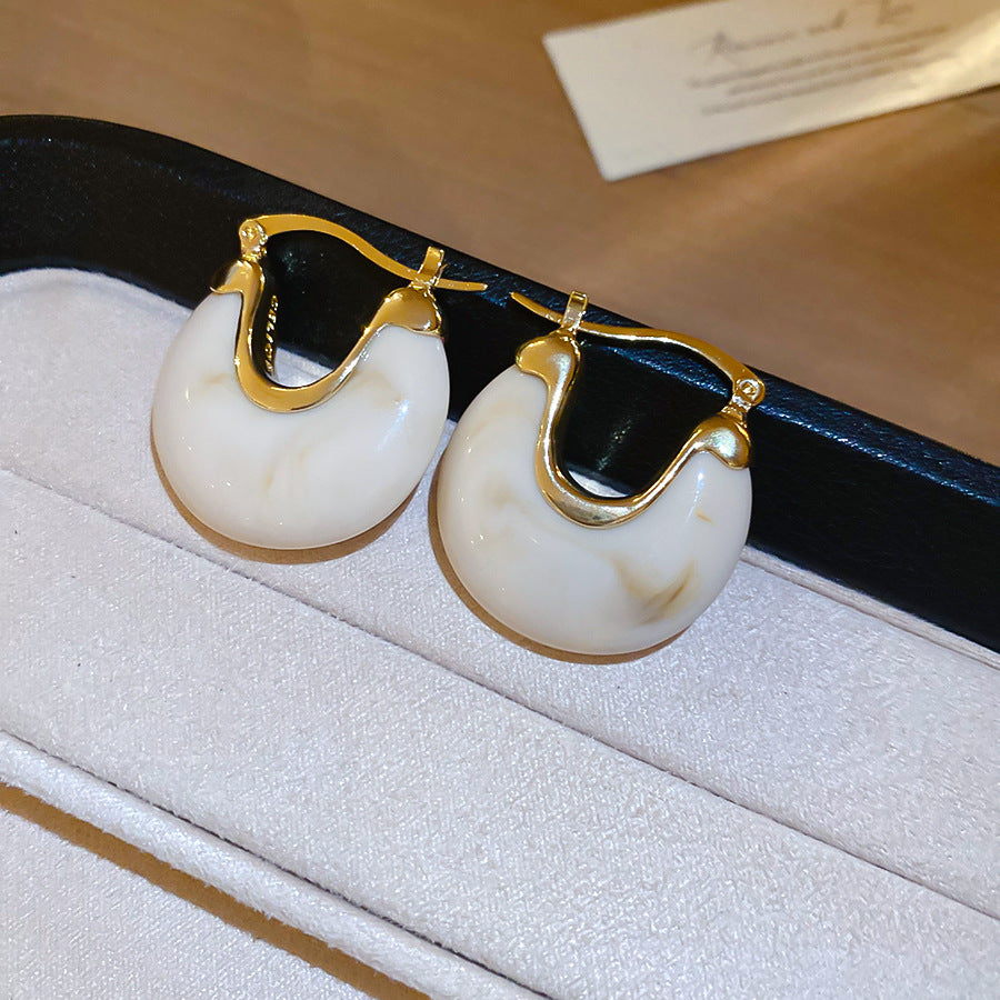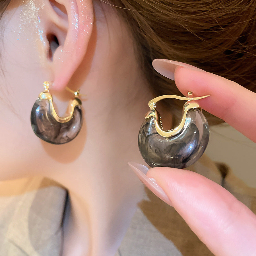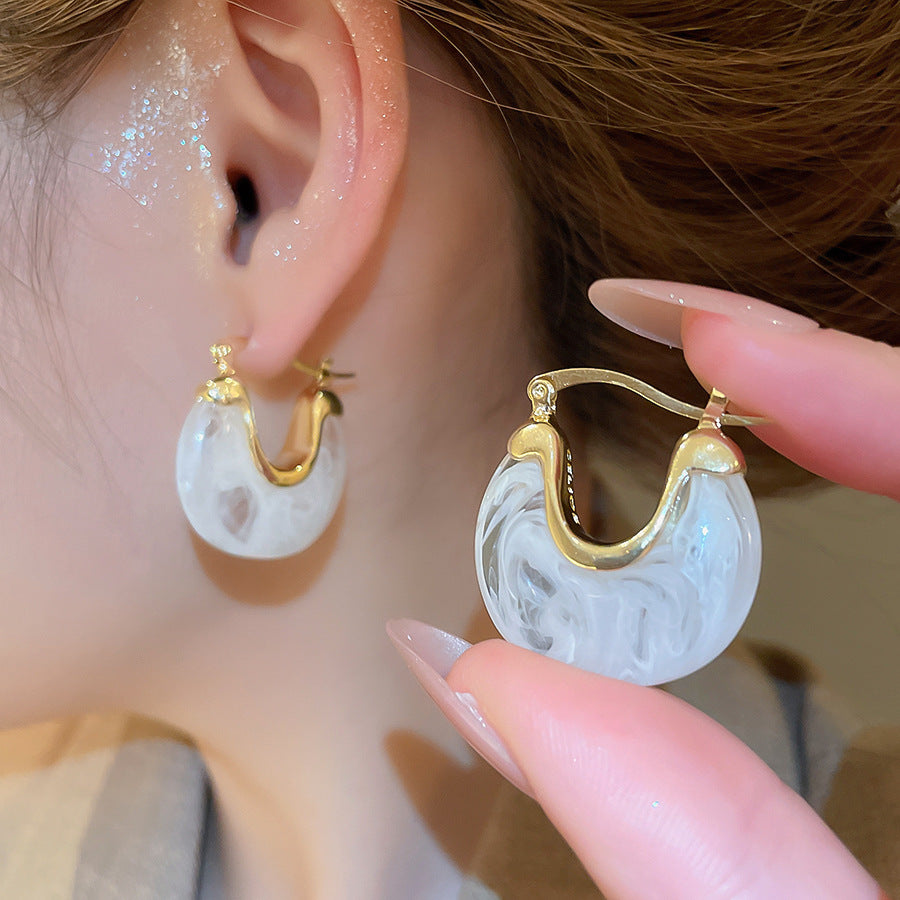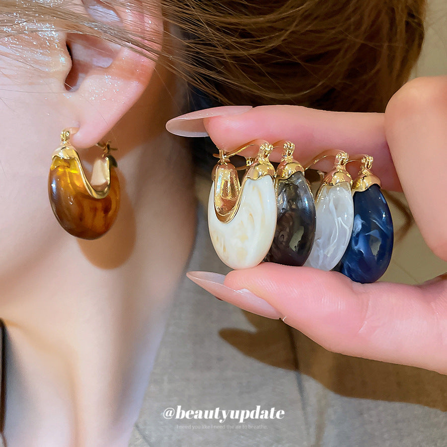 A廠【HE28464】法式復古樹脂幾何U型耳環時尚耳環氣質耳環秋冬新款設計感耳飾女 25.09-1