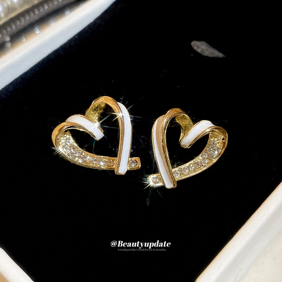 A廠【HE28546】925銀針鑲鑽滴油愛心吊墜耳環時尚簡約優雅通勤耳環輕奢高級感耳飾女 25.09-3