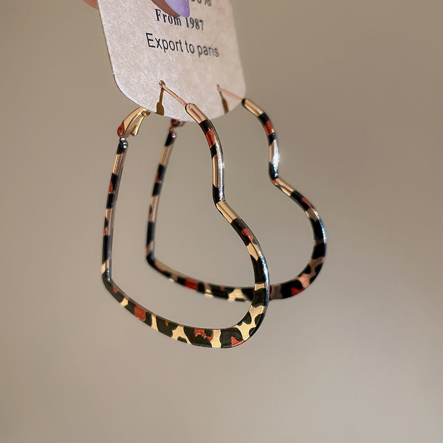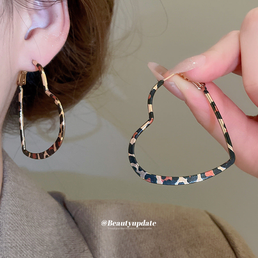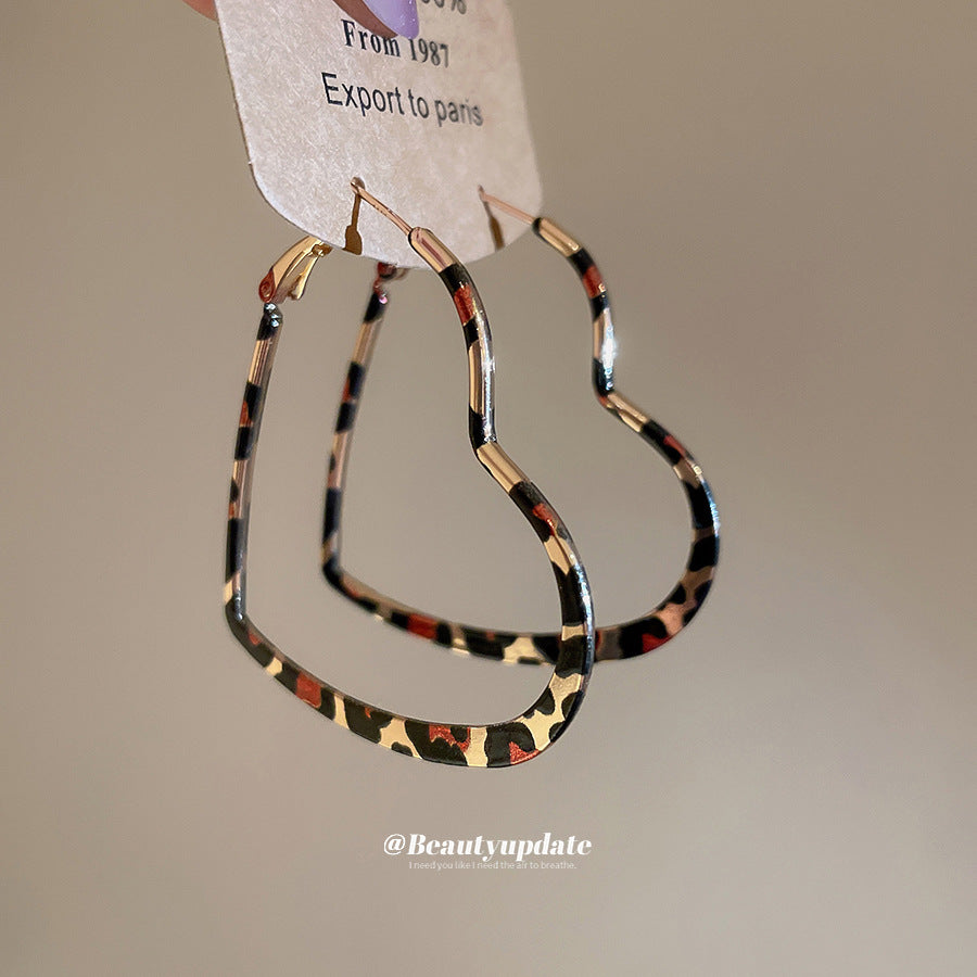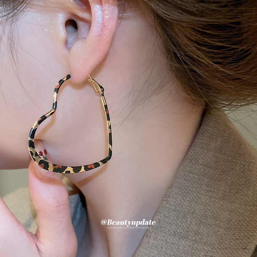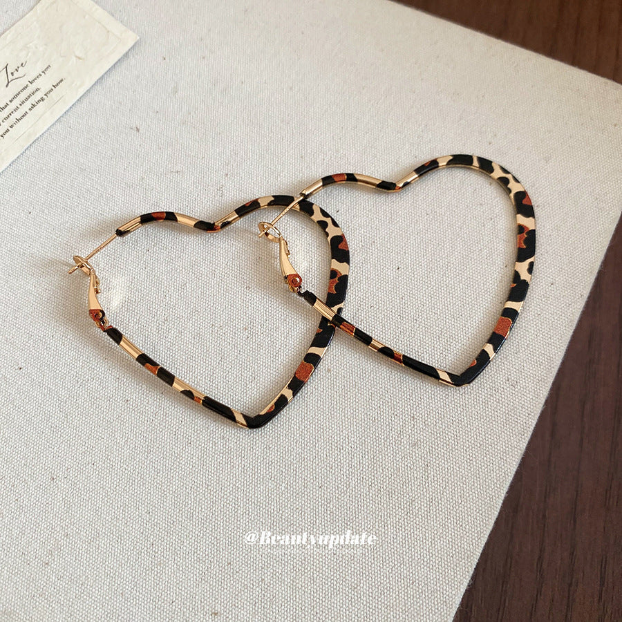 A廠【HE28588】925銀針歐美跨境豹紋愛心耳圈時尚百搭氣質耳環耳環小眾設計感耳飾女 25.09-3