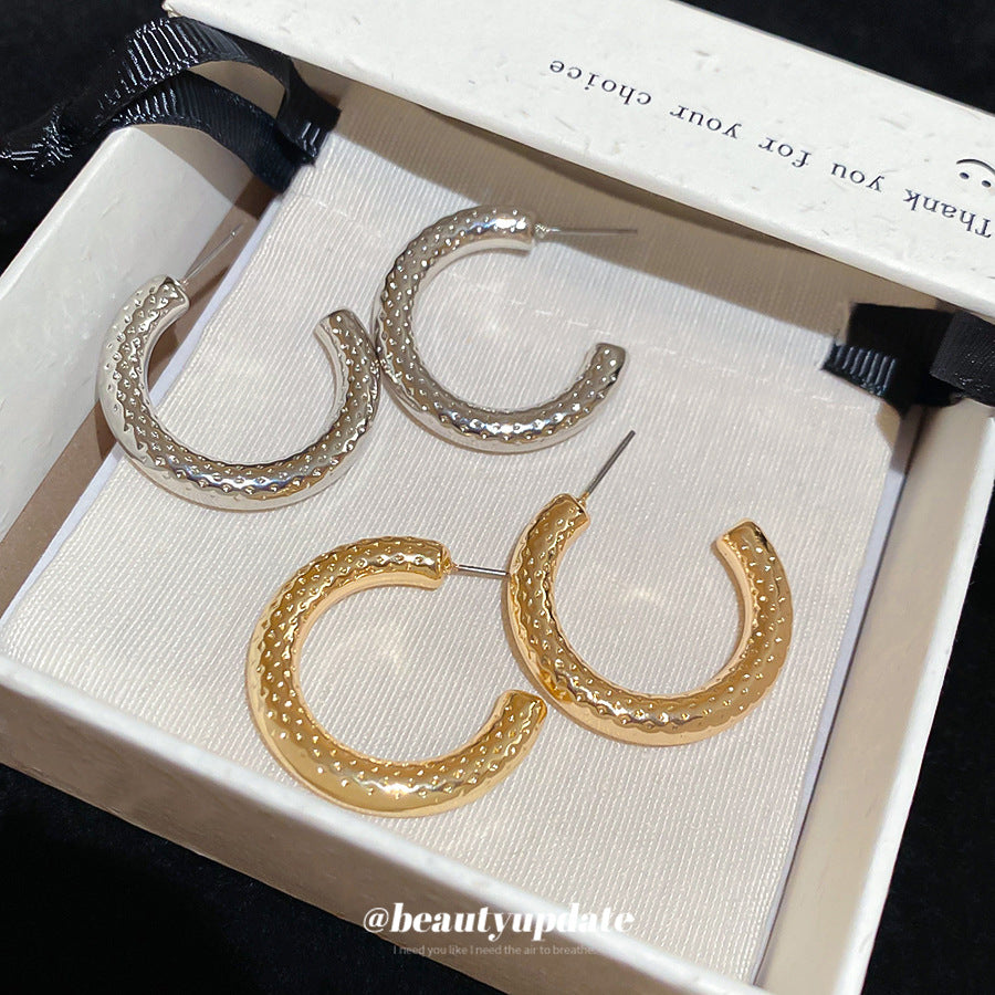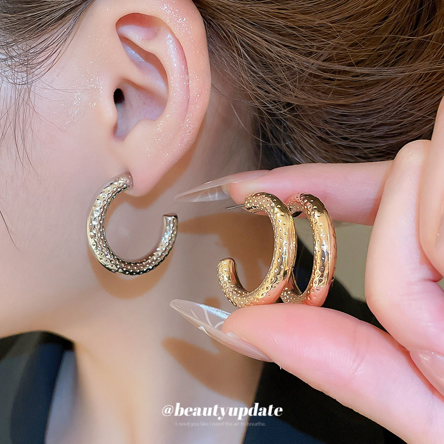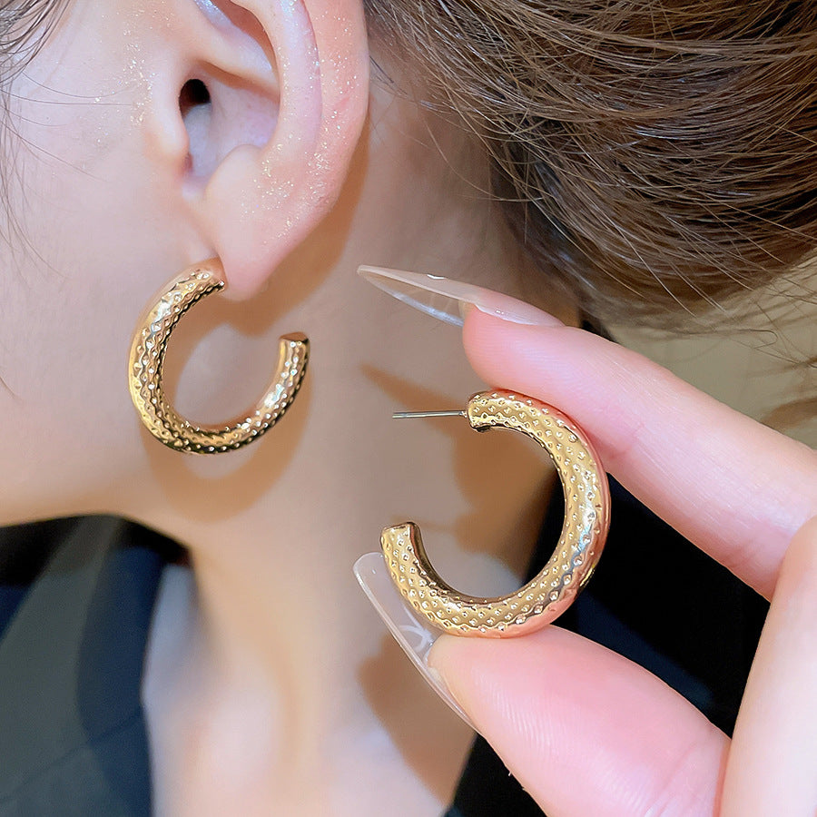 A廠【HE28687】925銀針斑點褶皺C型耳環歐美時尚簡約百搭氣質耳環小眾設計感耳飾女 25.09-4