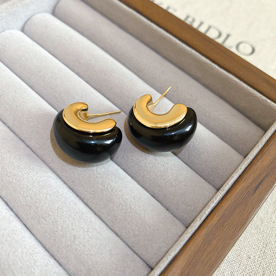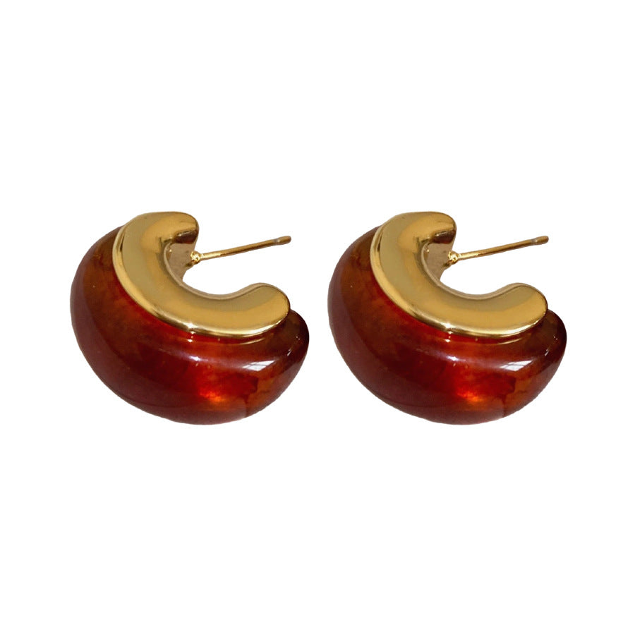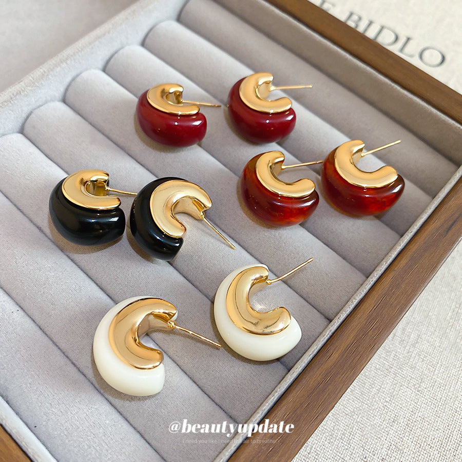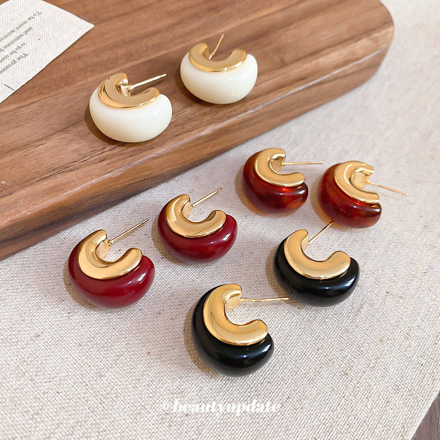 A廠【HE28719】18k真金電鍍925銀針樹脂C型耳環復古港風耳環輕奢高級感個性耳環 25.10-1
