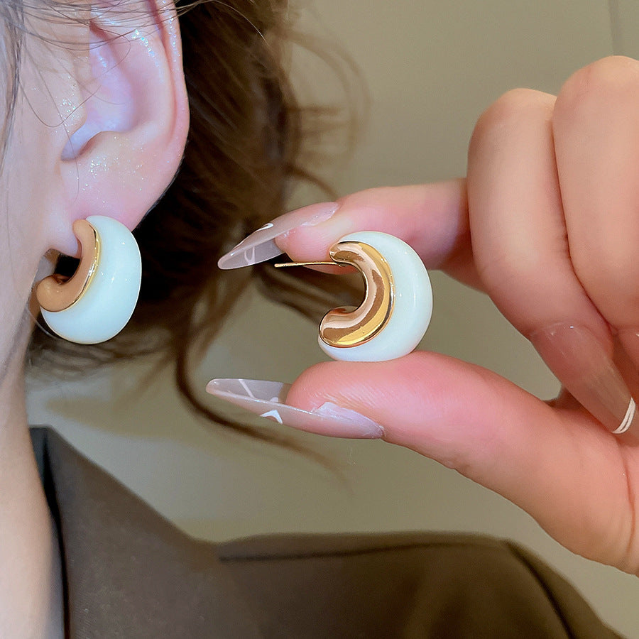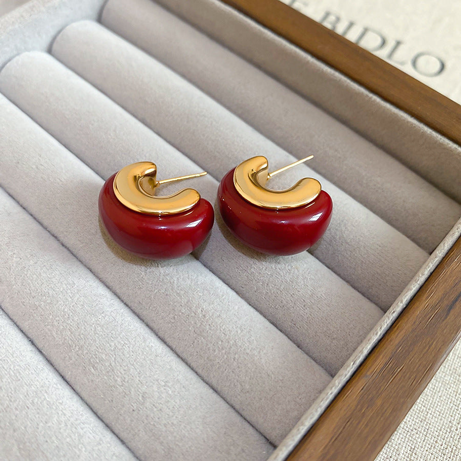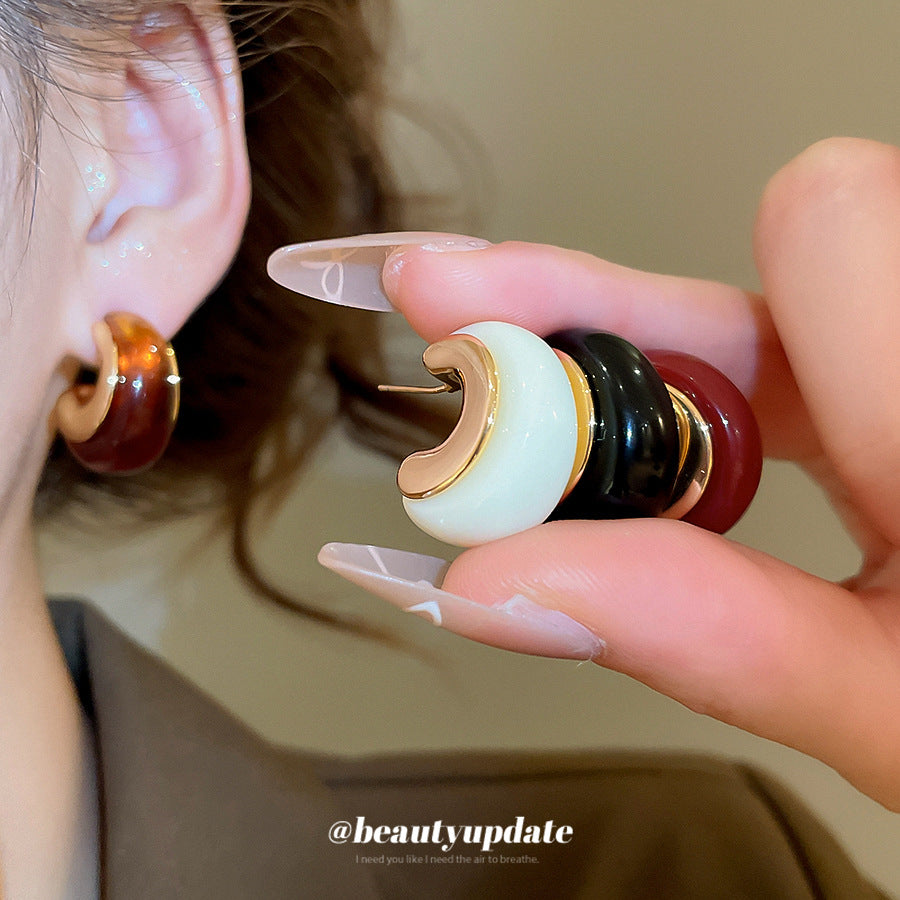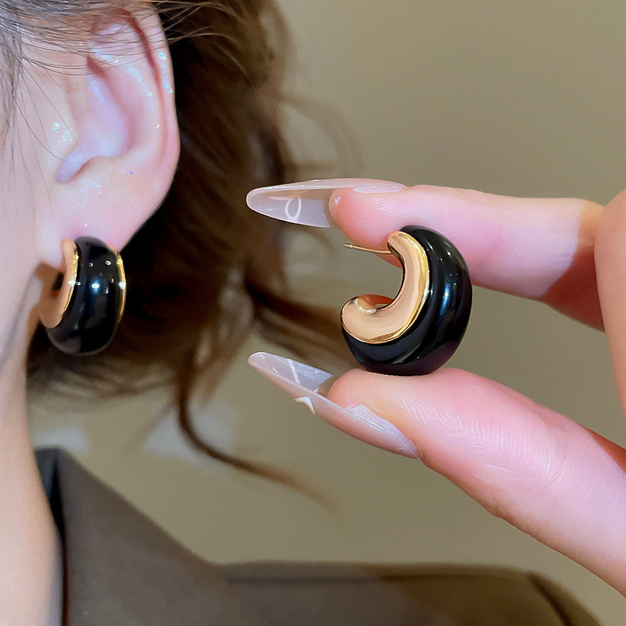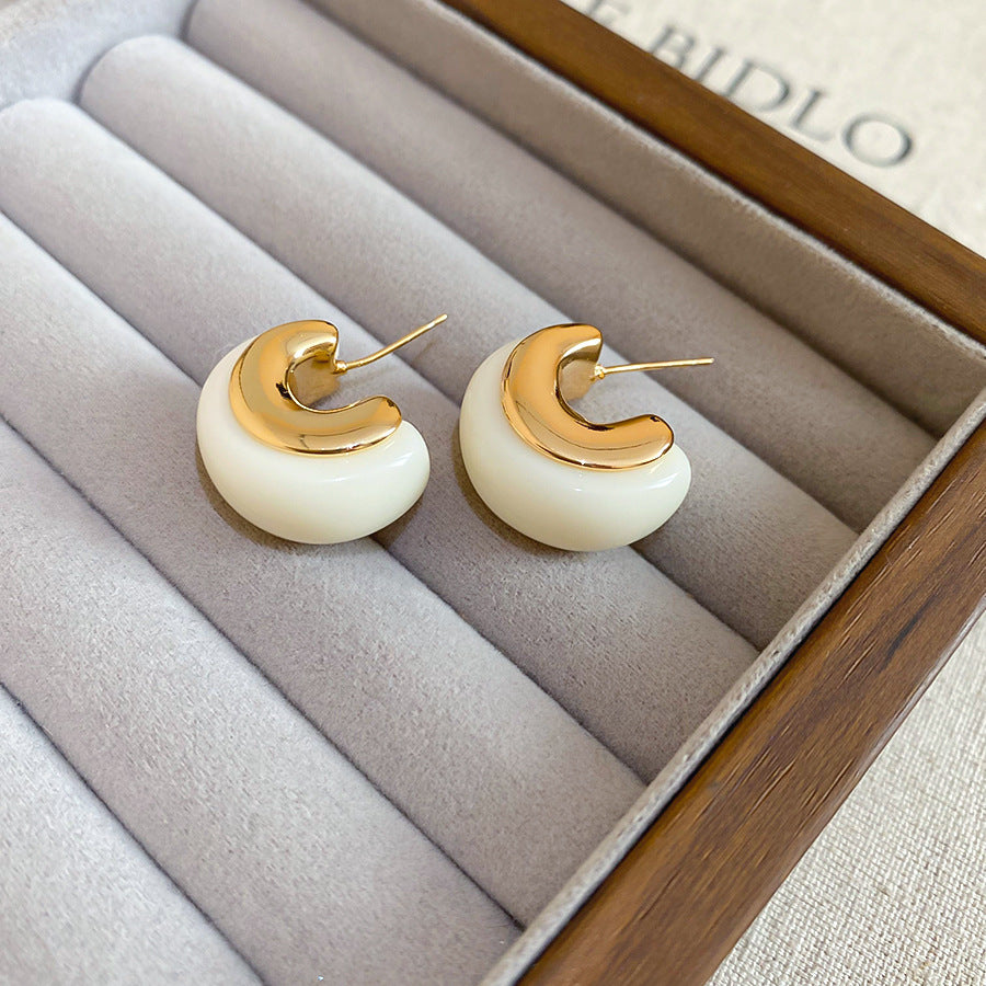 A廠【HE28719】18k真金電鍍925銀針樹脂C型耳環復古港風耳環輕奢高級感個性耳環 25.10-1