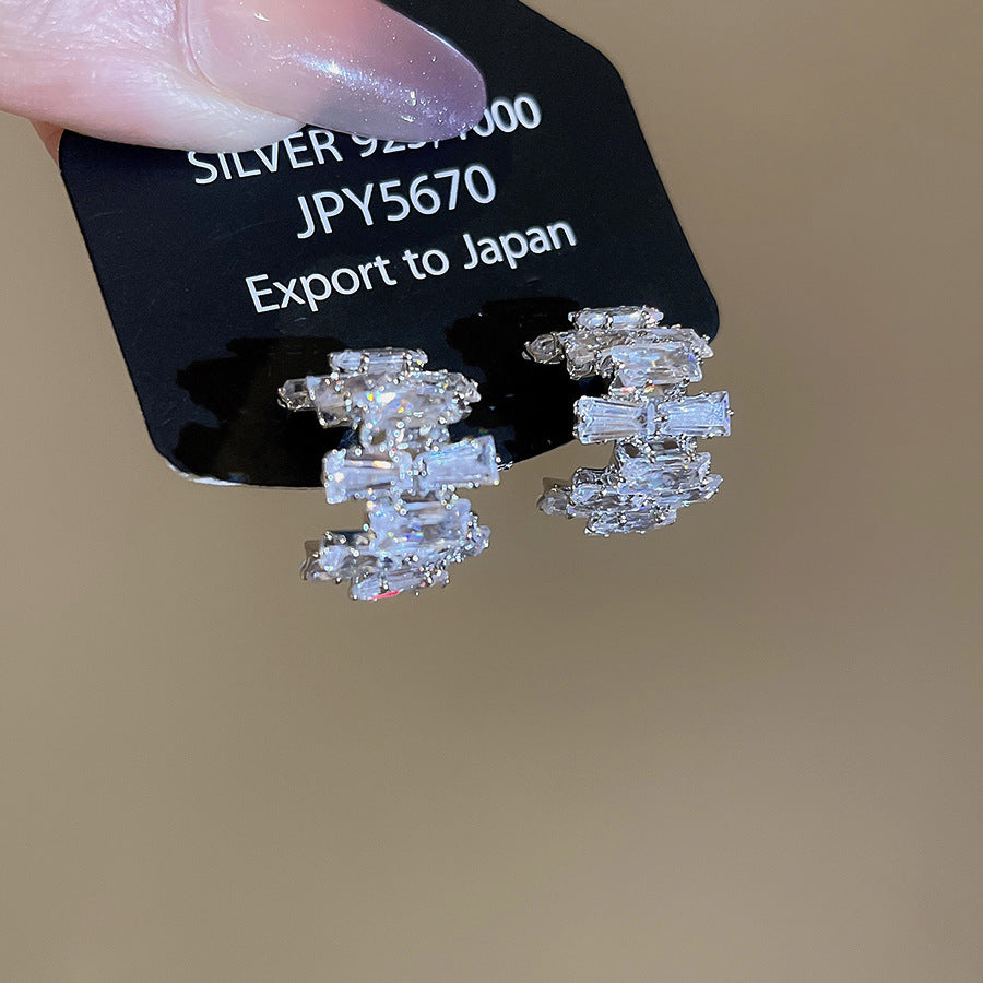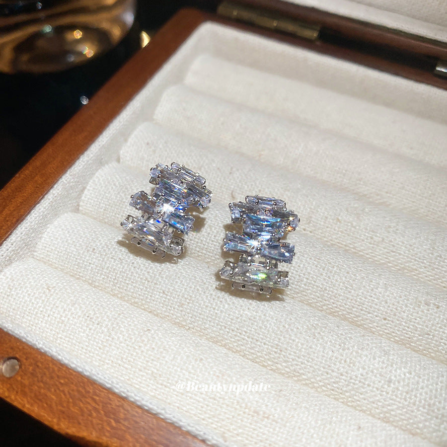 A廠【HE28761】925銀針超閃鋯石方形不規則C形耳環時尚冷淡風耳環輕奢高級感耳飾女 25.09-4