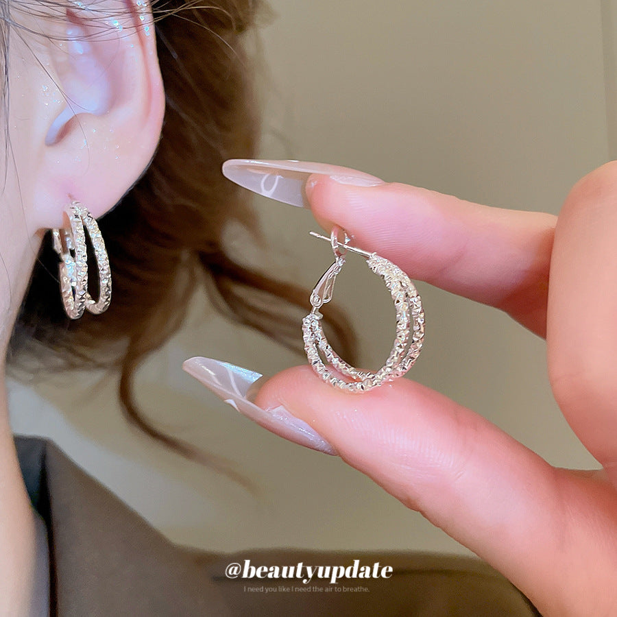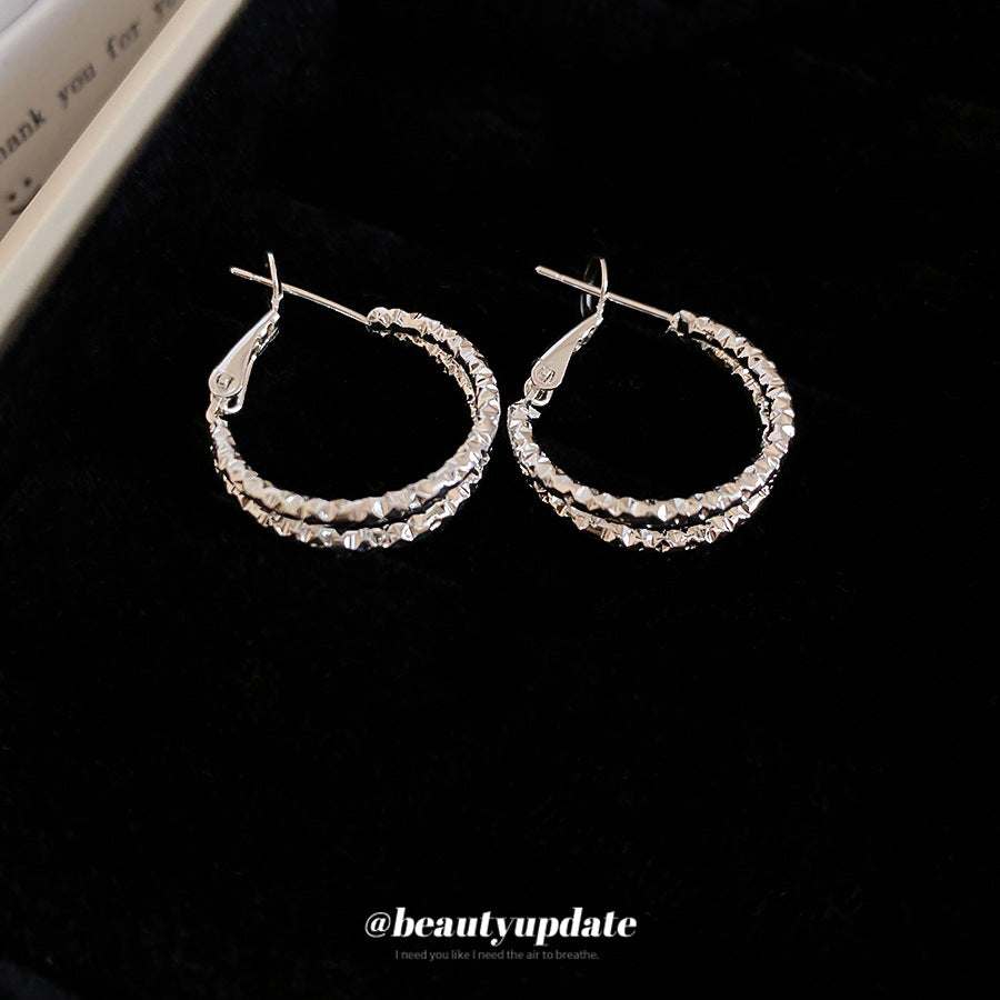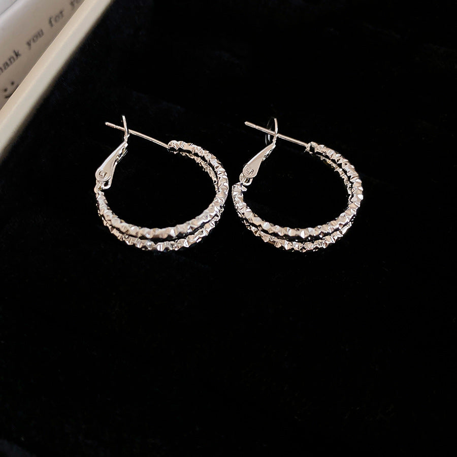A廠【HE28775】925銀針褶皺雙層圓形吊墜耳圈時尚簡約冷淡風氣質耳環小眾設計感耳環 25.10-1