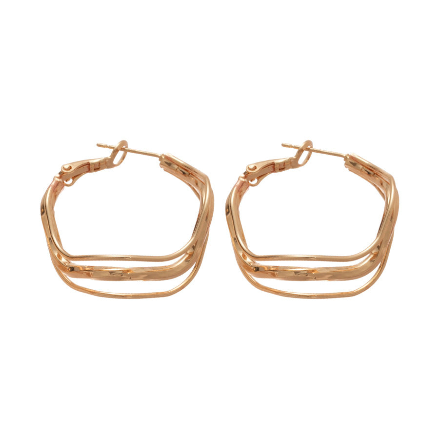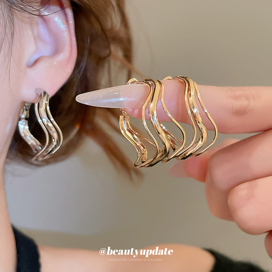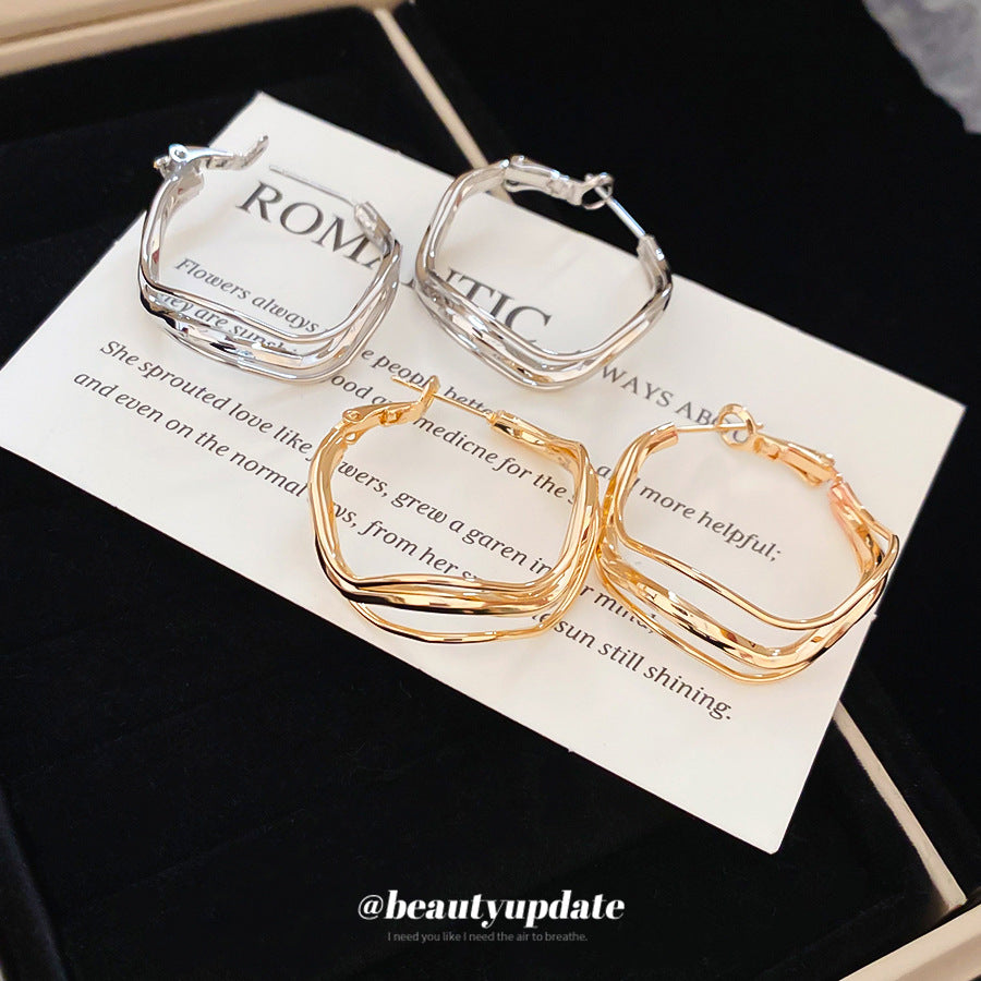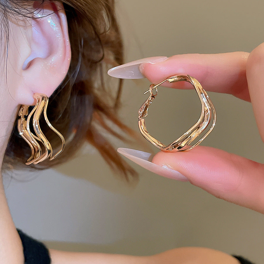 A廠【HE28799】925銀針歐美波浪不規則圓形吊墜金屬耳圈時尚百搭耳環小眾設計感耳飾 25.10-1