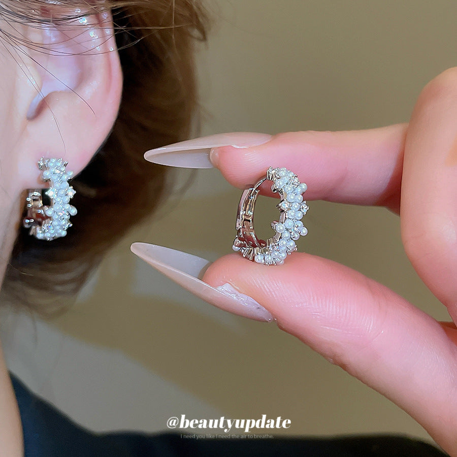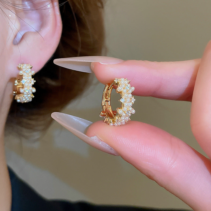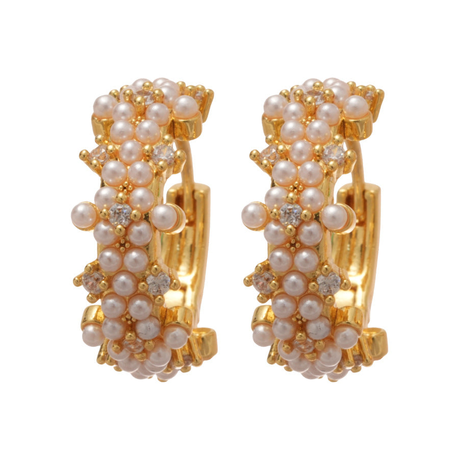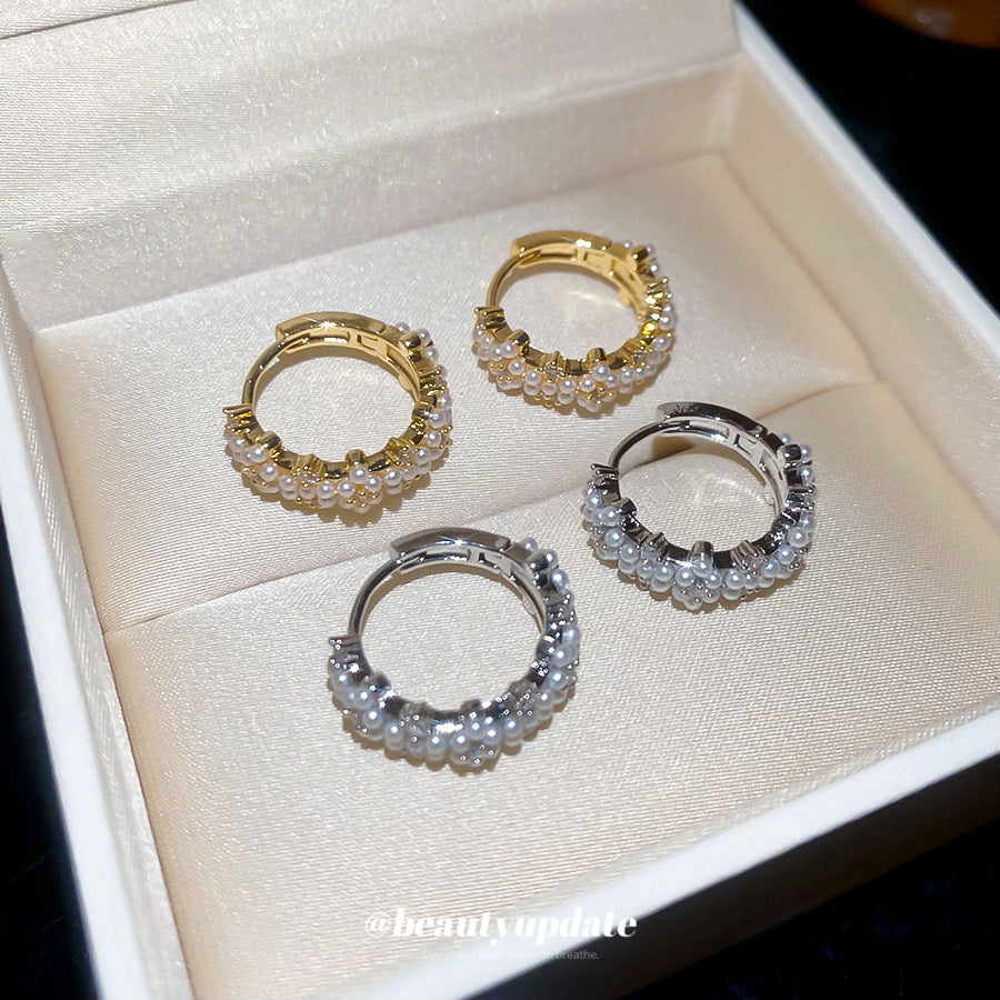 A廠【HE28829】14K真金電鍍鋯石珍珠幾何圓形耳扣優雅氣質耳環輕奢高級感耳飾女 25.10-1