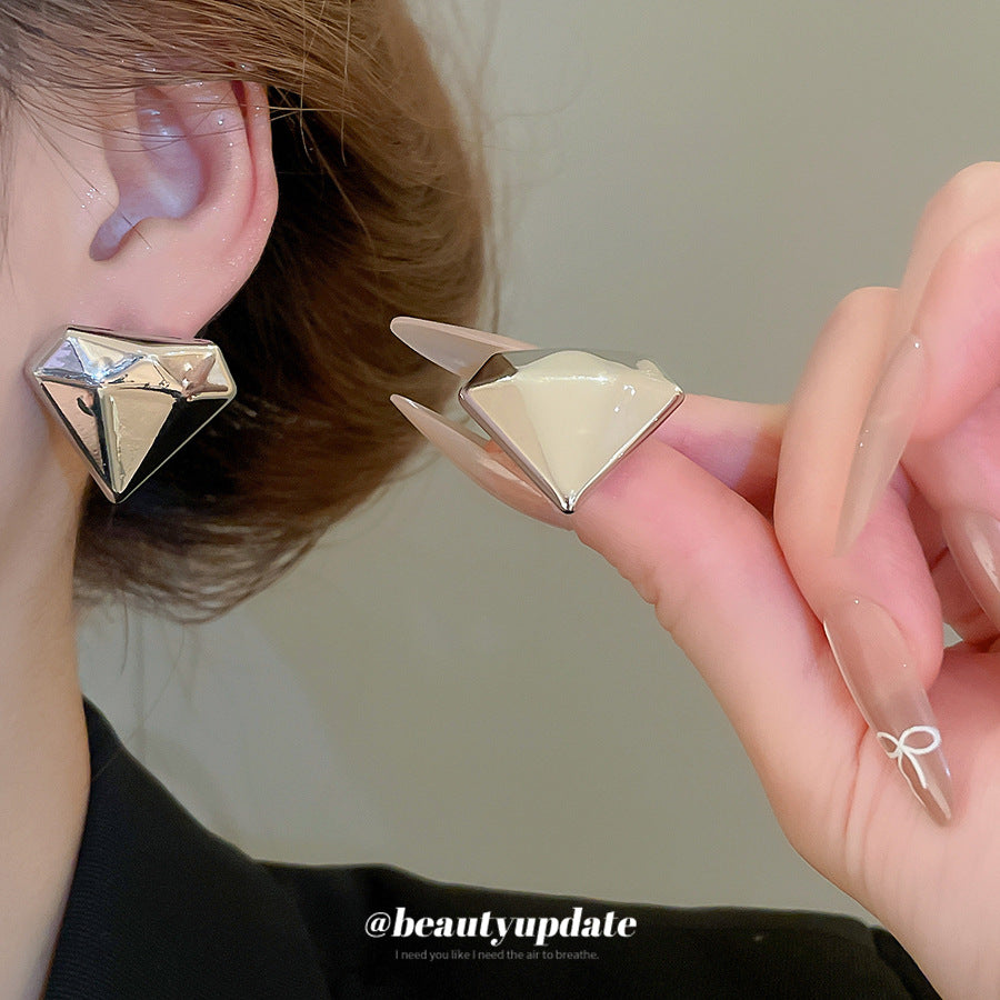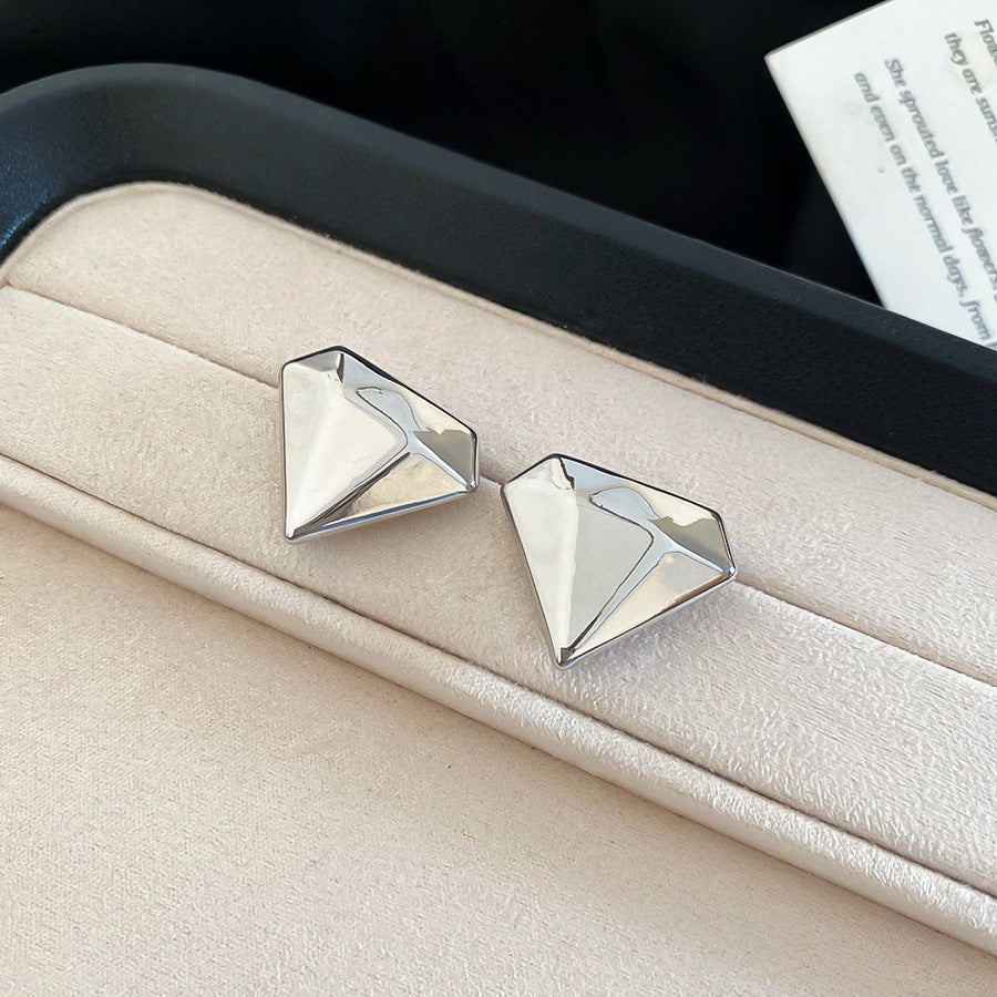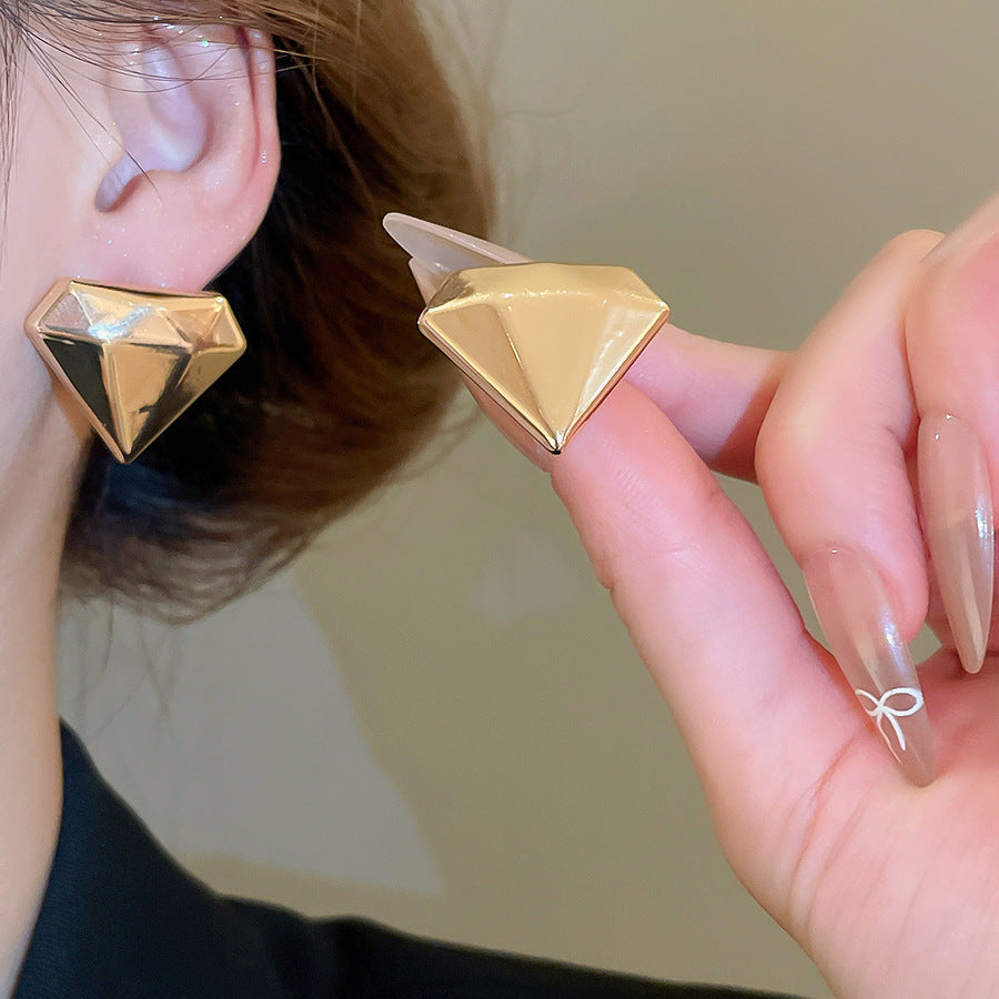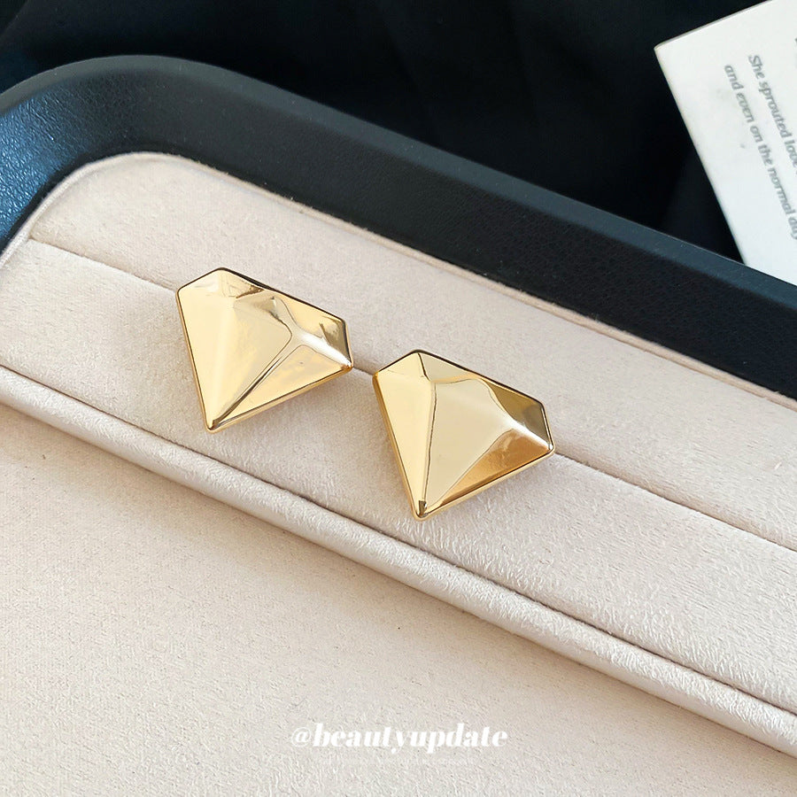A廠【HE28830】925銀針歐美跨境鑽石形金屬耳環時尚簡約百搭耳環耳墜小眾設計感耳飾 25.10-1