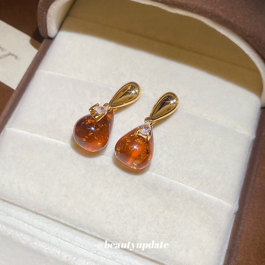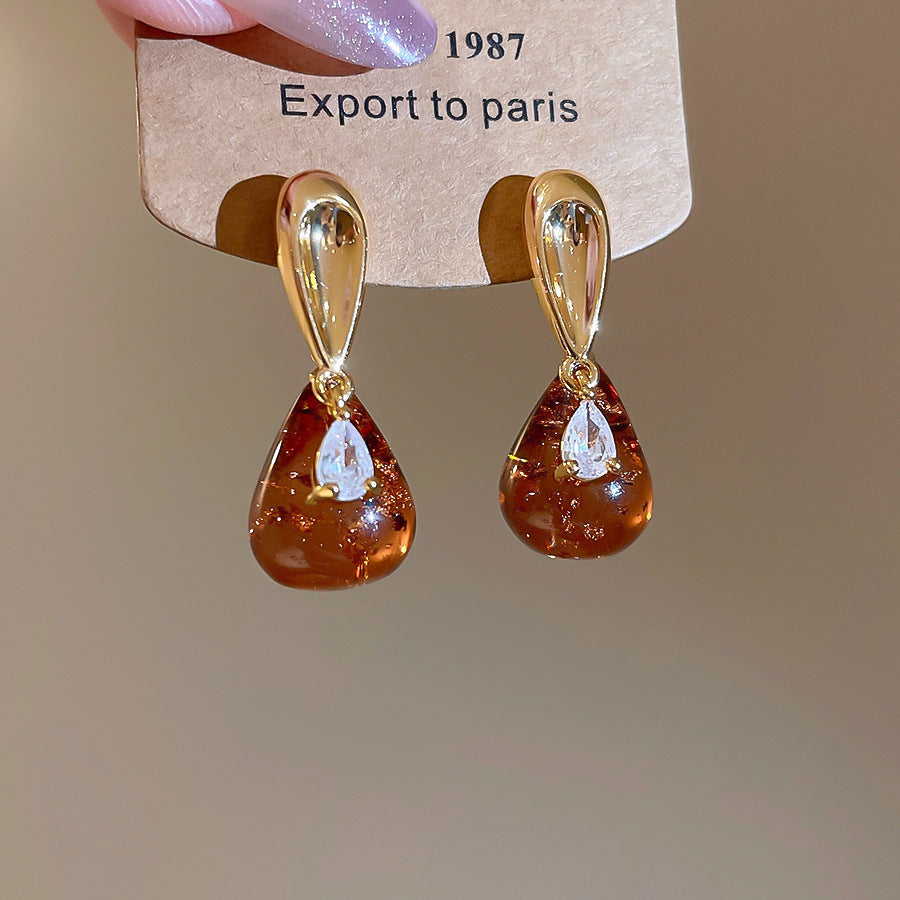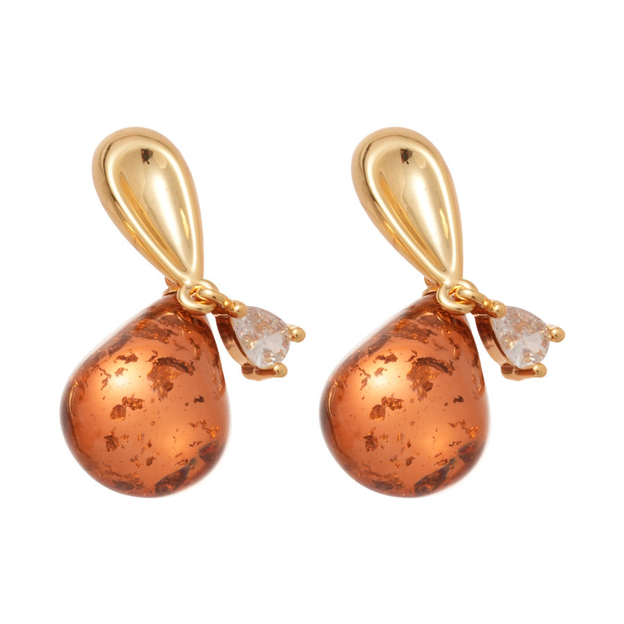 A廠【HE28840】18K真金電鍍925銀針樹脂水滴吊墜耳環復古港風耳環小眾設計感耳飾女 25.10-1