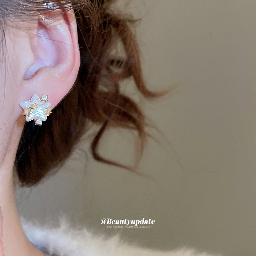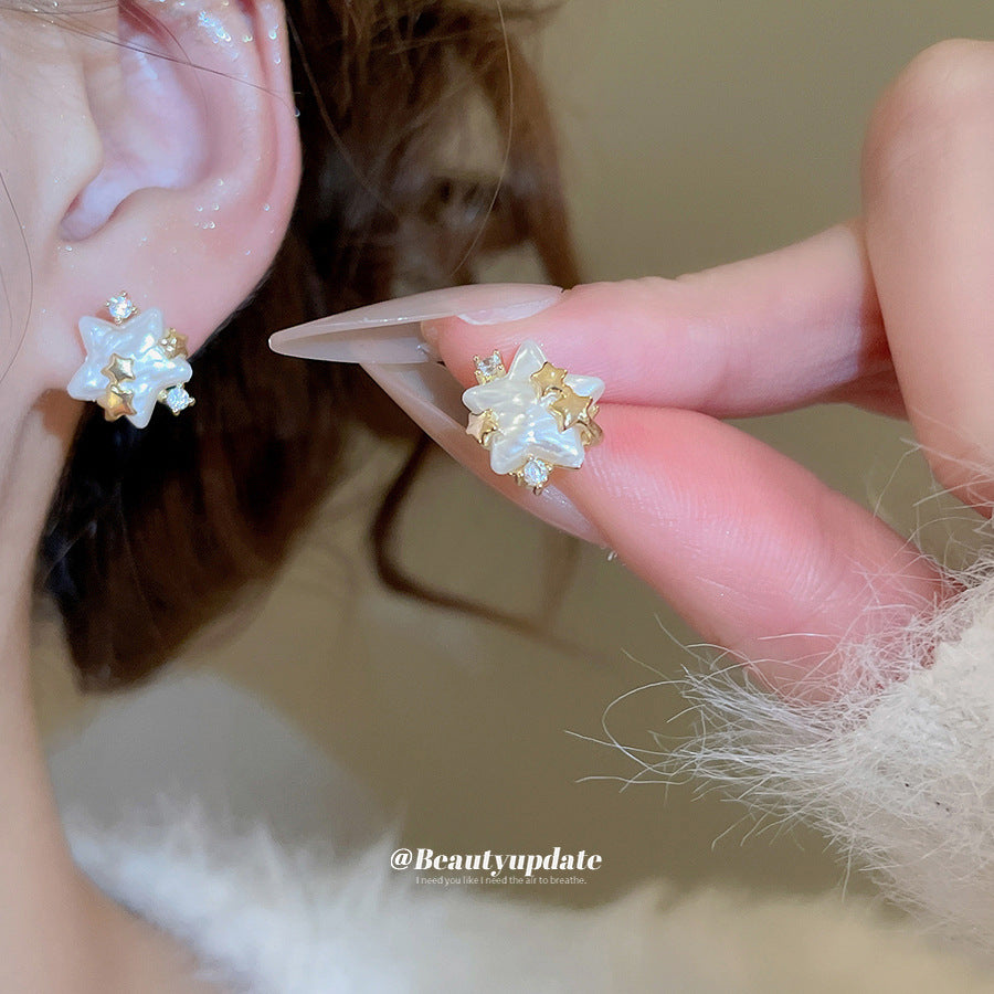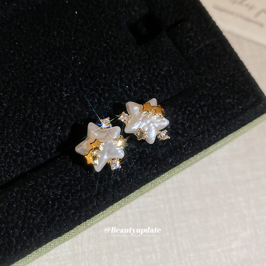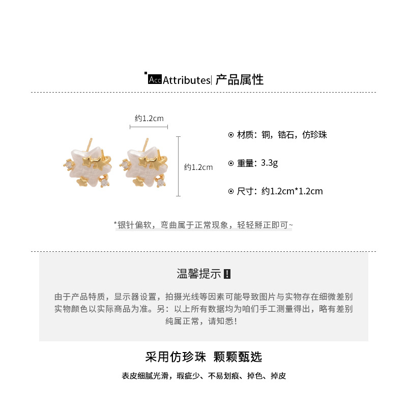 A廠【HE28855】14k真金電鍍925銀針鋯石仿珍珠星星耳環時尚百搭耳環輕奢高級感耳飾 25.10-1
