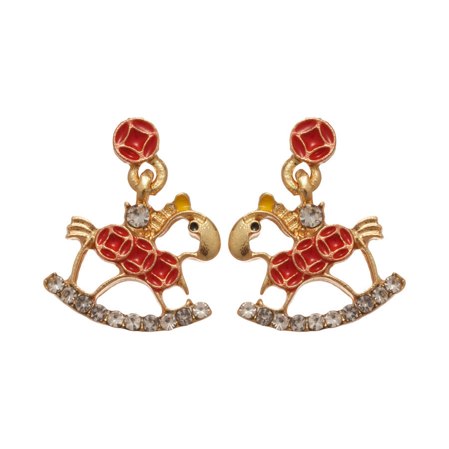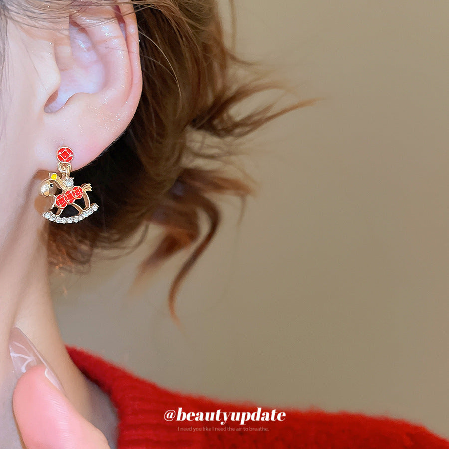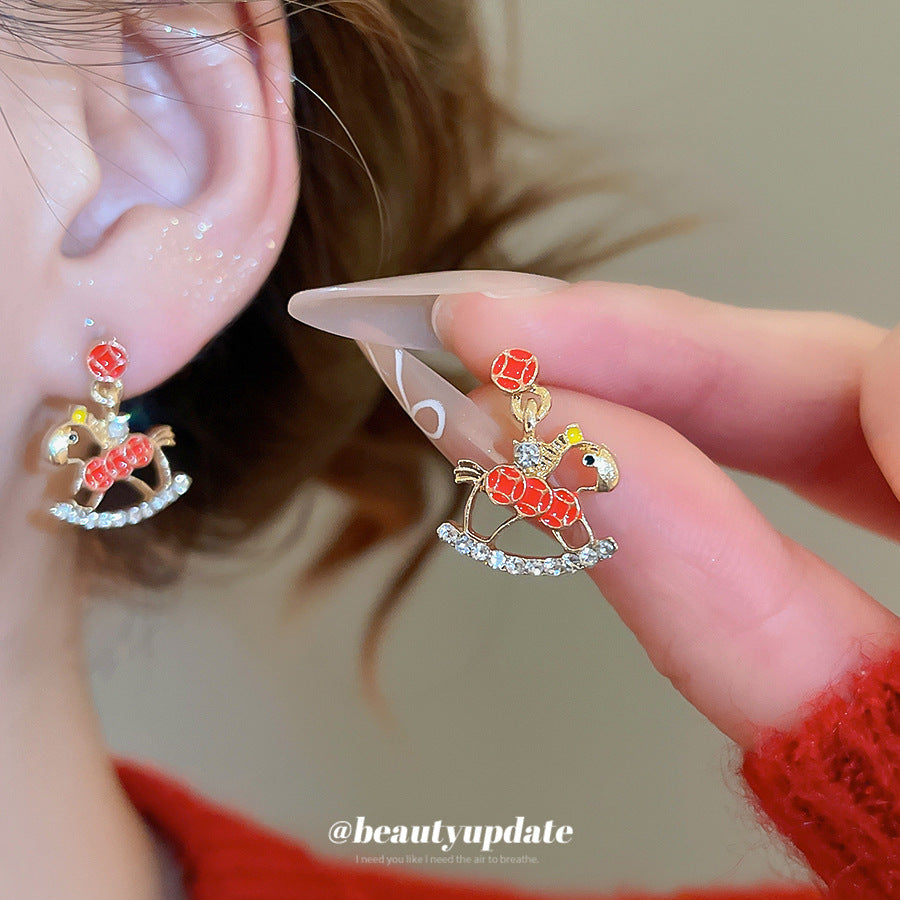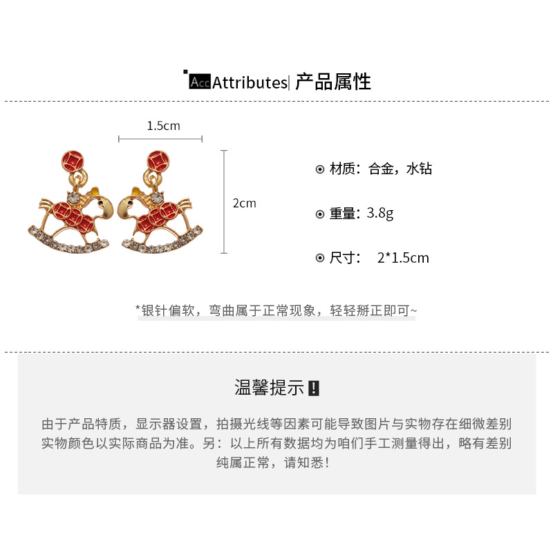 A廠【HE28860】925銀針輕奢鑲鑽滴油小馬吊墜耳環卡通創意個性耳環小眾設計感耳飾女 25.10-2