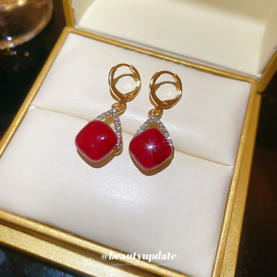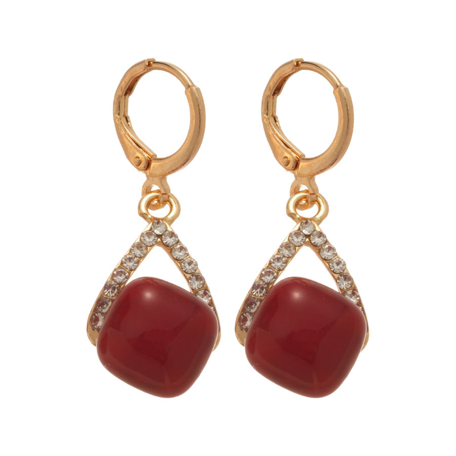 A廠【HE28879】美拉德鑲鑽滴油壓克力幾何菱形耳扣復古港風耳環輕奢高級感耳飾女 25.10-2