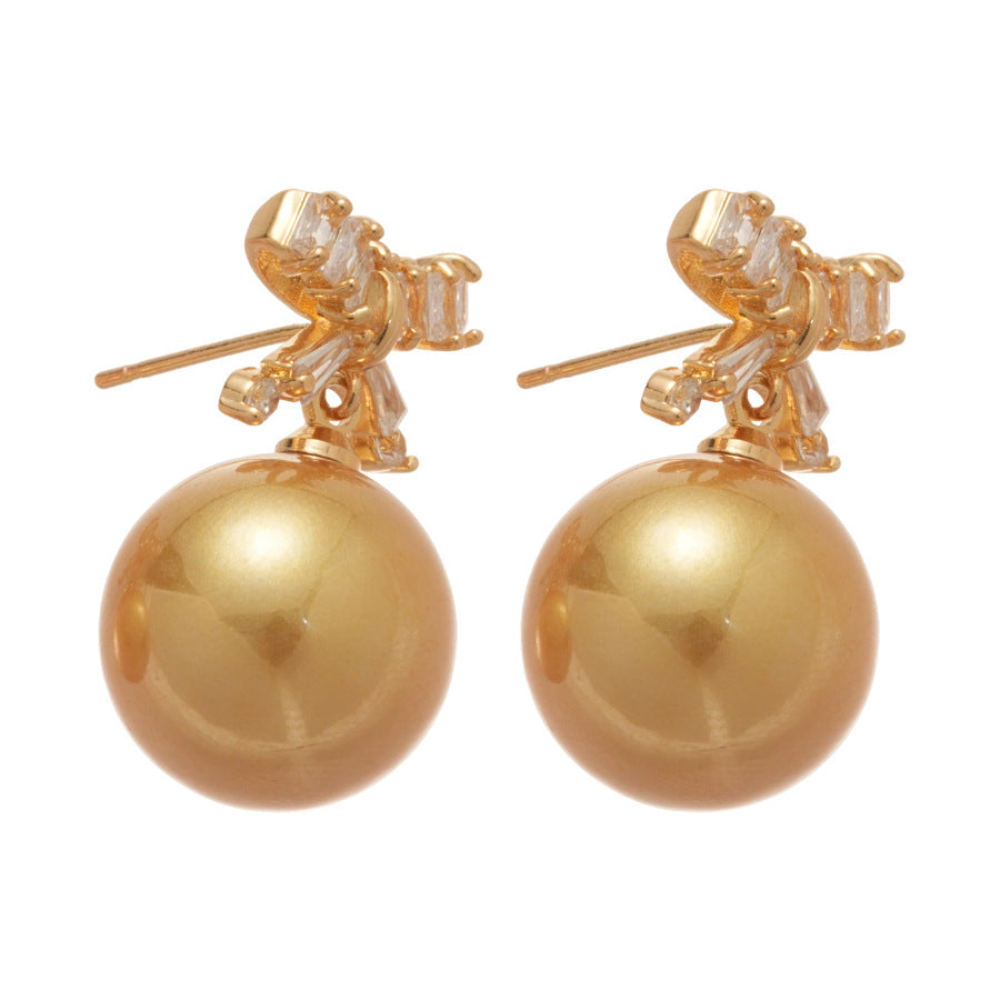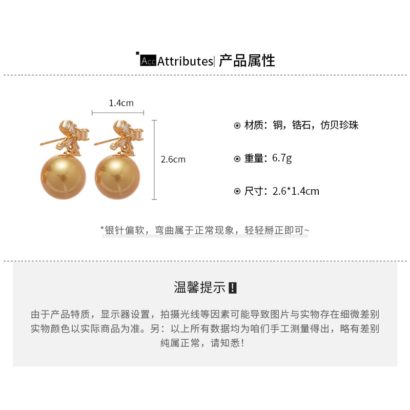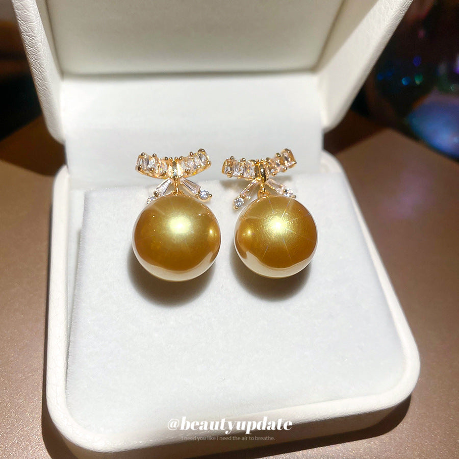 A廠【HE28881】925銀針超閃鋯石蝴蝶結香檳色珍珠耳環優雅氣質耳環輕奢高級感耳飾女 25.10-2