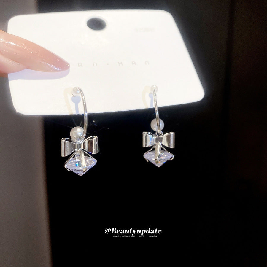 A廠【HE29116】925銀針蝴蝶結吊墜珍珠耳環韓系ins優雅精緻耳環輕奢高級感耳飾 25.11-1