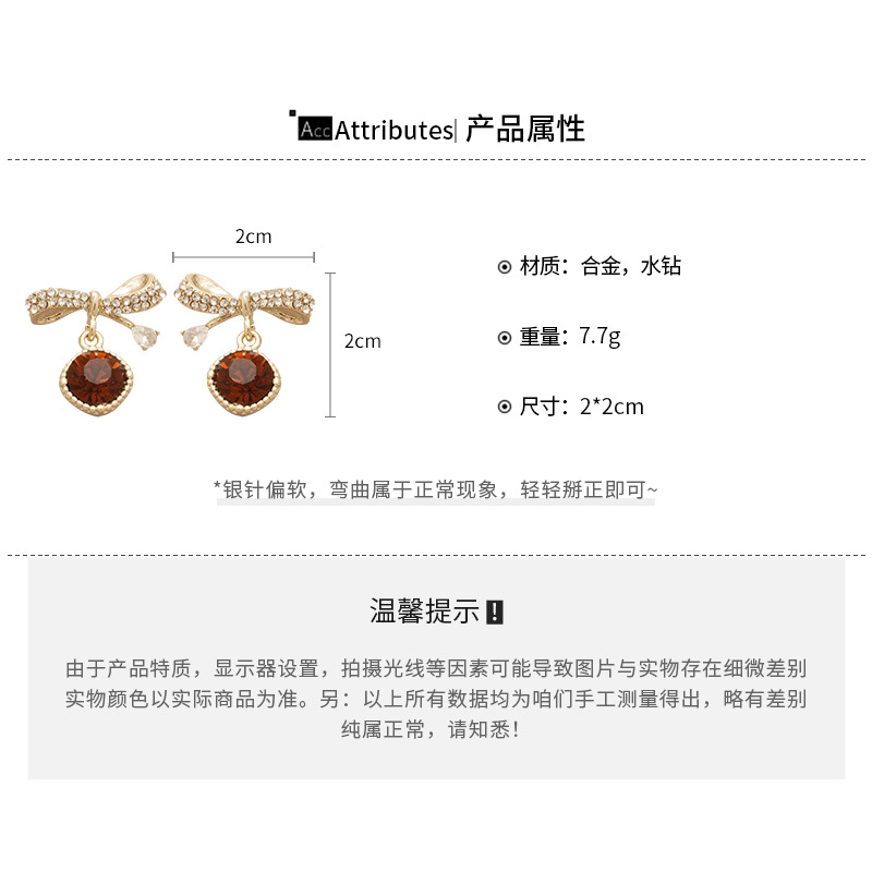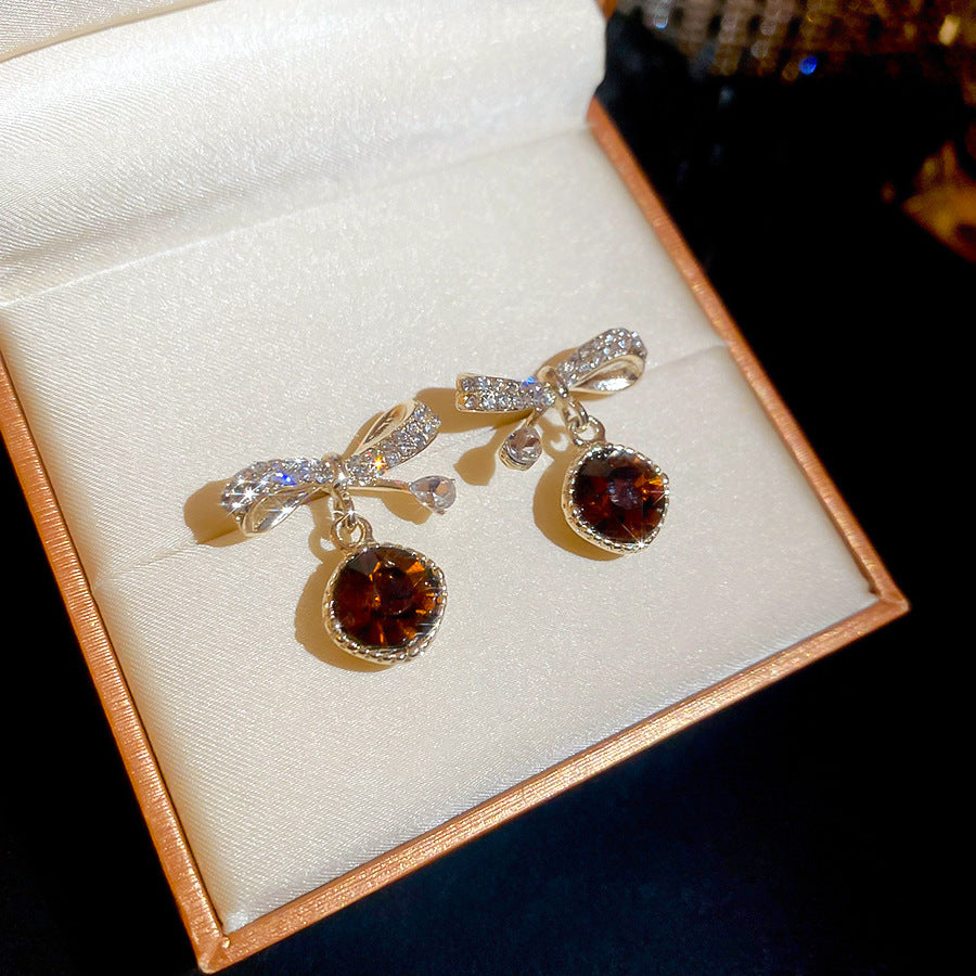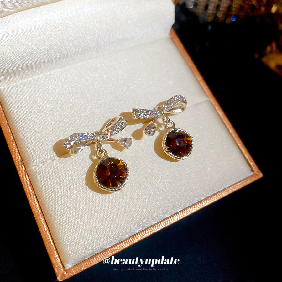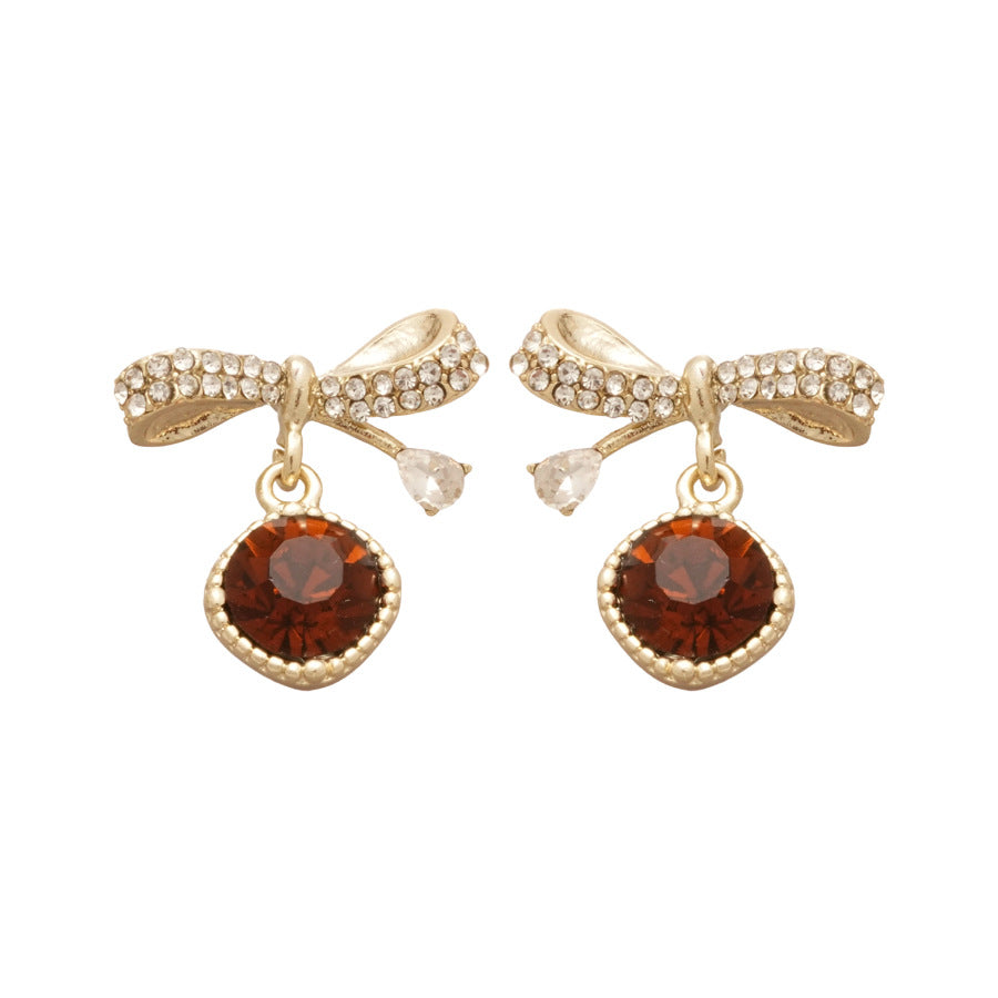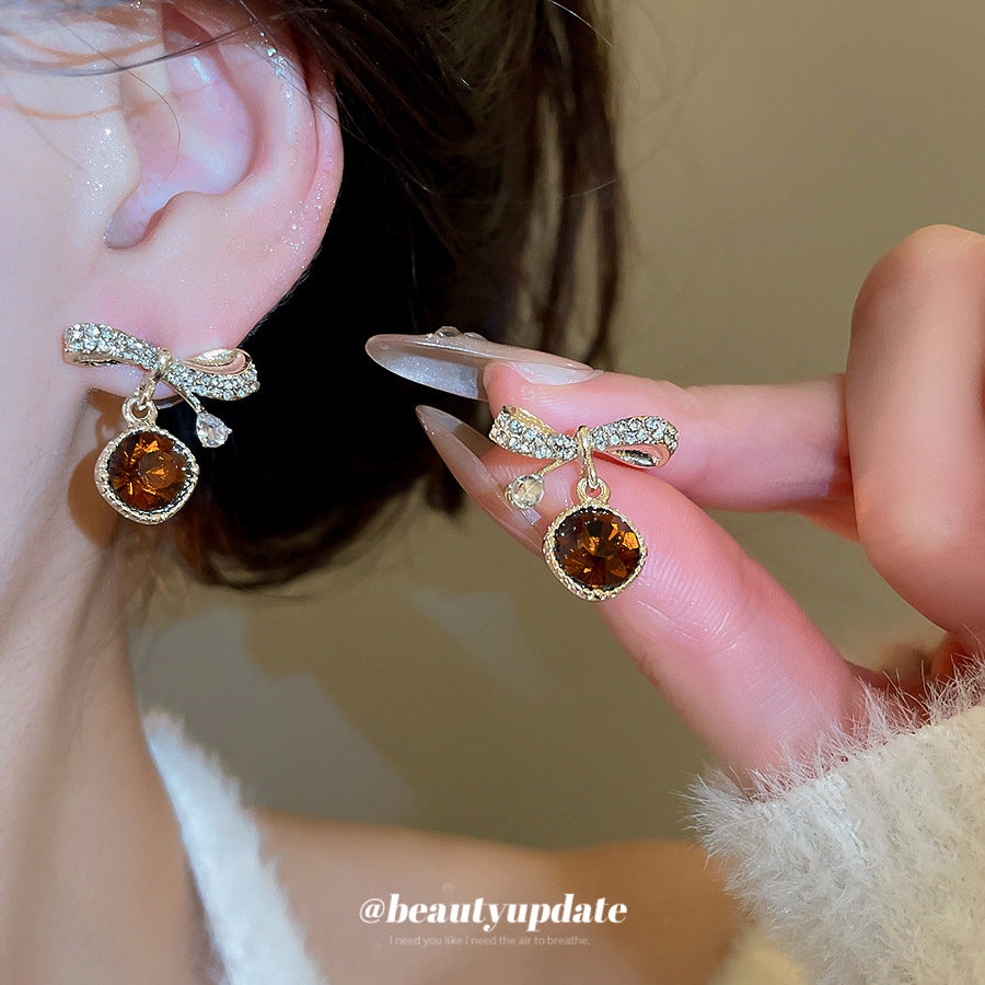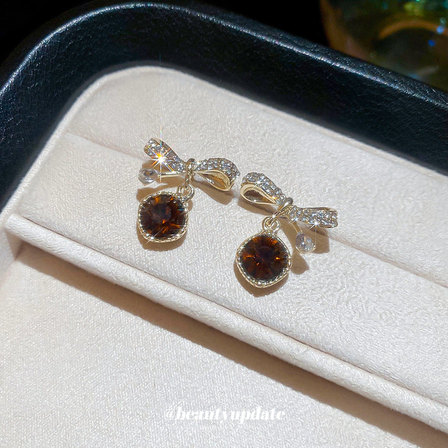 A廠【HE29139】925銀針鑲鑽蝴蝶結圓形吊墜耳環女氣質日常通勤耳環輕奢高級感耳飾女 25.11-1