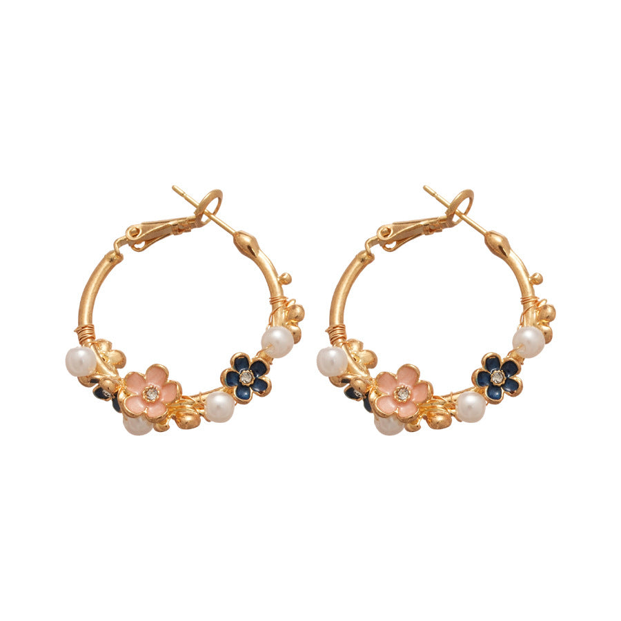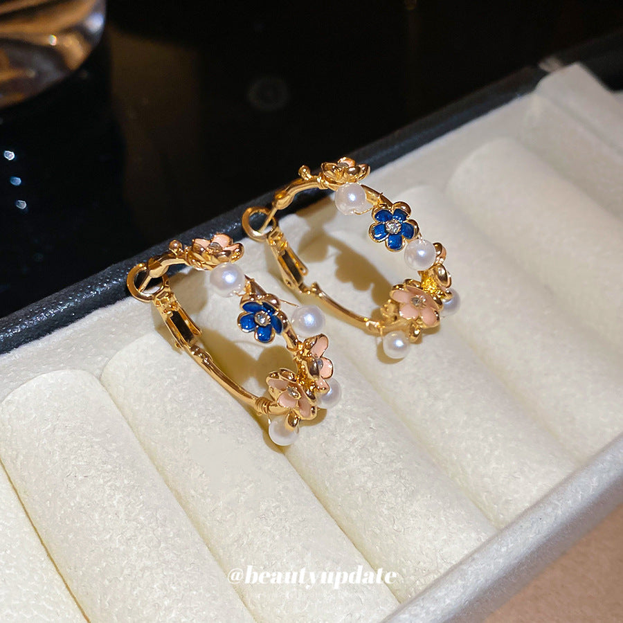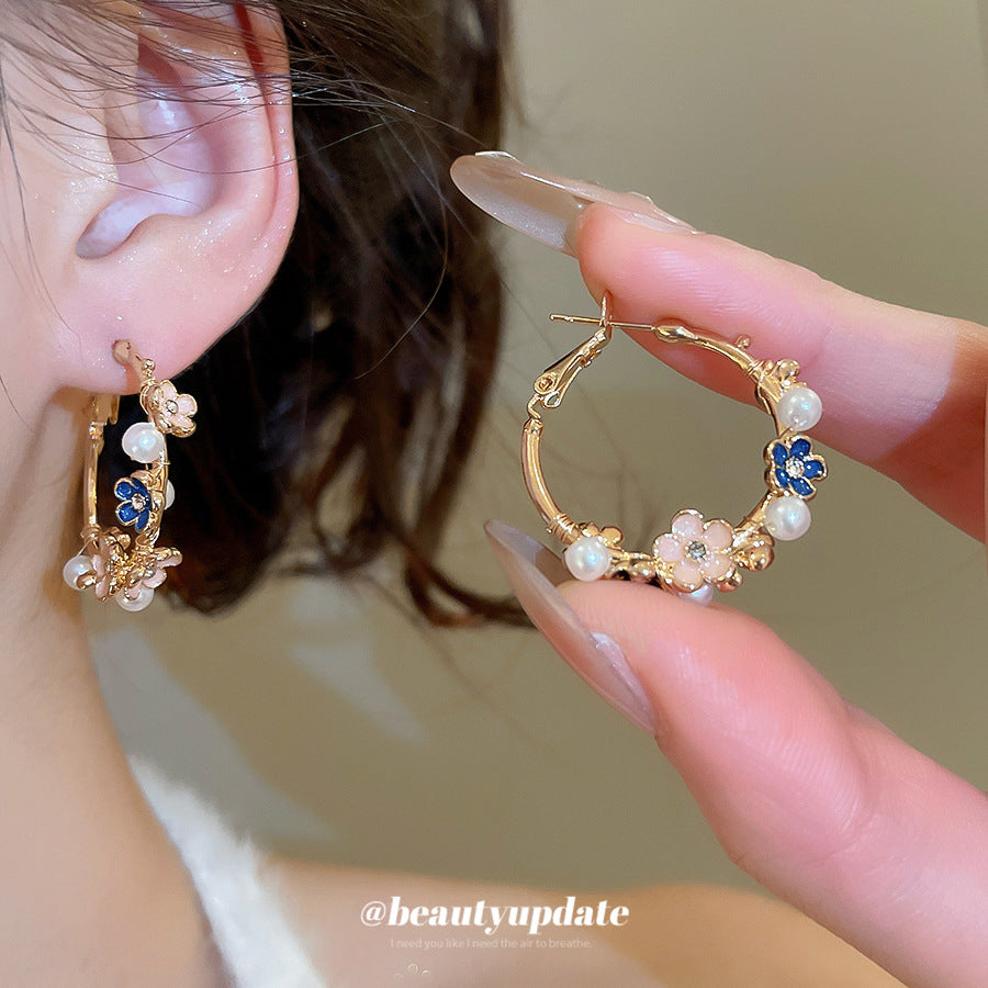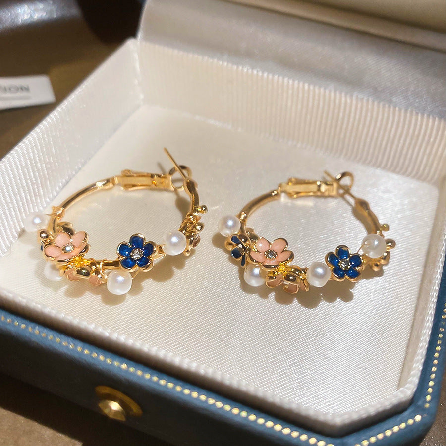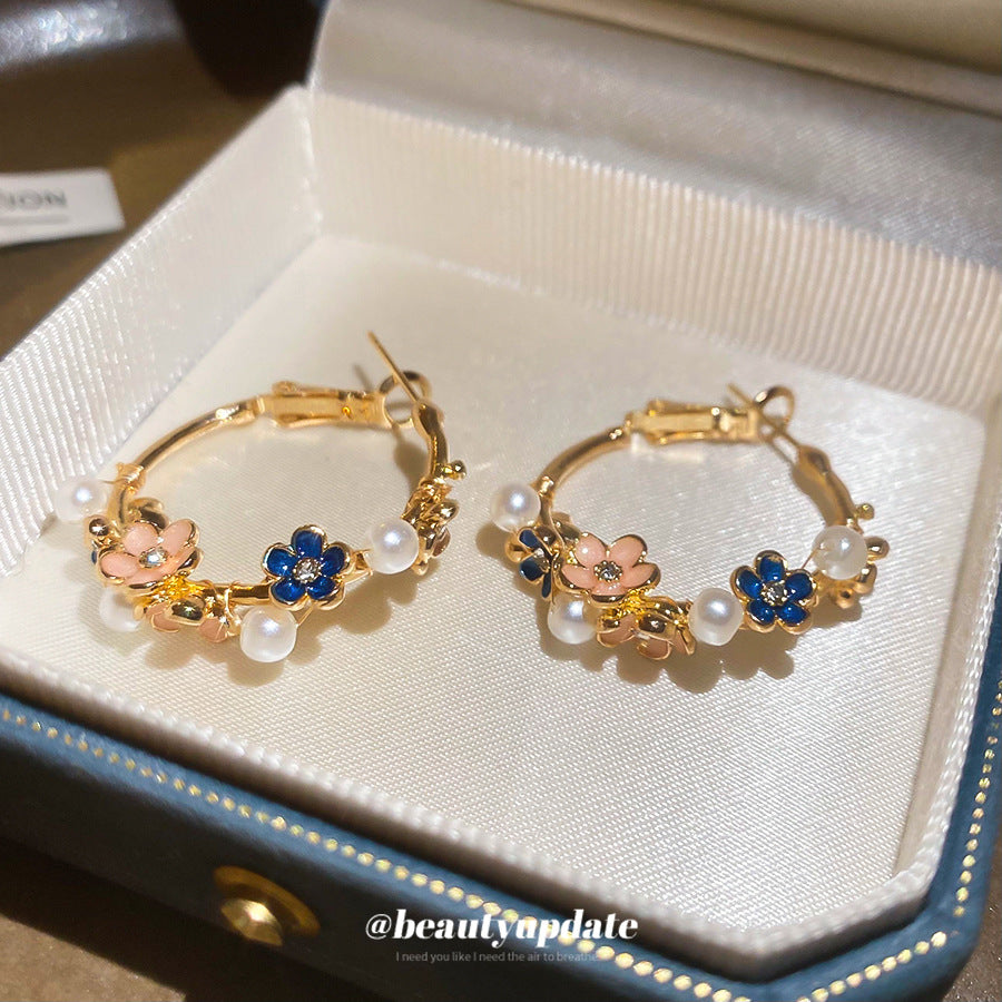 A廠【HE29162】925銀針滴油花朵圓形珍珠耳圈復古精緻優雅氣質耳環輕奢高級感女 25.11-1