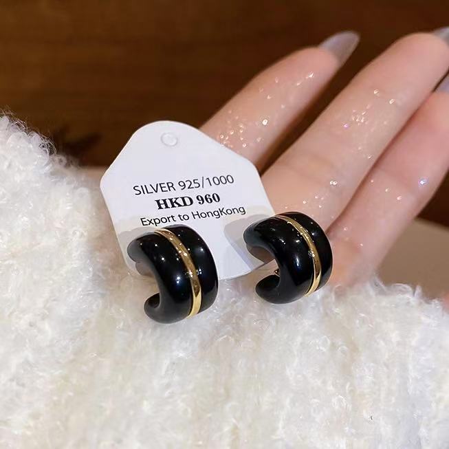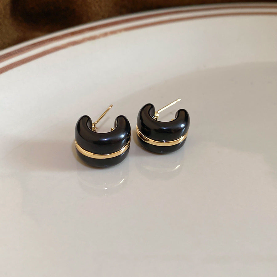 A廠【HE29198】925銀針樹脂圓形耳環休閒時尚日常通勤百搭耳環輕奢高級感小眾耳飾女 25.11-1
