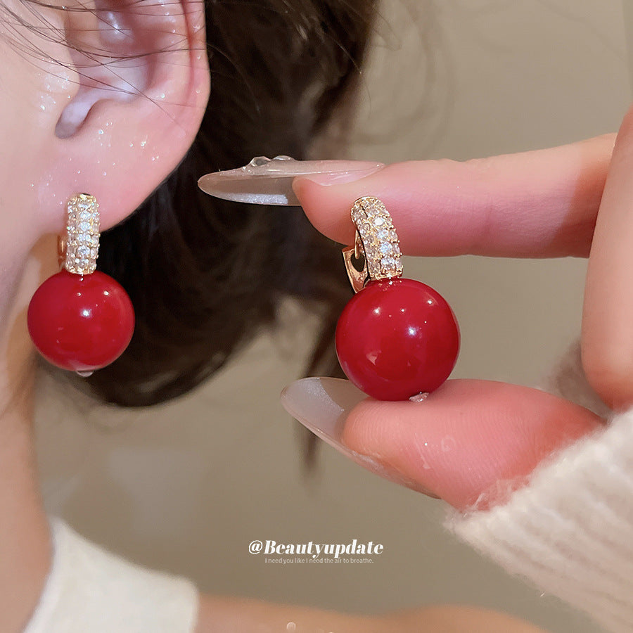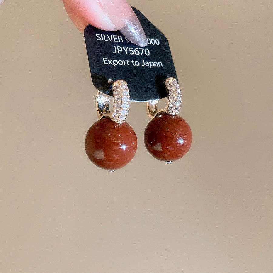 A廠【HE29223】新款鋯石圓形吊墜珍珠耳環輕奢高級感耳環日常通勤簡約耳環耳環飾女 25.11-1