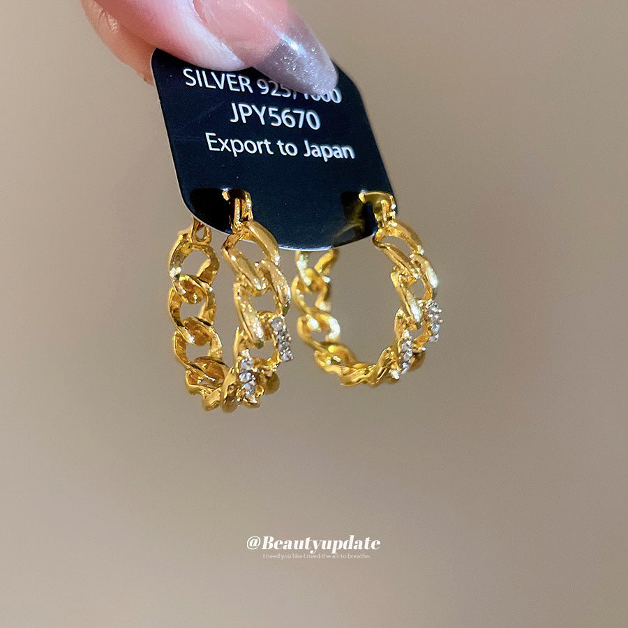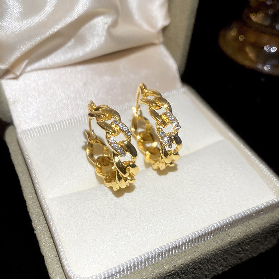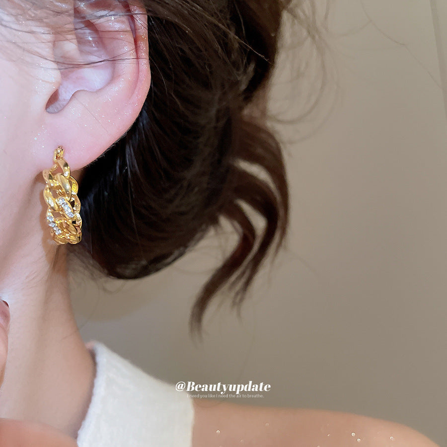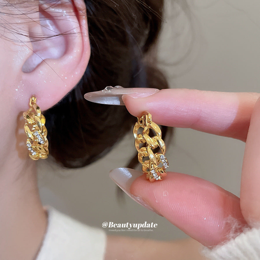 A廠【HE29245】法式復古鑲鑽鏤空鏈條耳扣小眾獨特設計感耳墜耳環輕奢高級感耳飾 25.11-2