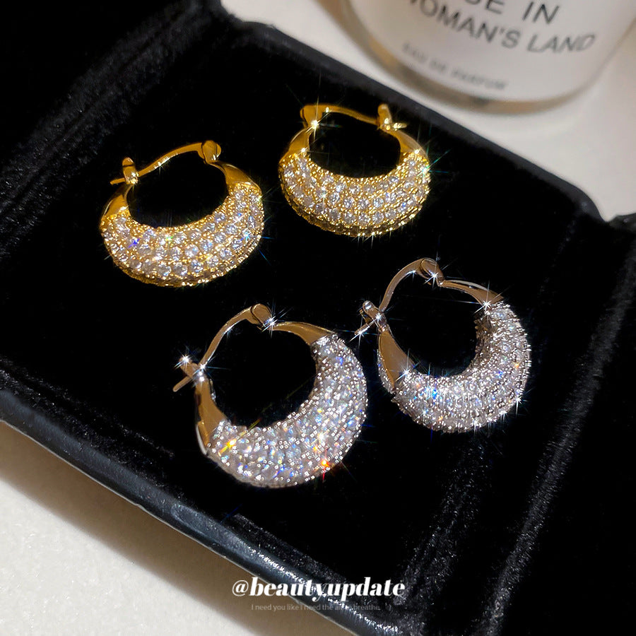 A廠【HE29251】韓國超閃鋯石圓形耳扣氣質日常通勤耳環輕奢高級感耳飾設計感小眾 25.11-2