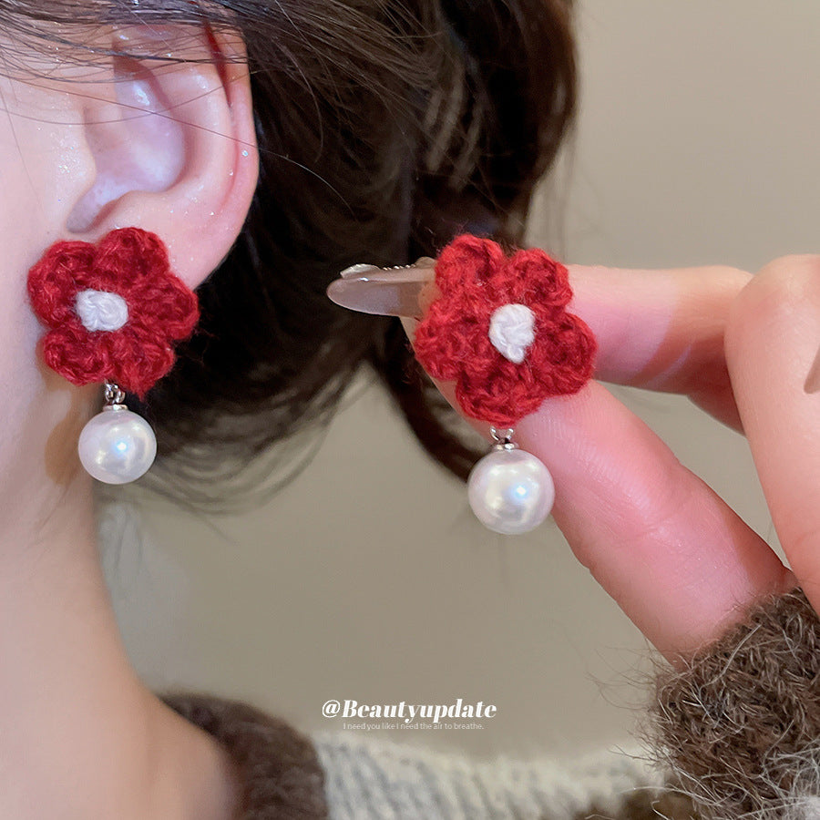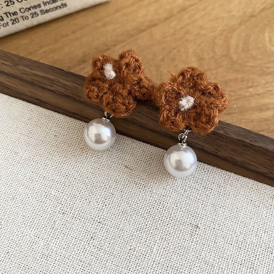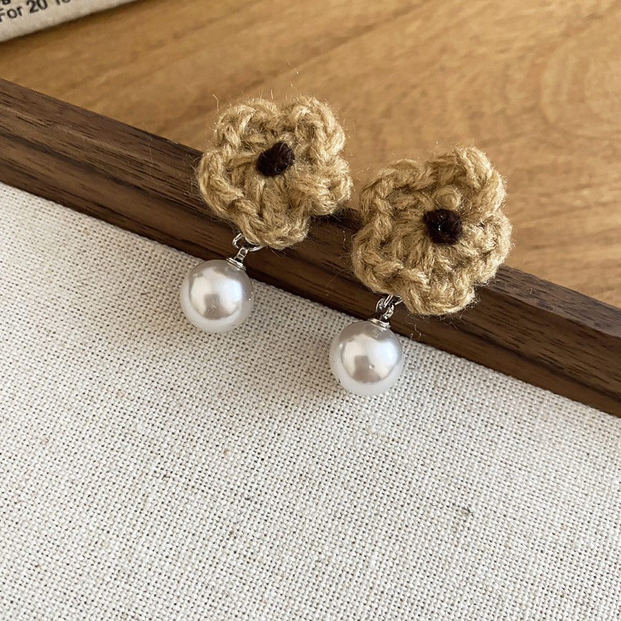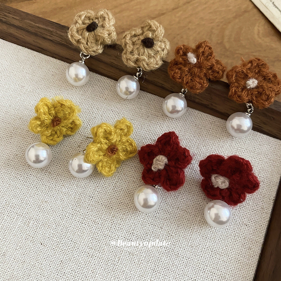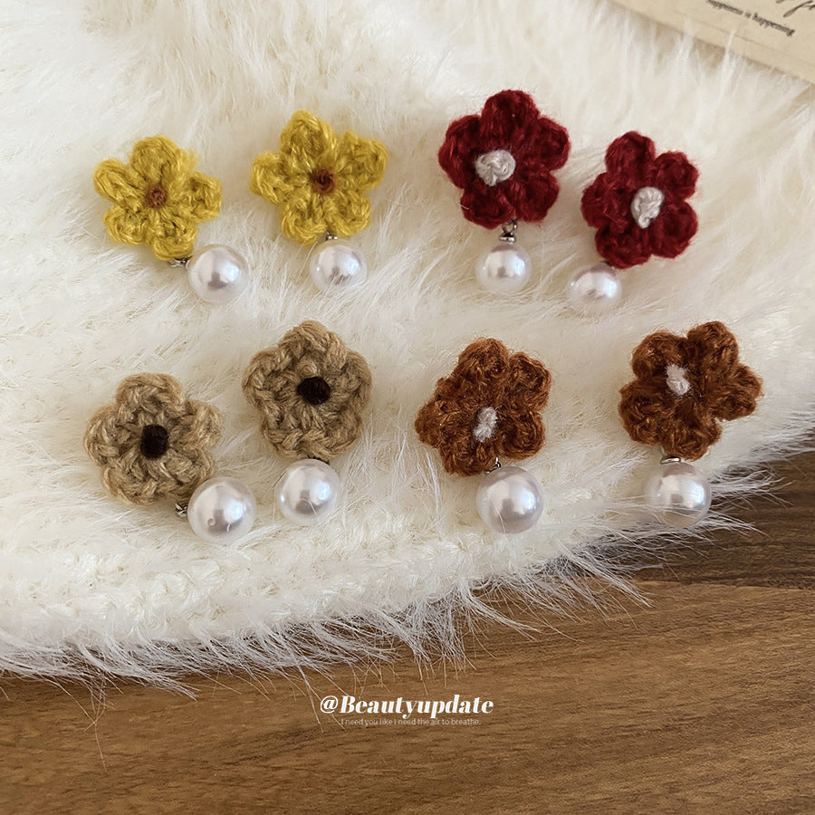 A廠【HE29266】925銀針針織花朵珍珠耳環秋冬溫柔甜美氣質耳環輕奢高級感新款耳環女 25.11-2