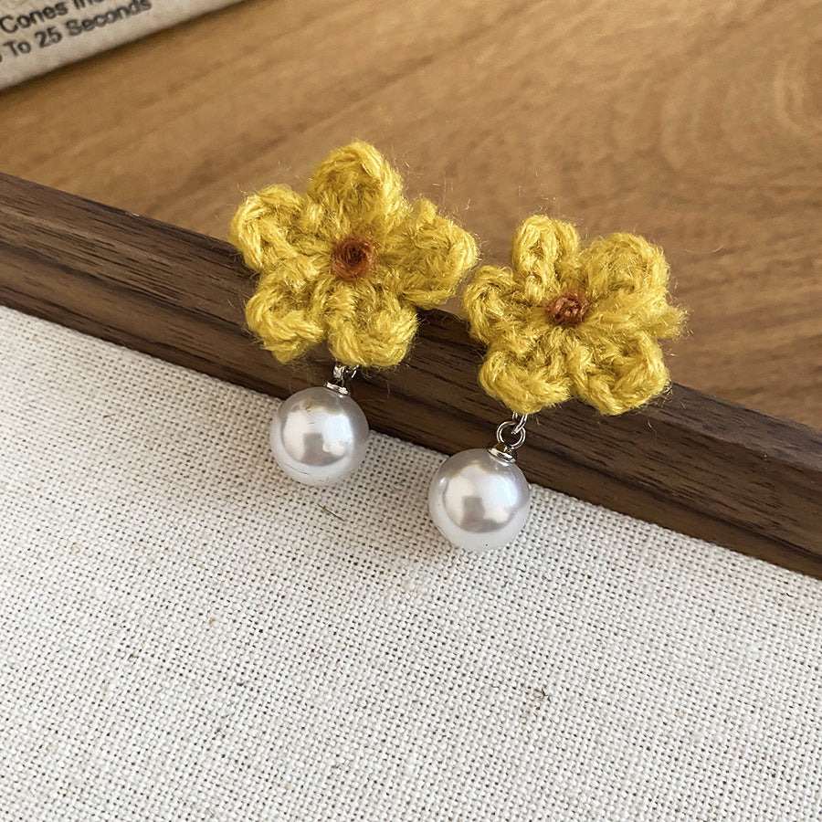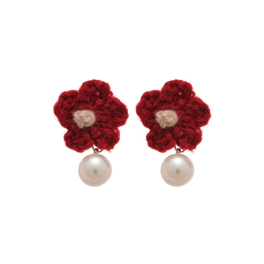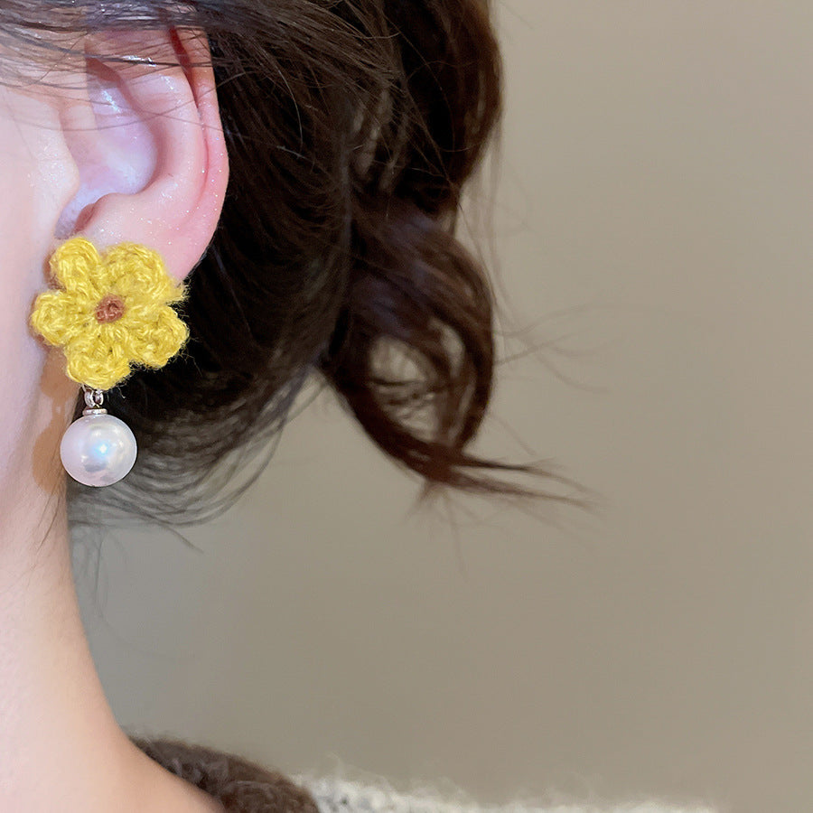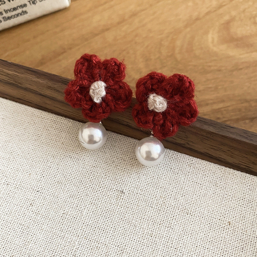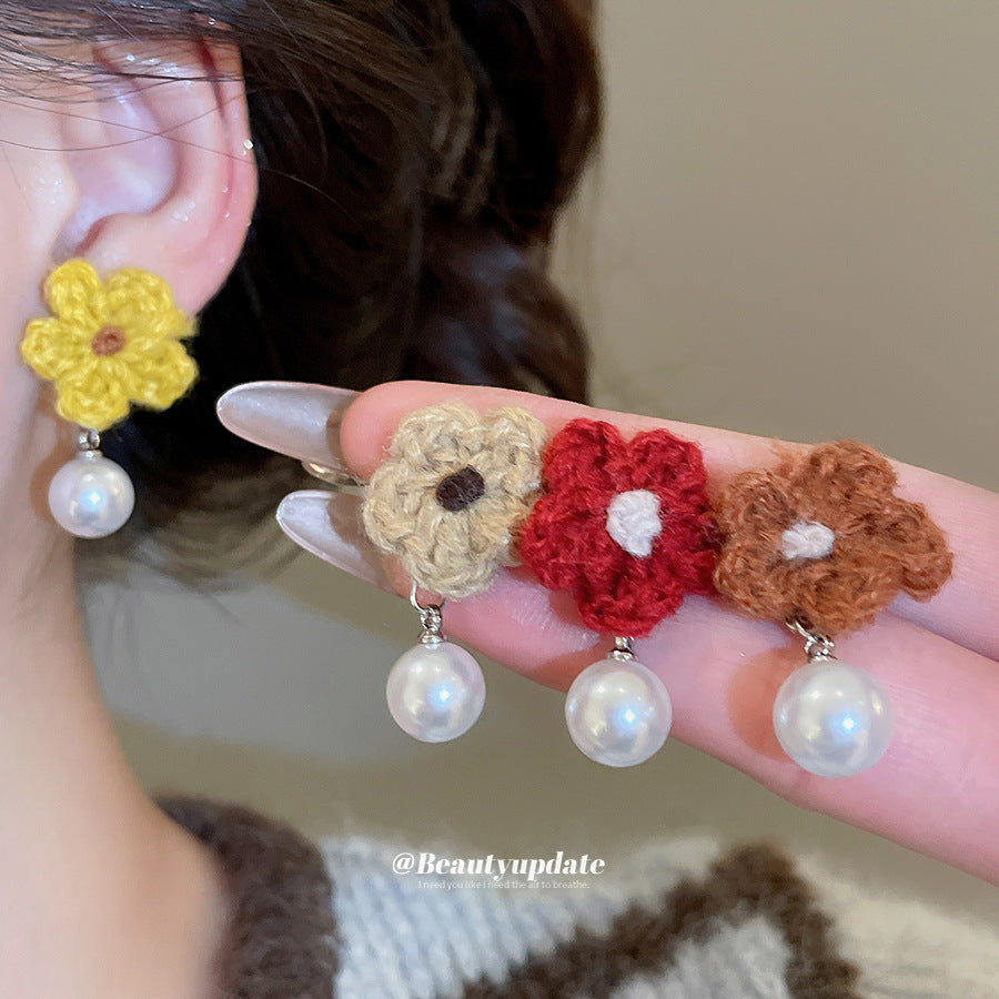 A廠【HE29266】925銀針針織花朵珍珠耳環秋冬溫柔甜美氣質耳環輕奢高級感新款耳環女 25.11-2
