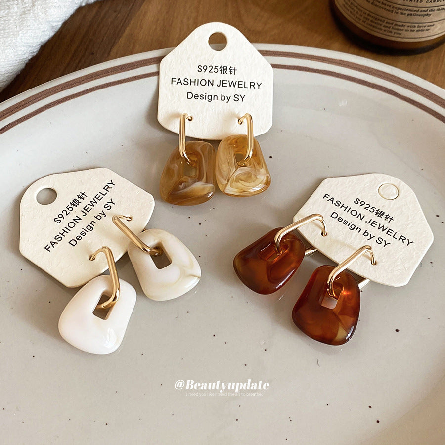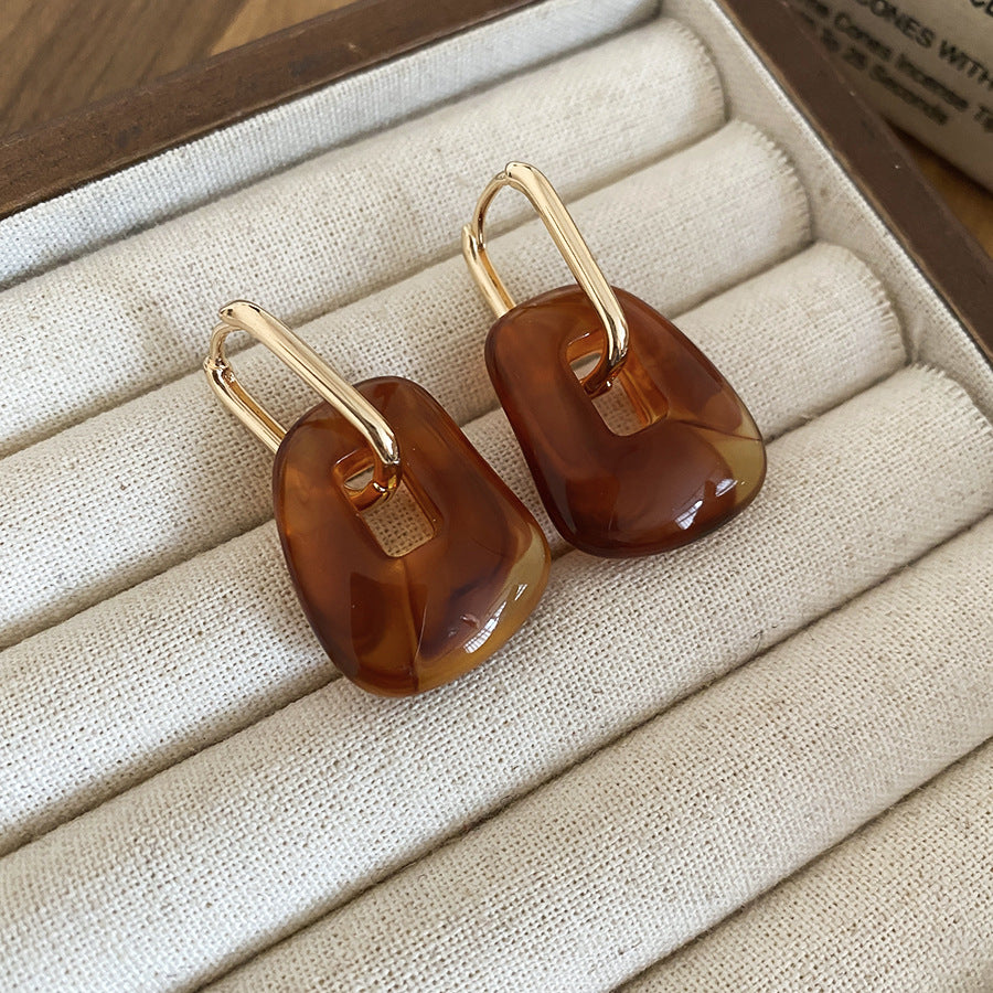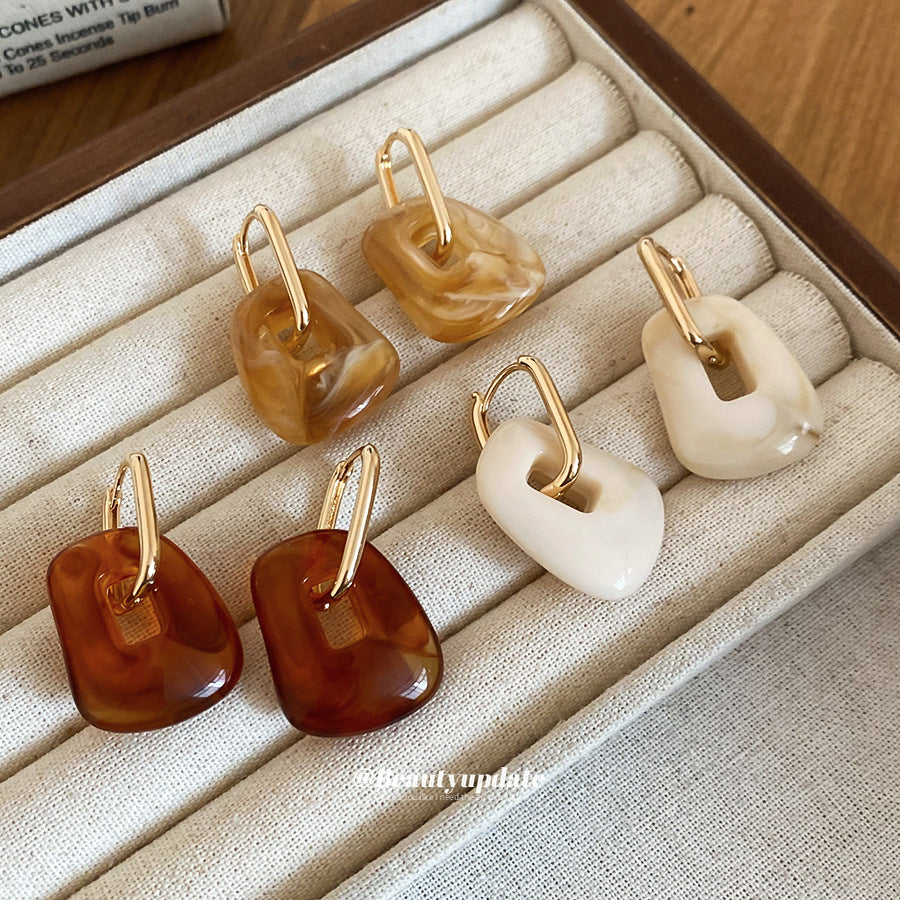 A廠【HE29278】壓克力方形吊墜耳環復古休閒時尚日常通勤耳環輕奢高級感小眾耳飾 25.11-2