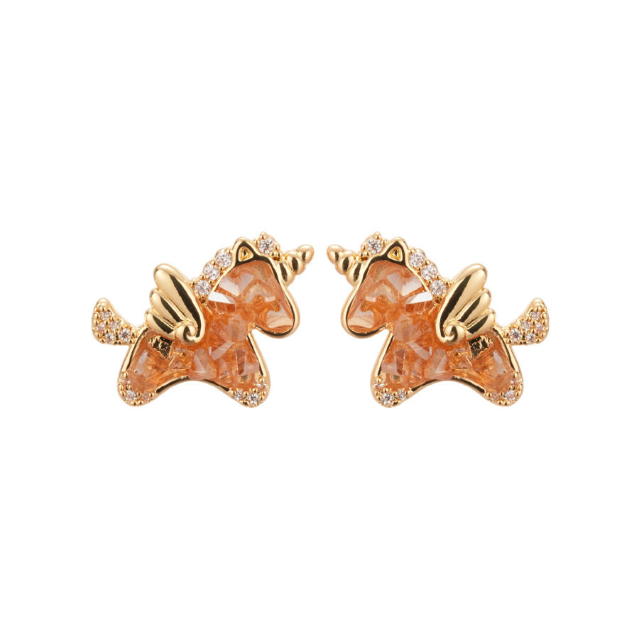 A廠【HE29283】18k真金電鍍925銀針鋯石小馬水晶耳環輕奢高級感耳環本命年小眾耳飾 25.11-2