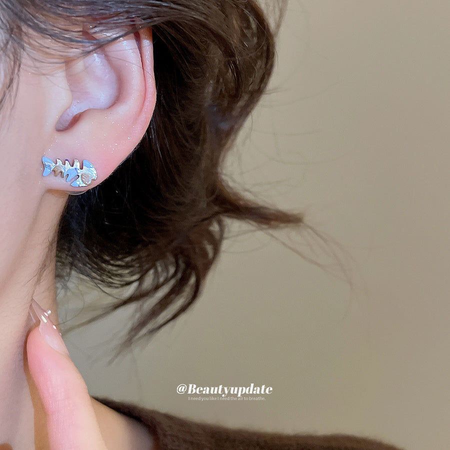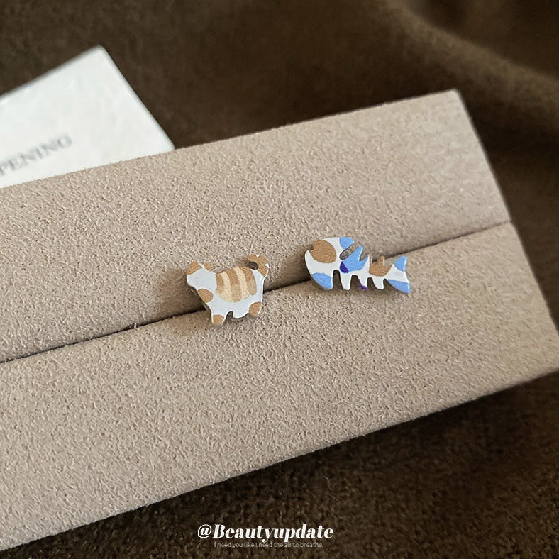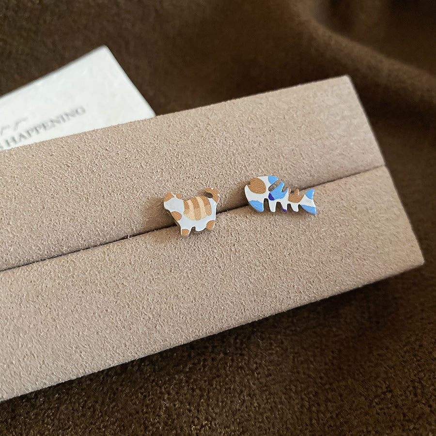 A廠【HE29320】925銀針童趣魚骨小貓耳環輕奢高級感小眾設計感耳環卡通可愛耳環女 25.11-2