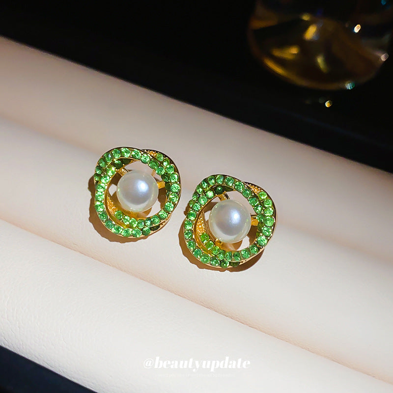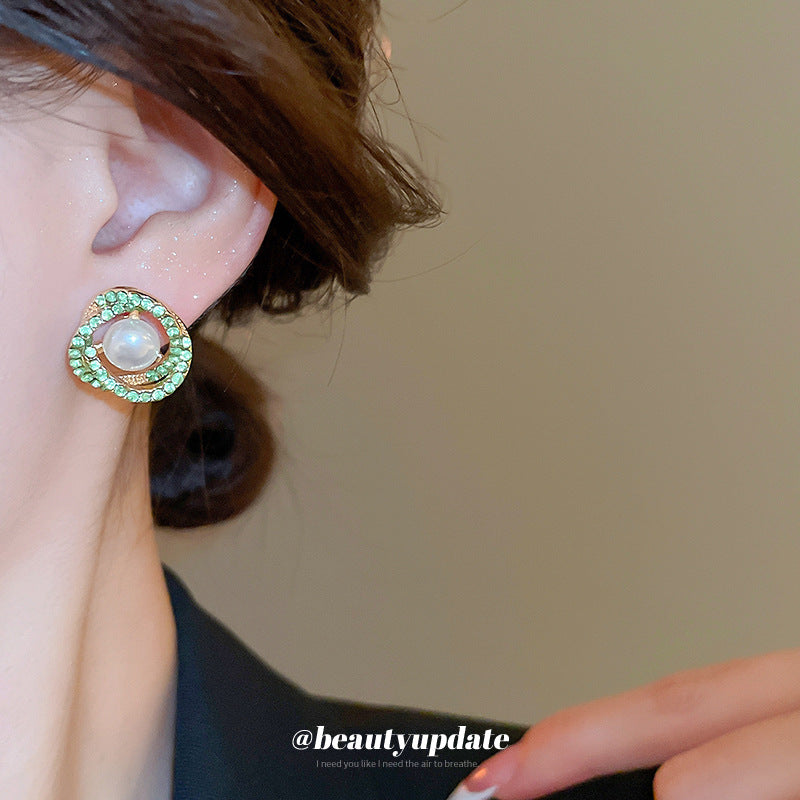 A廠【HE4621】925銀針鑲鑽環繞綠色珍珠款耳環時尚新款耳環高級感輕奢百搭氣質耳環 24.10-2
