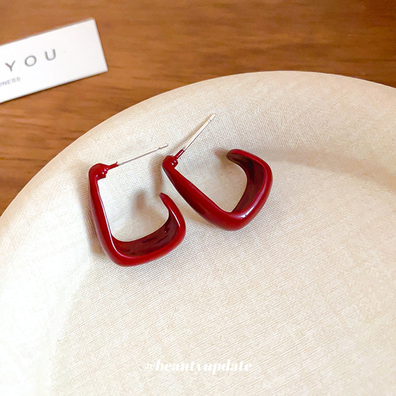 A廠【HE7200】925銀針安可拉紅滴油U型耳環小眾設計感耳環簡約耳飾輕奢高級感秋冬24.10-3